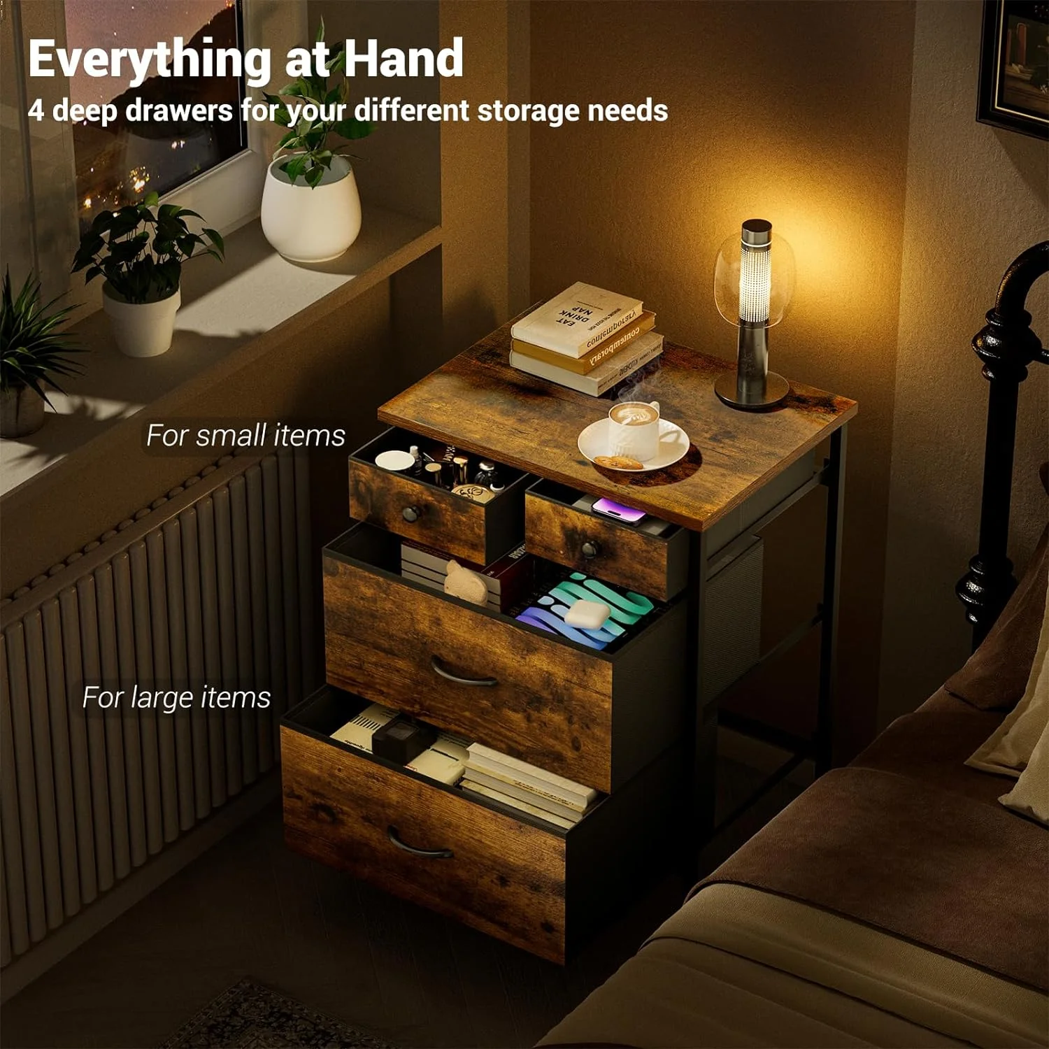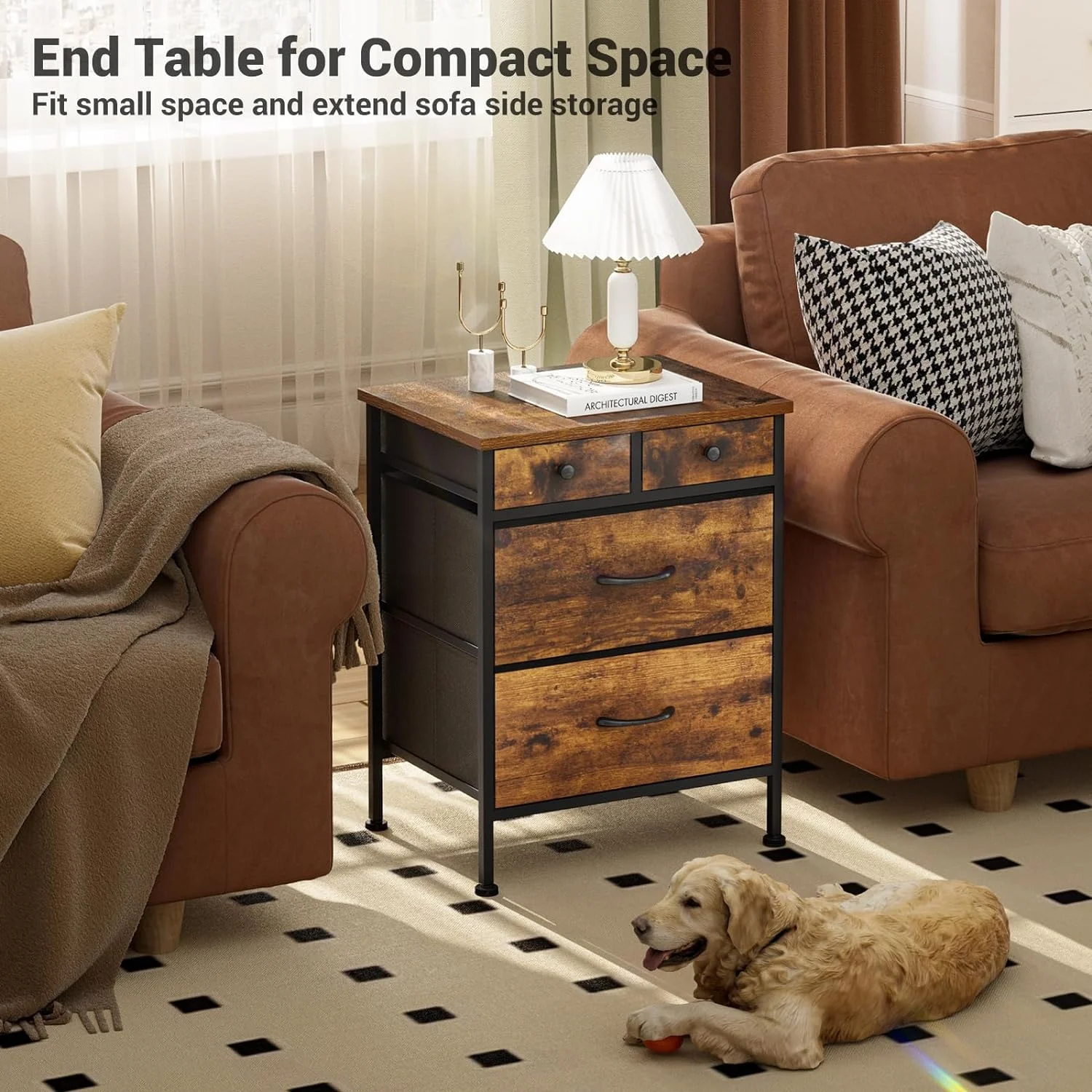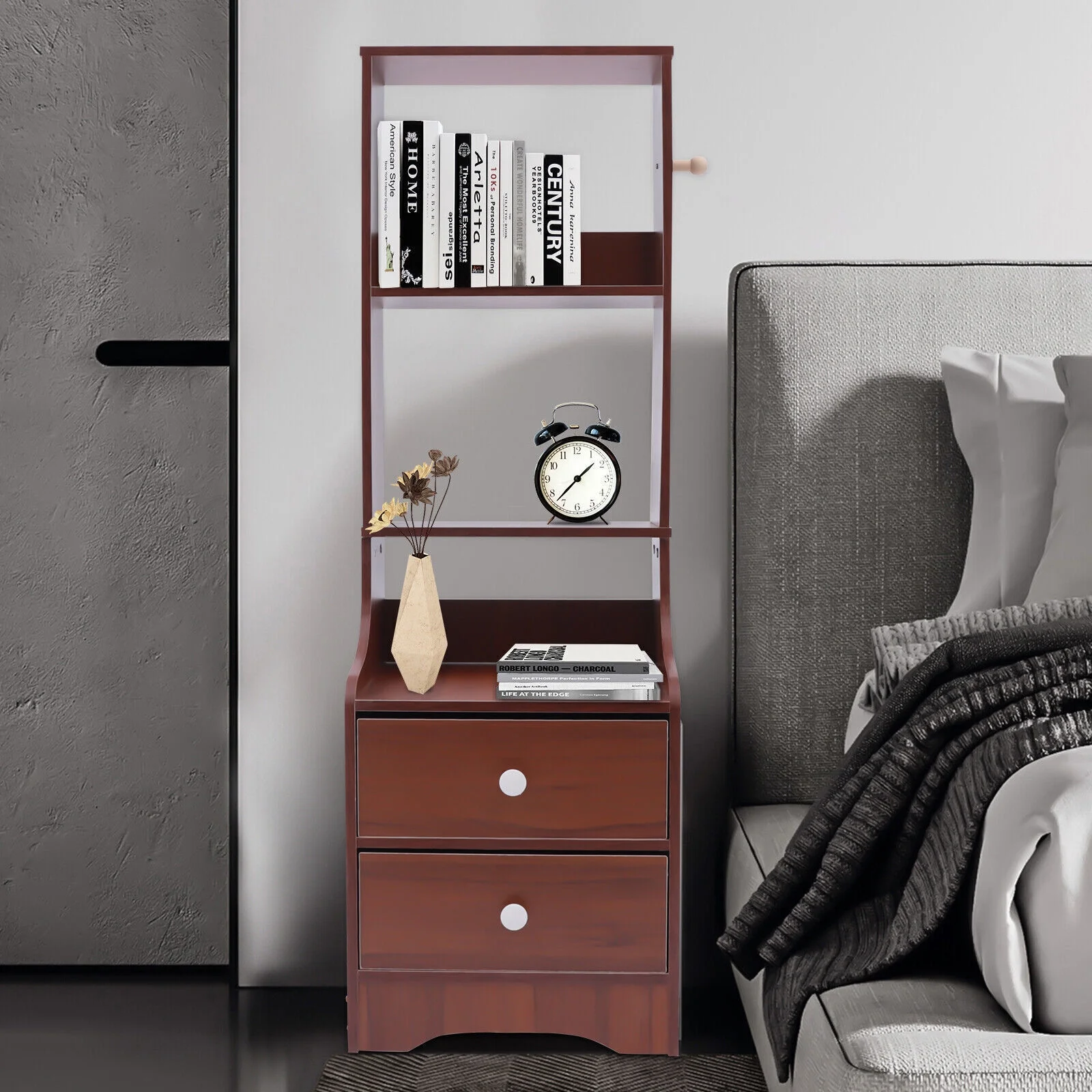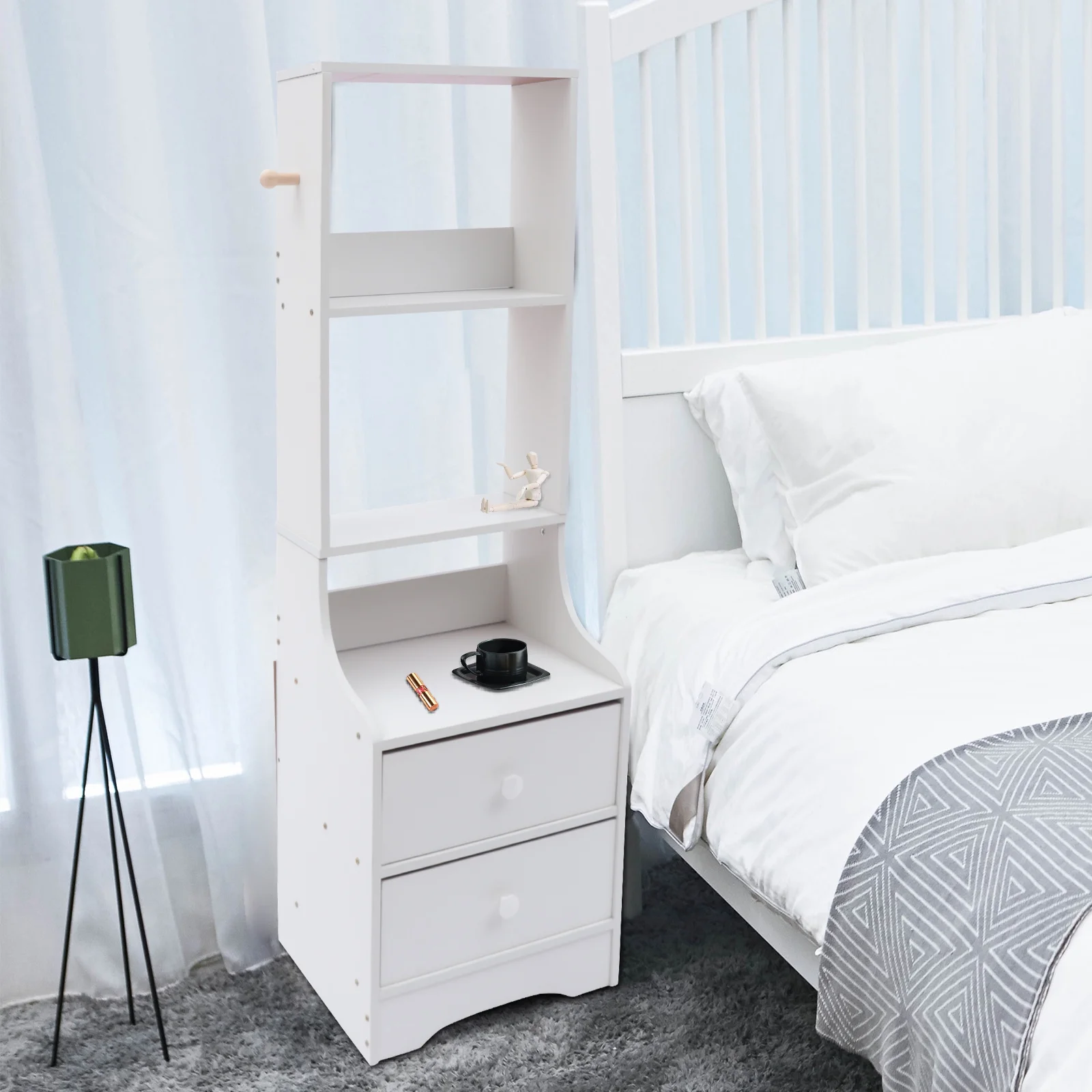 Nightstand Shelf Storage Dresser w/ Drawers - Bedside Furniture Accent End Table