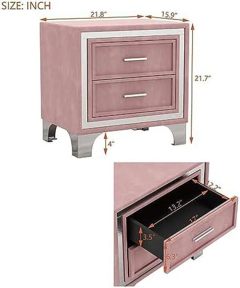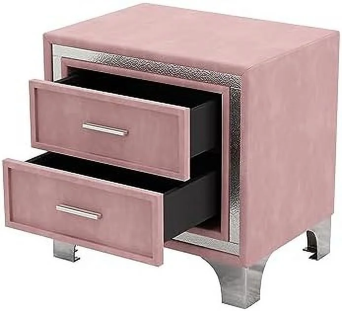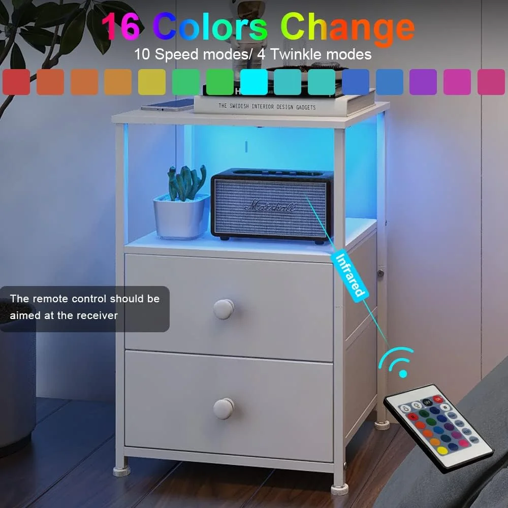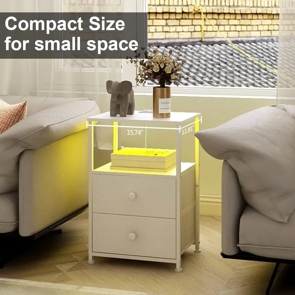 Modern Nightstand with 2 Drawers Tall Bed End Table Dresser Table for Bedroom