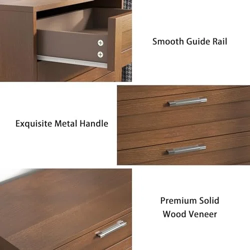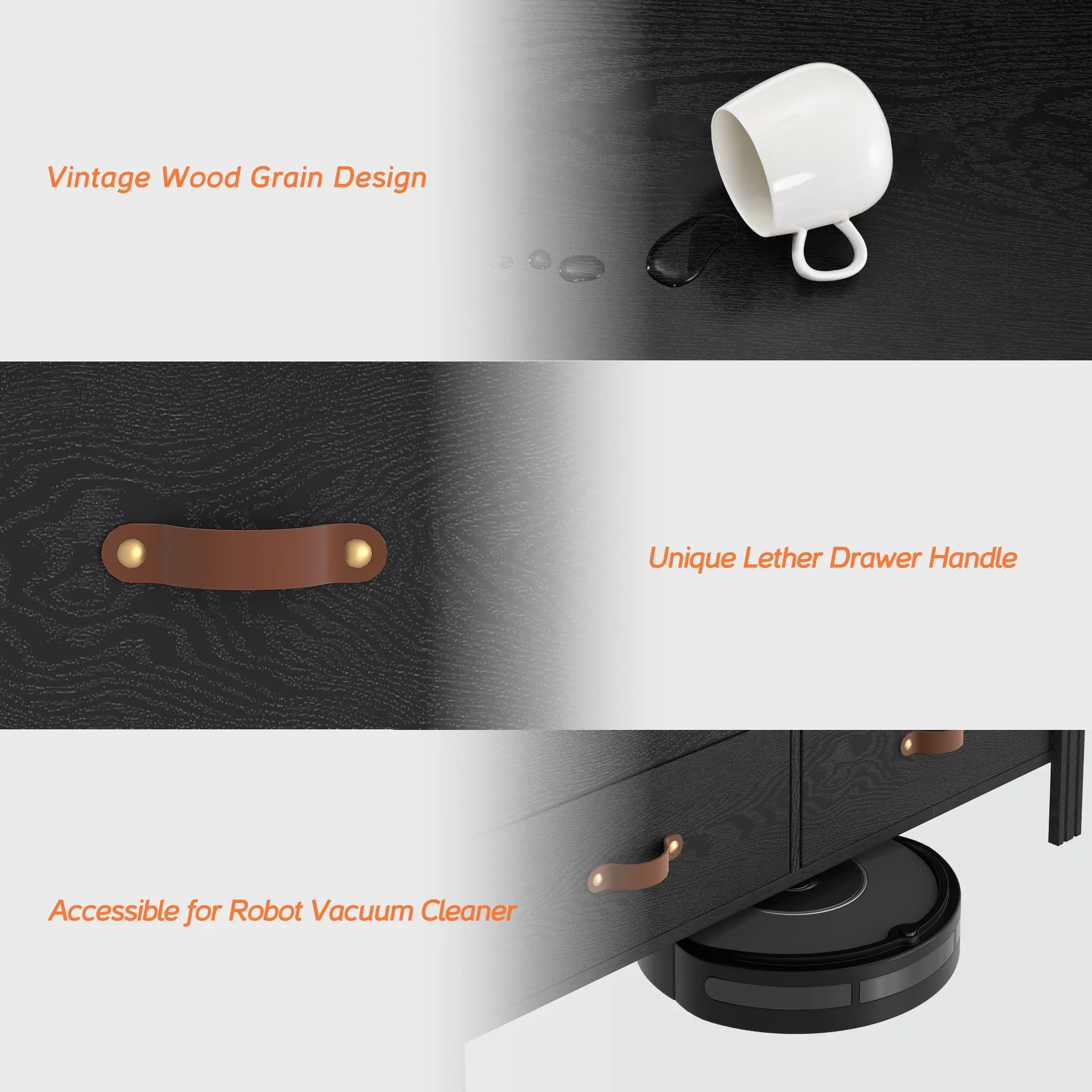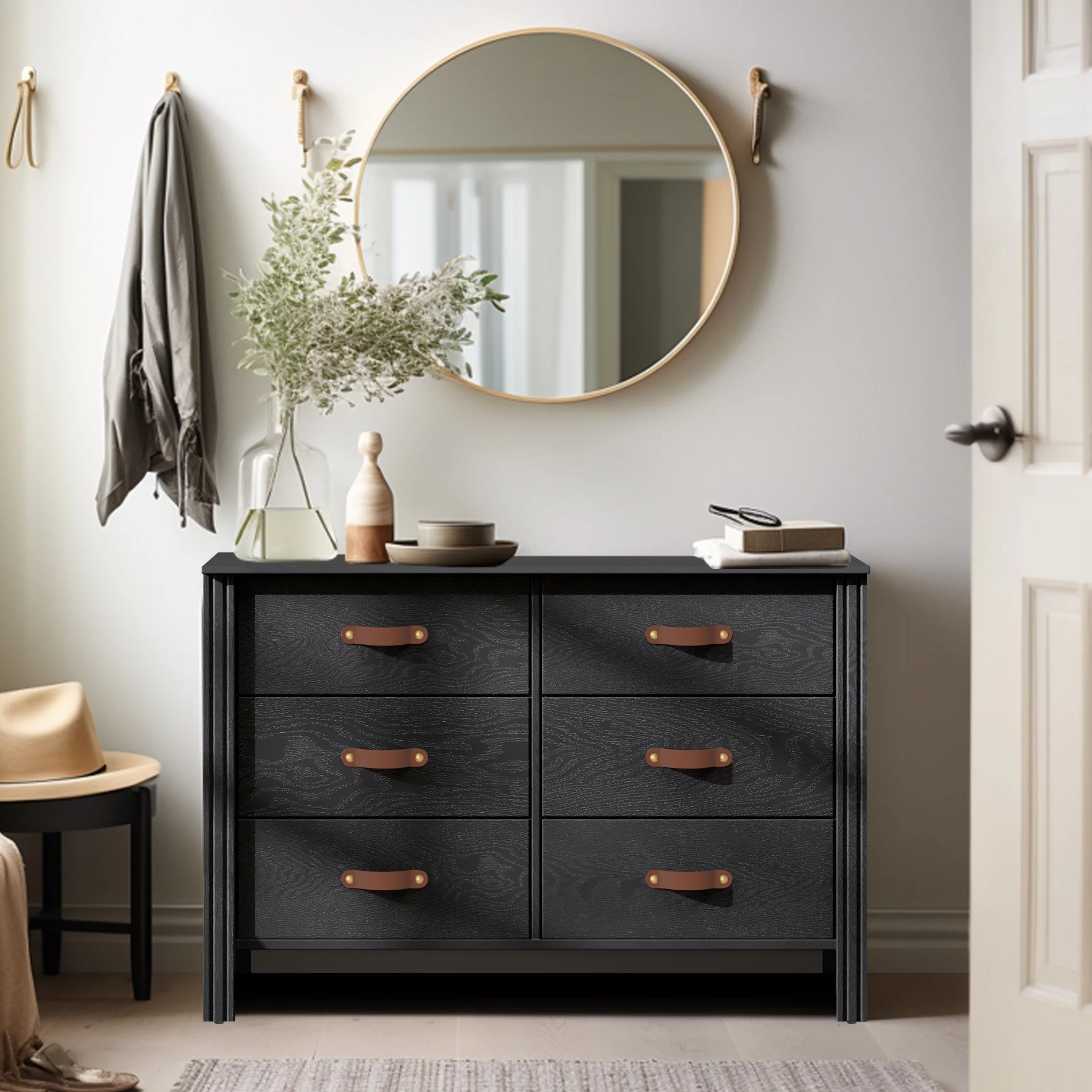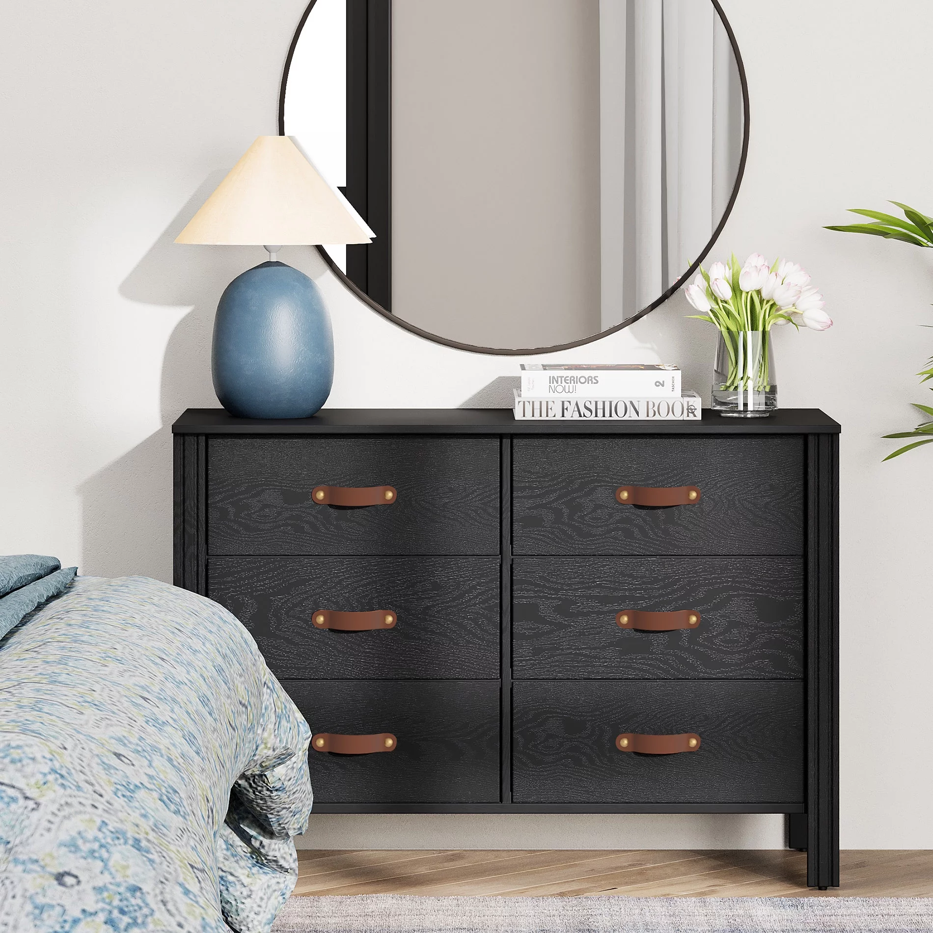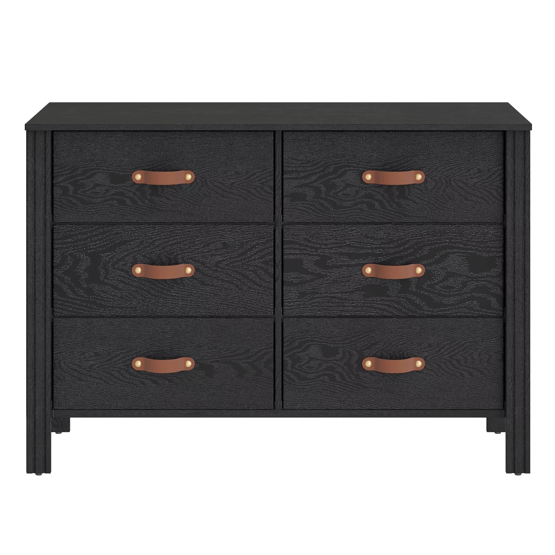 Dresser for Bedroom, Wood Dresser with 6 Drawers, Storage Cabinet for Living Room, Hallway, Black