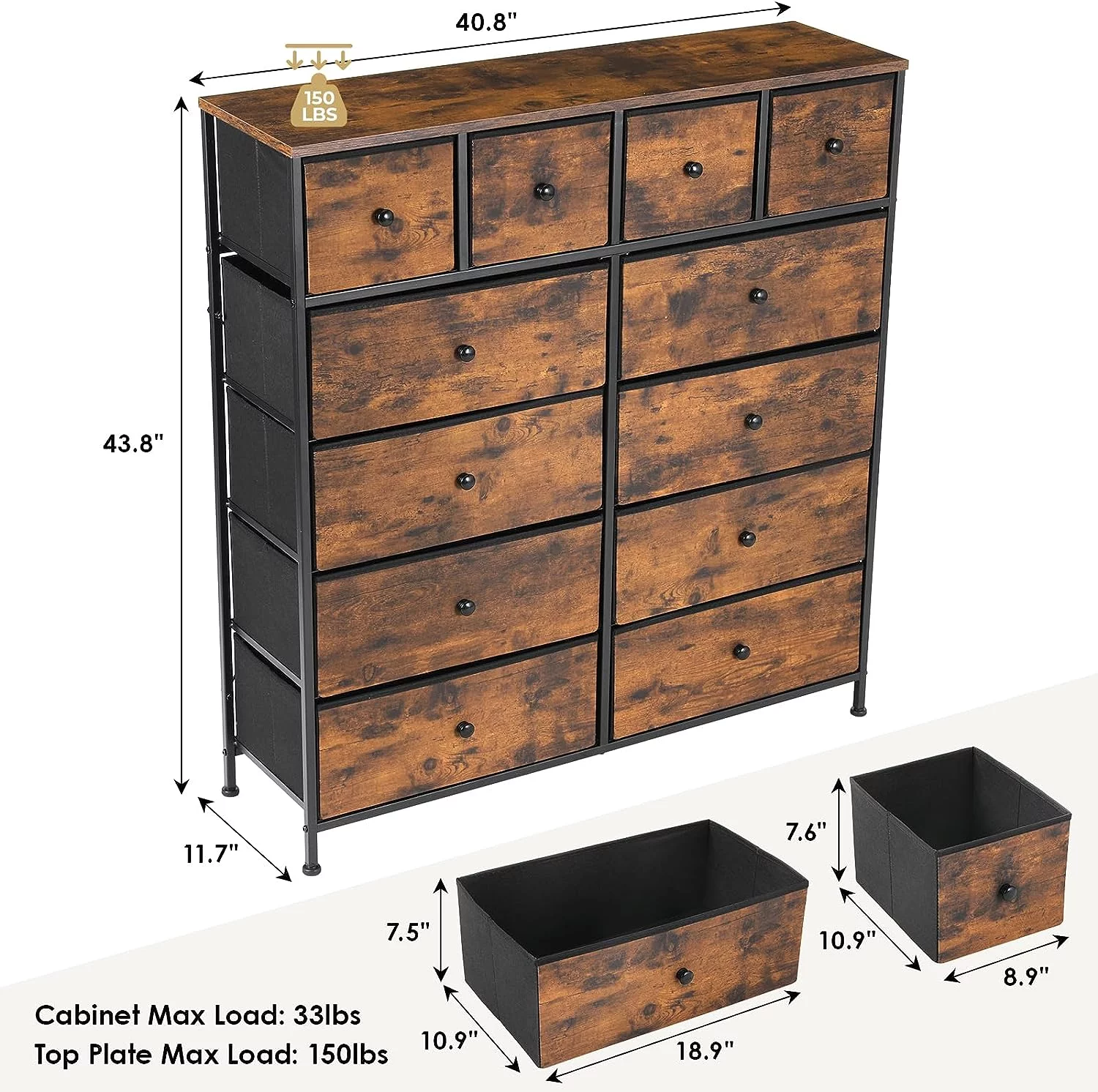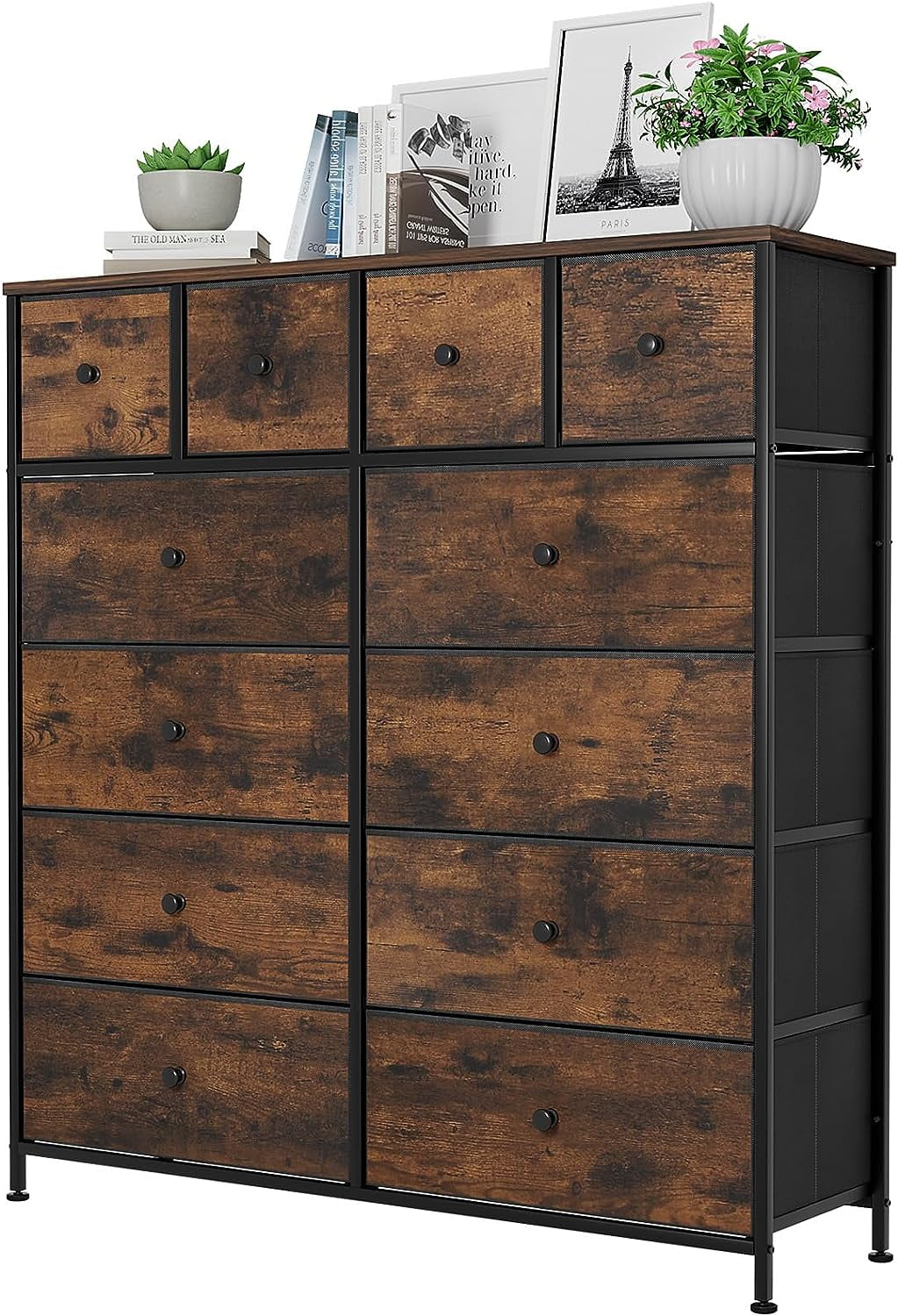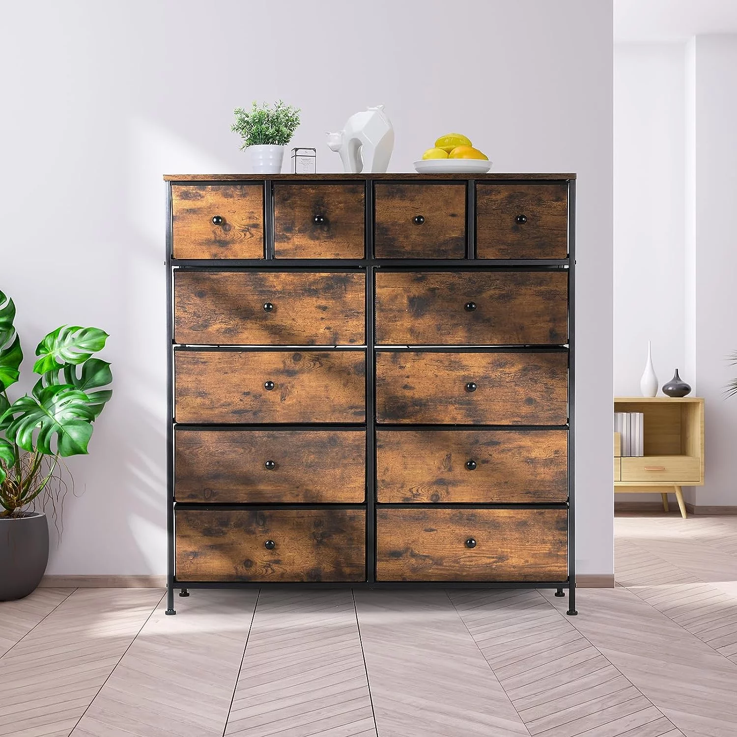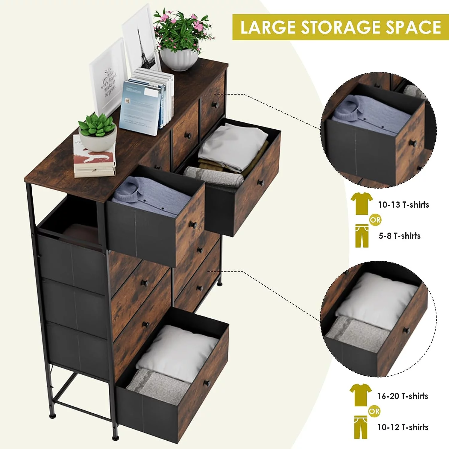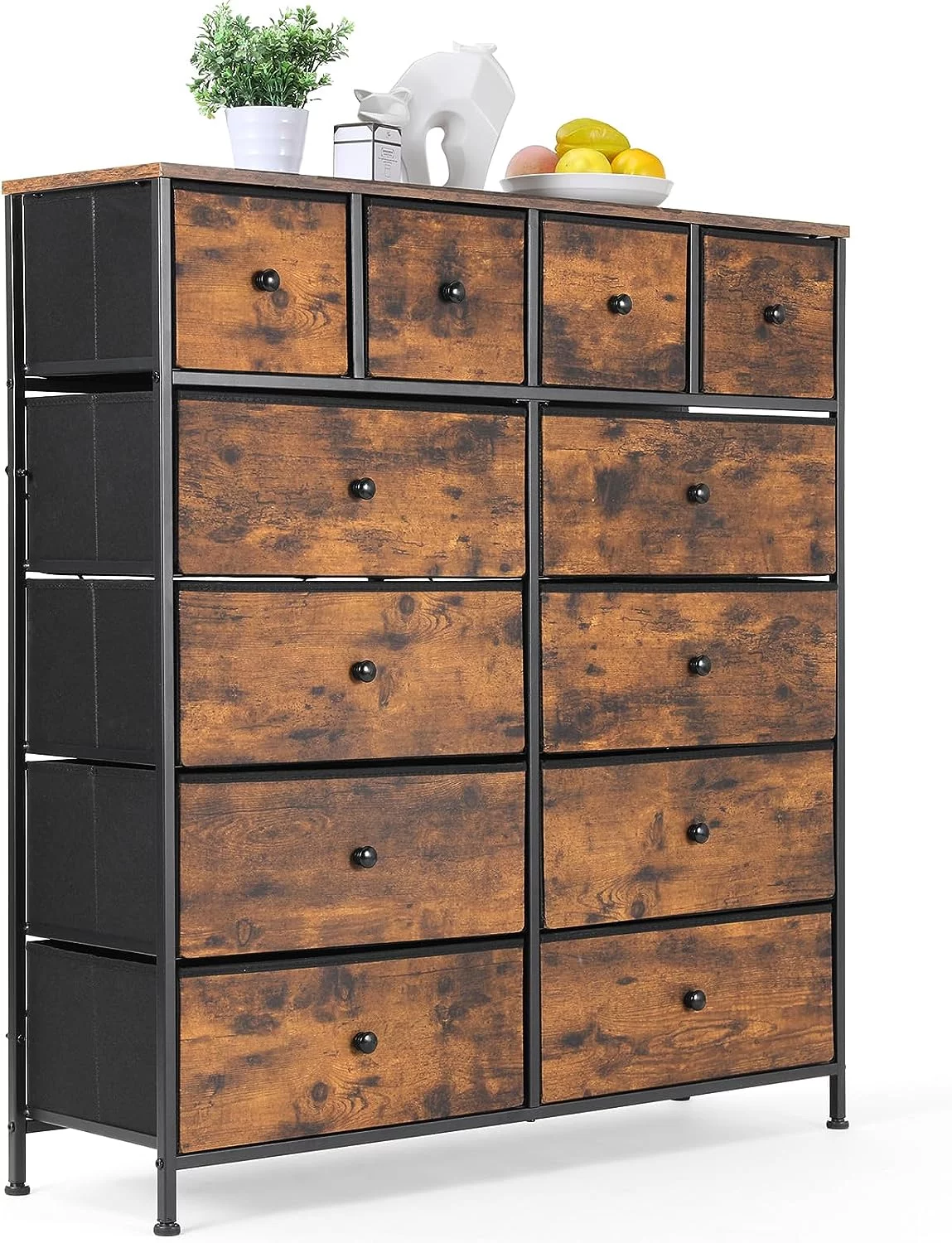 Dresser for Bedroom, Wood Dresser with 6 Drawers, Storage Cabinet for Living Room, Hallway, Black