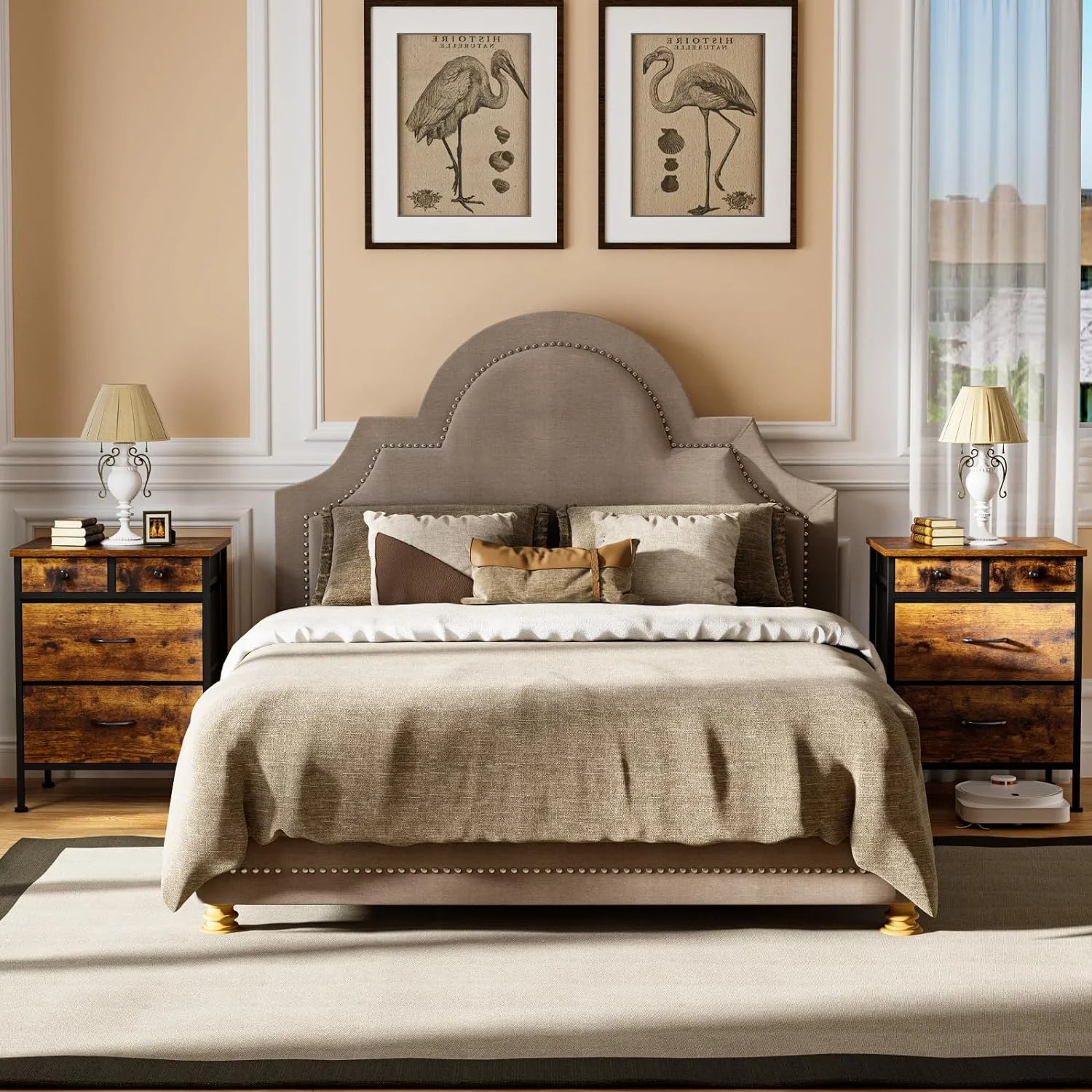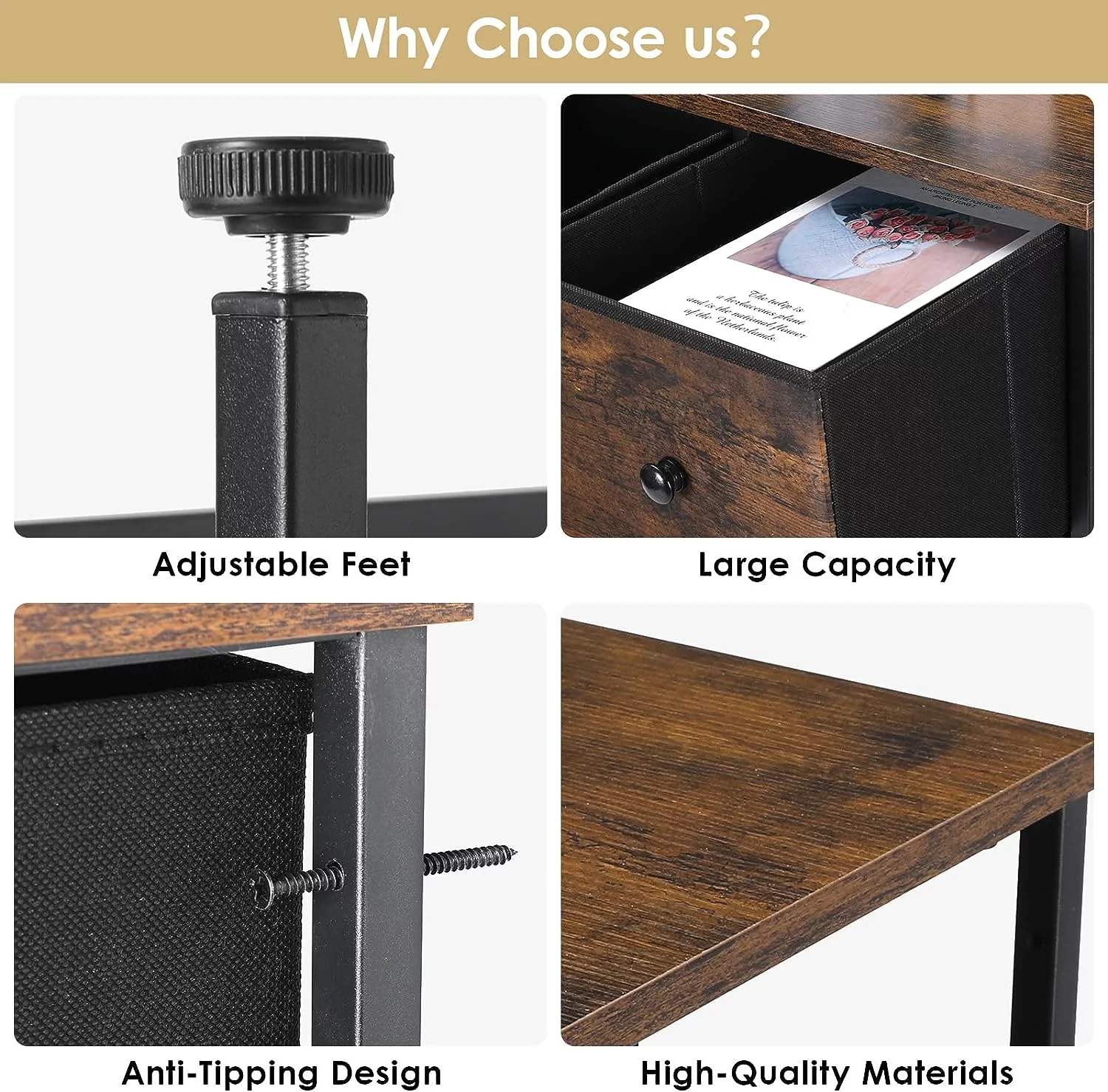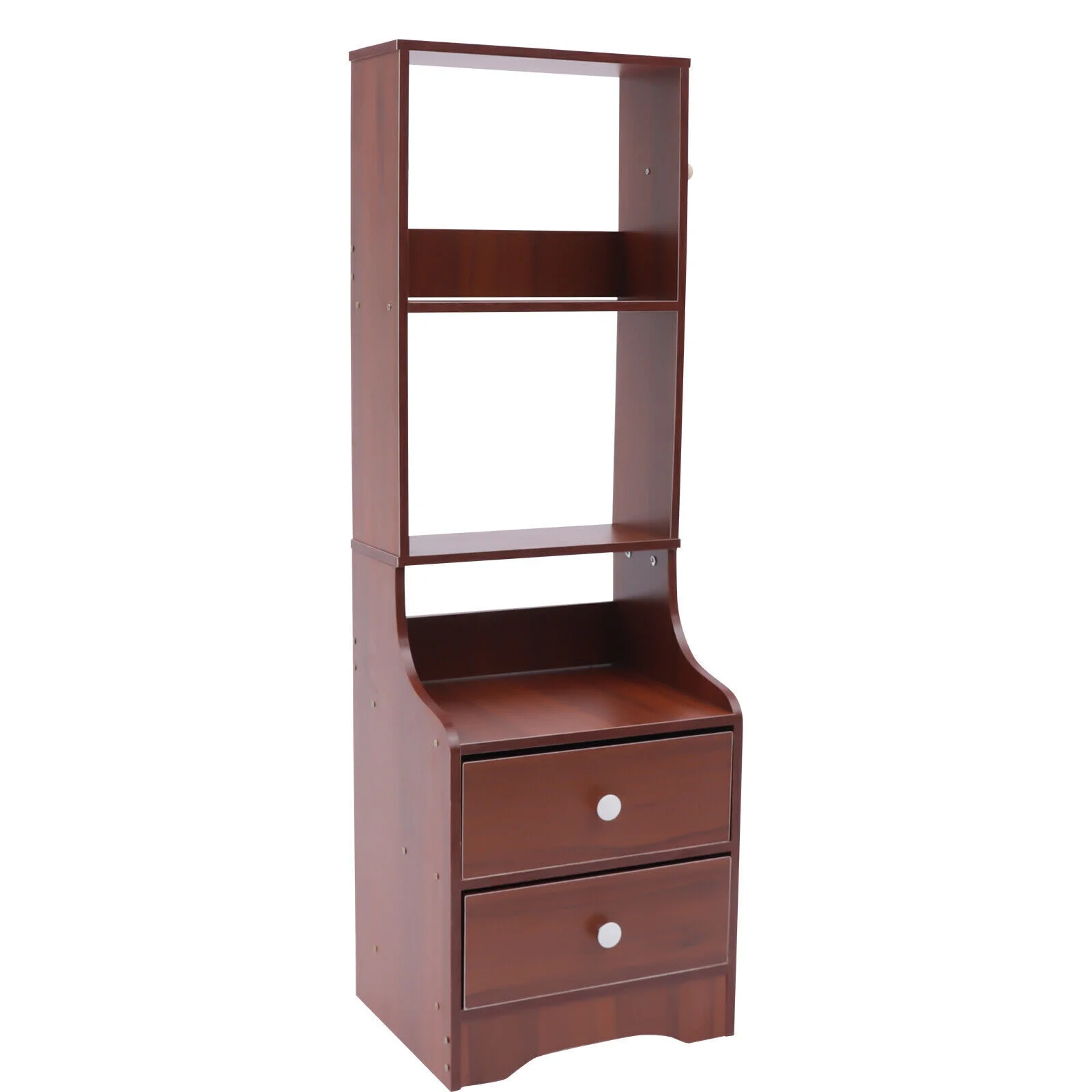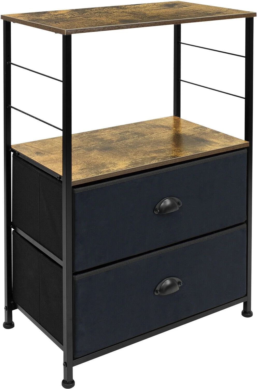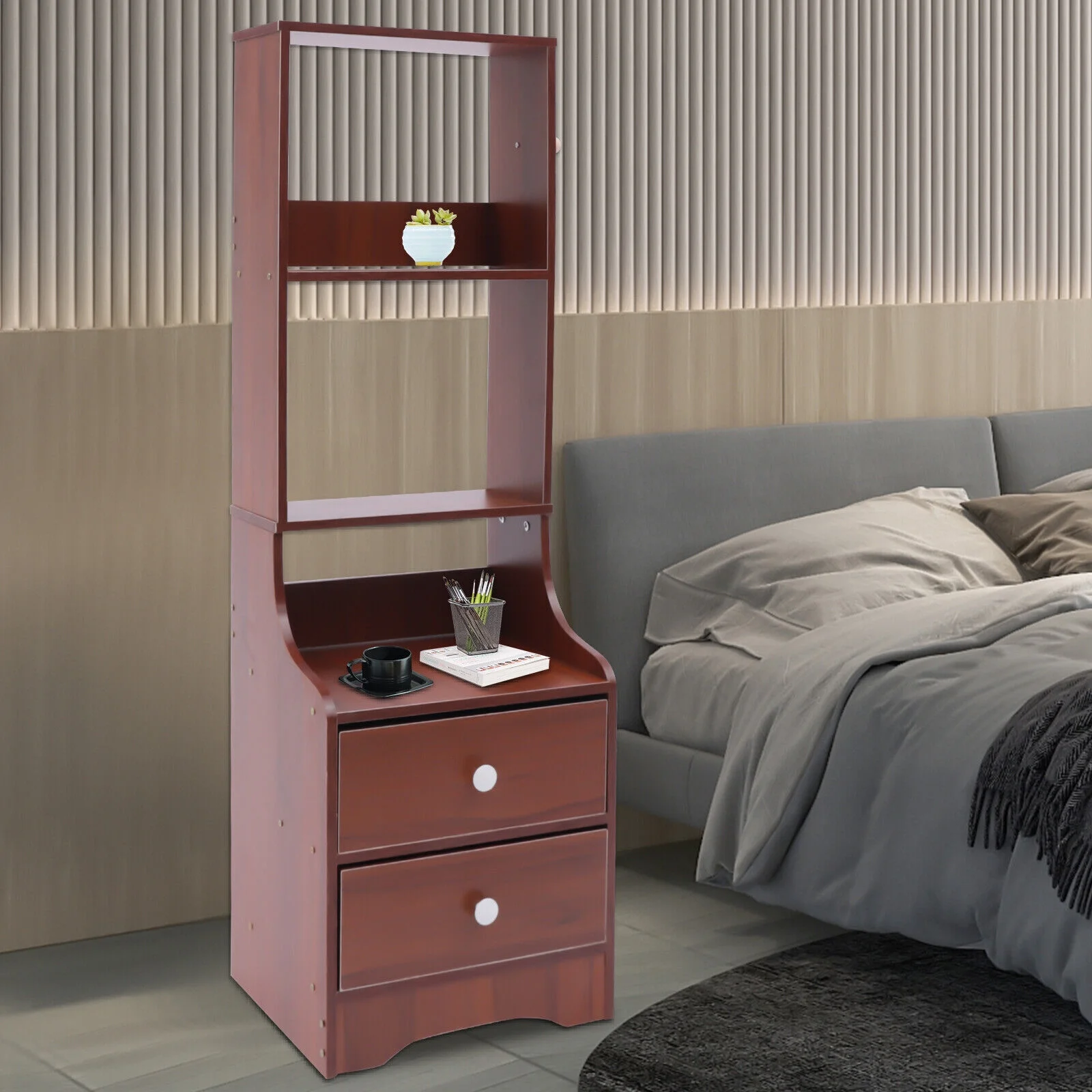 ZhdnBhnos 2 Drawers Dresser with 2 Open Storage Shelves Antique Nightstand End Bedside Table Organizer Cabinet