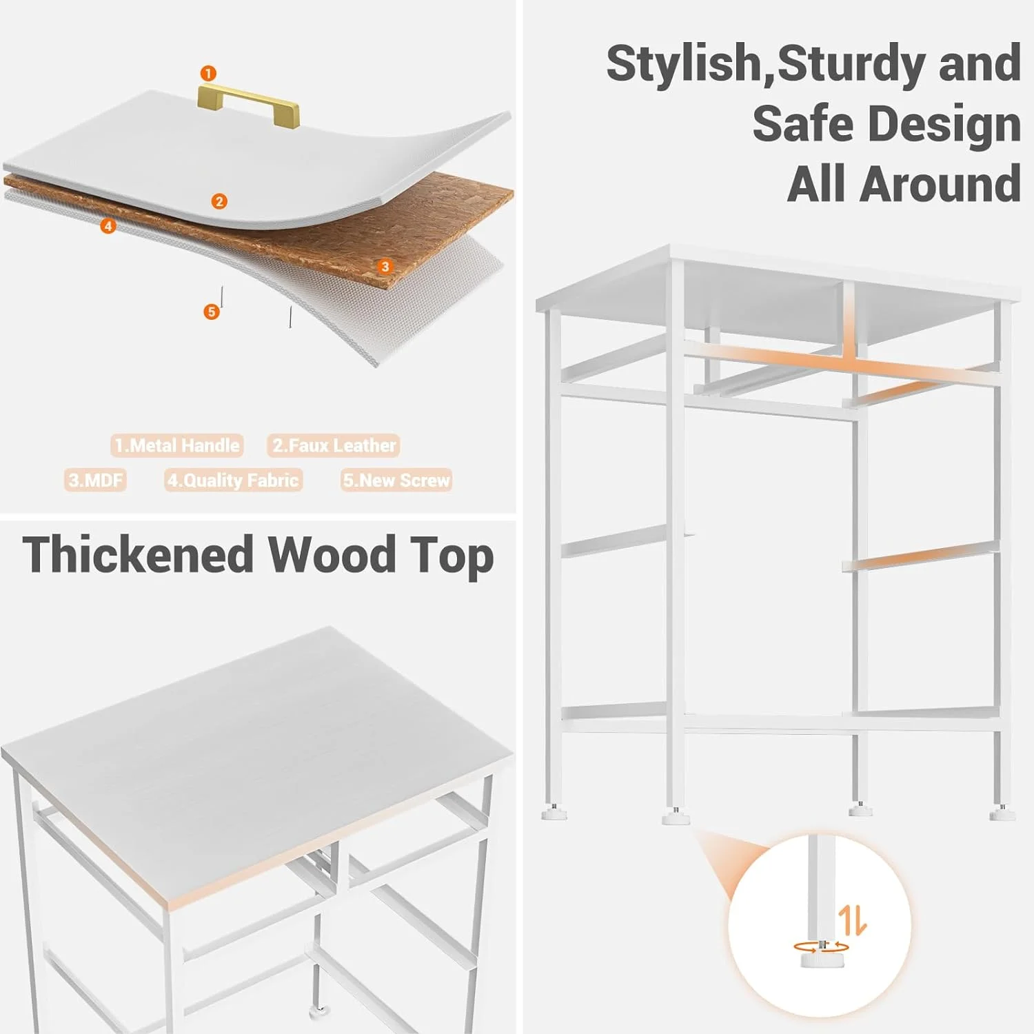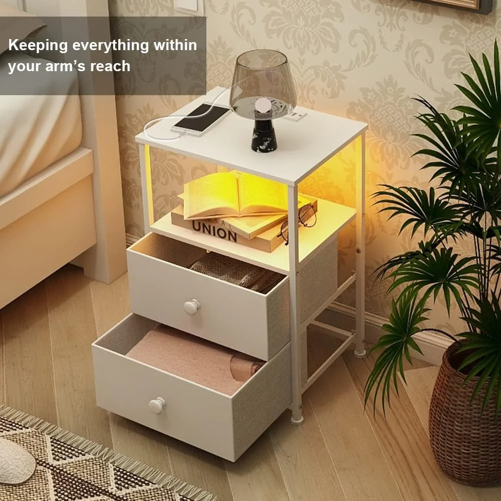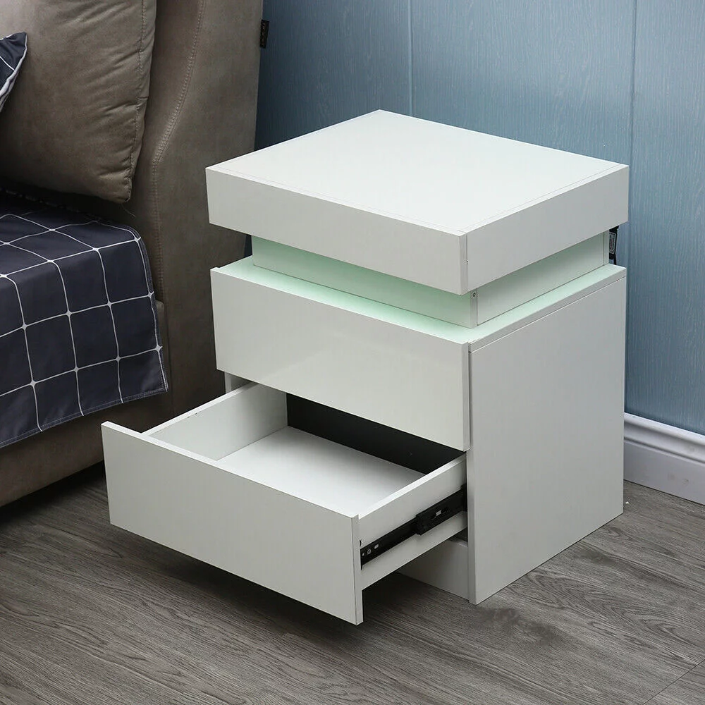Bedside Tables Modern Nightstand Storage Cabinet End Table Dresser 3 Drawers for Bedroom Living Room White