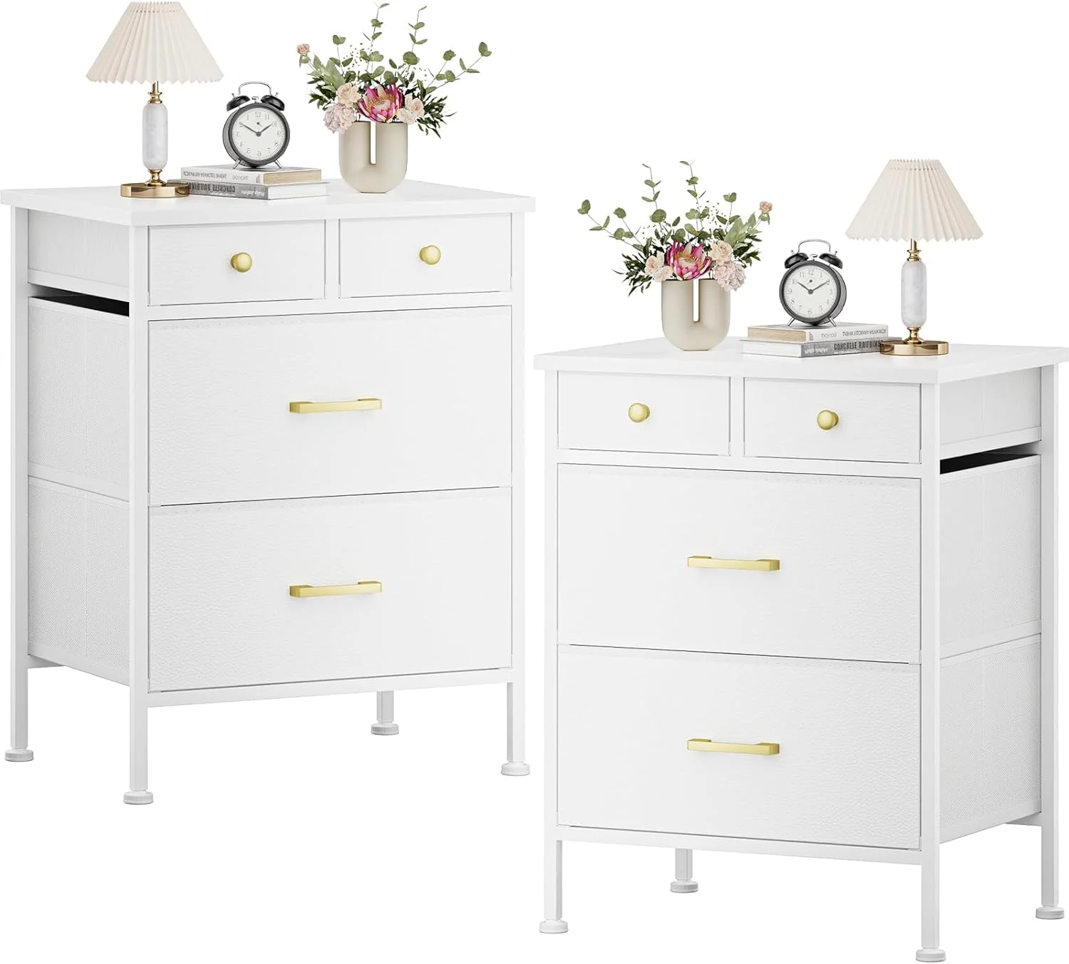 uhomepro Nightstand Chest of Drawers, 4-Drawer Dresser End Table for Living Room, Bedroom, Entryway, Closet, White