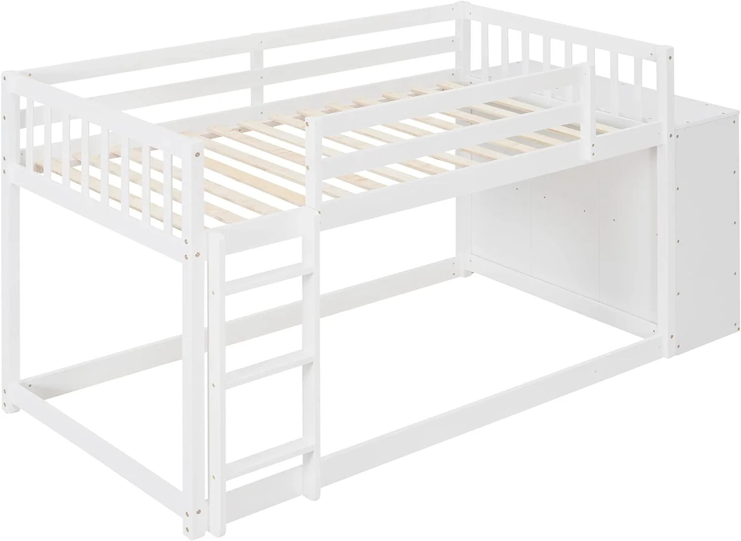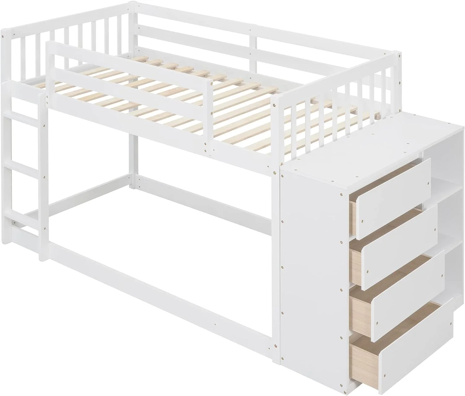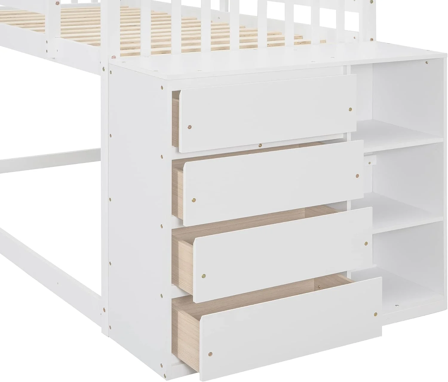 Size Lof Bed Wih Desk Ad Sorage, Solid Wood Lof Bed Frame Wih Drawers Ad Shelves, For Kids ees Aduls - Whie