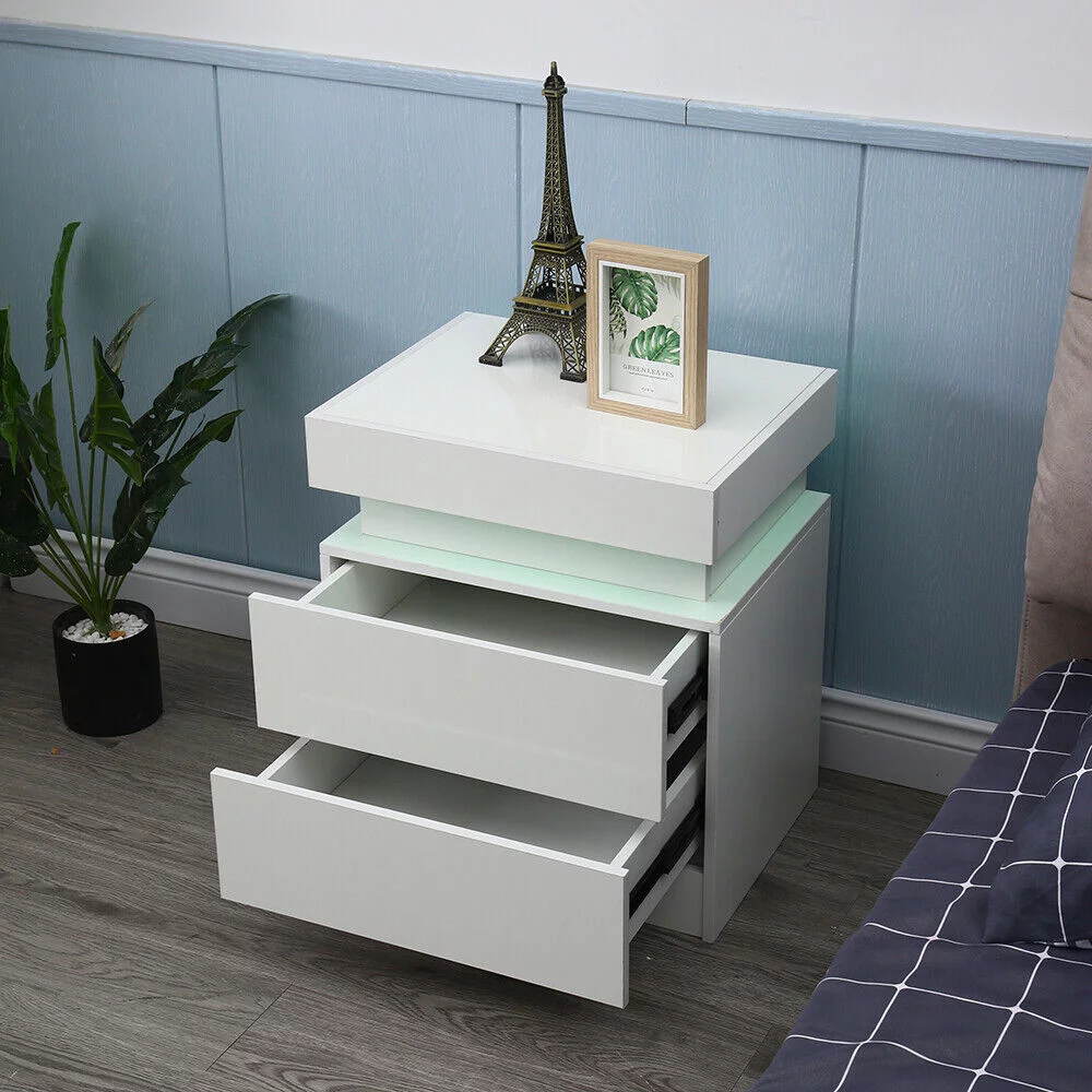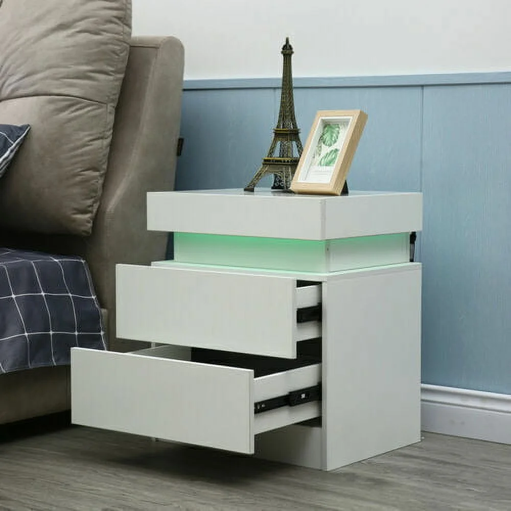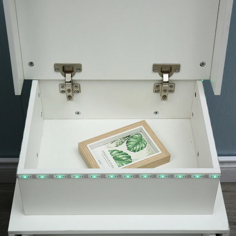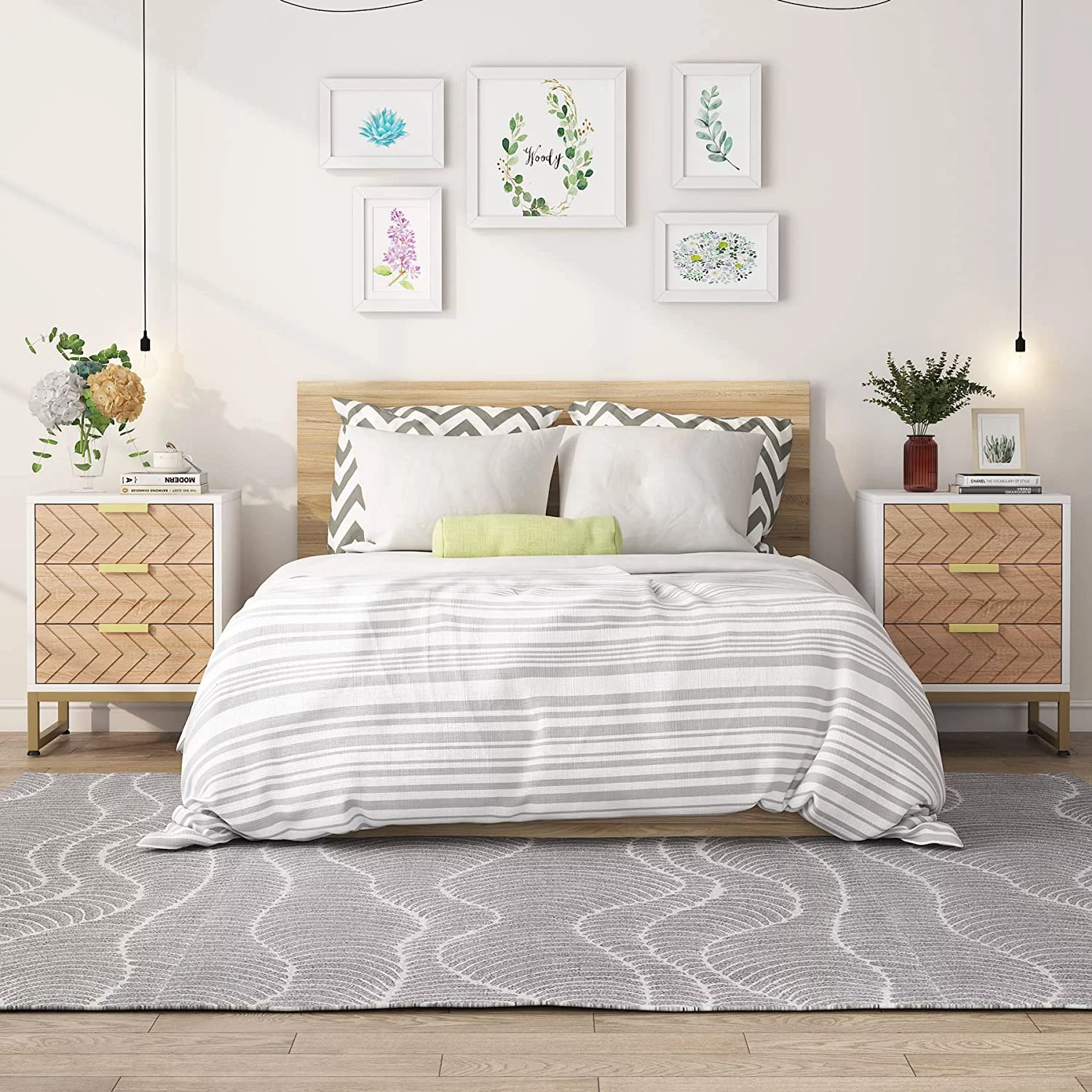 Twin Size Platform Bed with Bear Ears Shaped Headboard and LED, Cream White