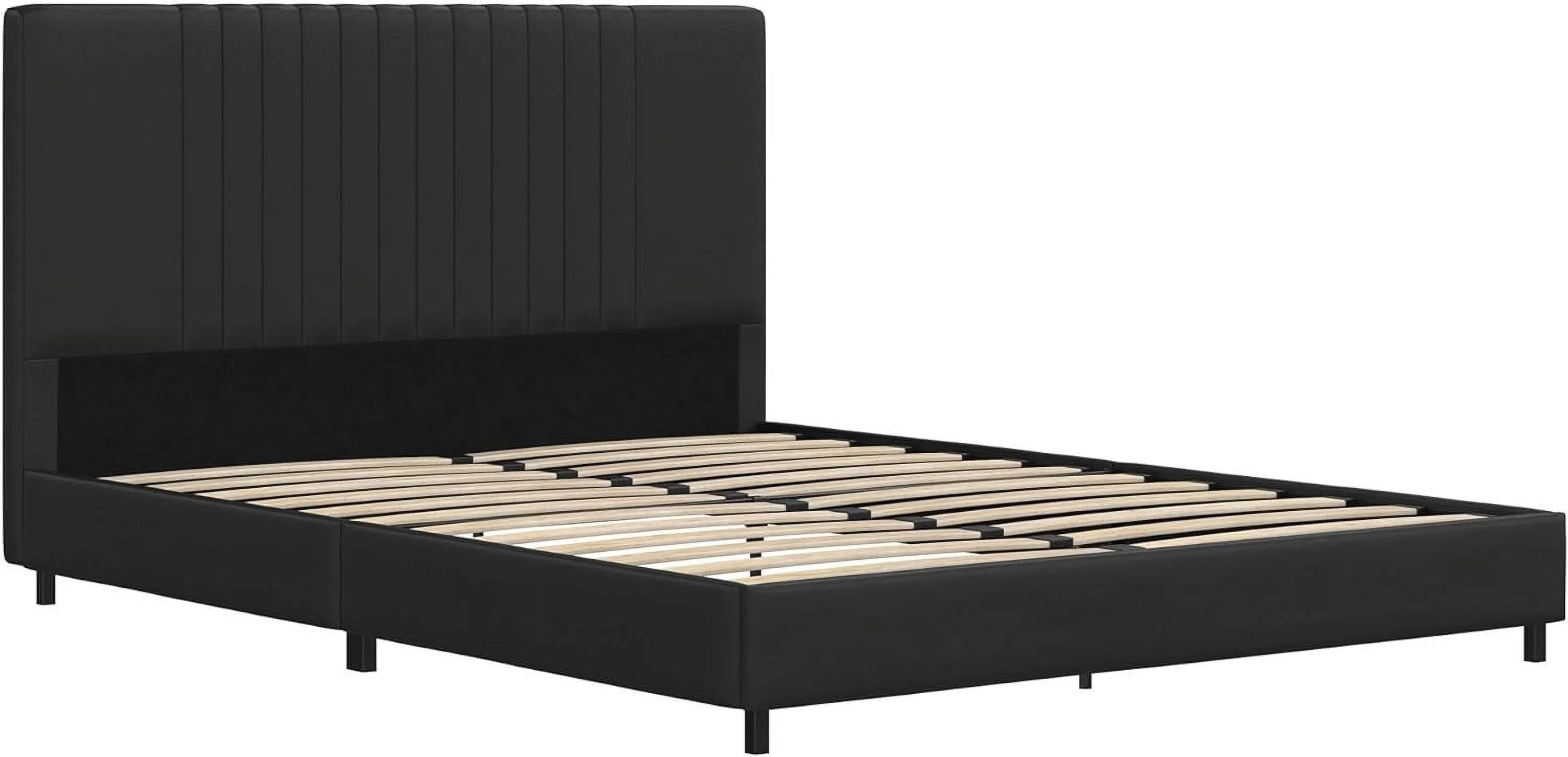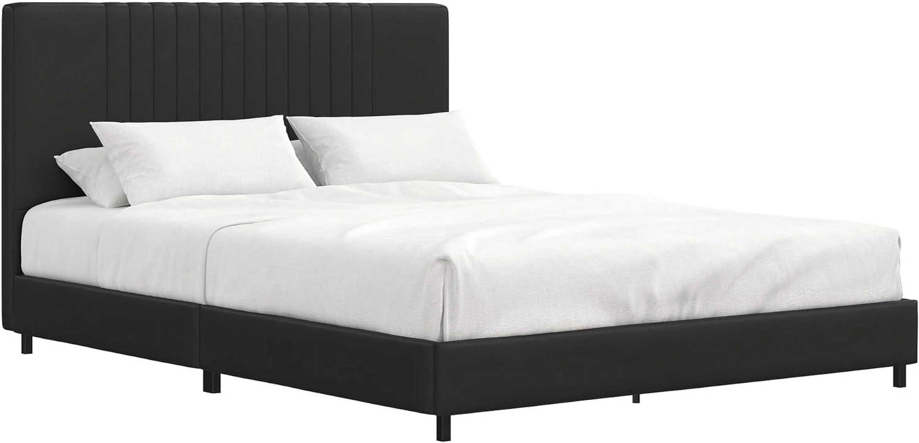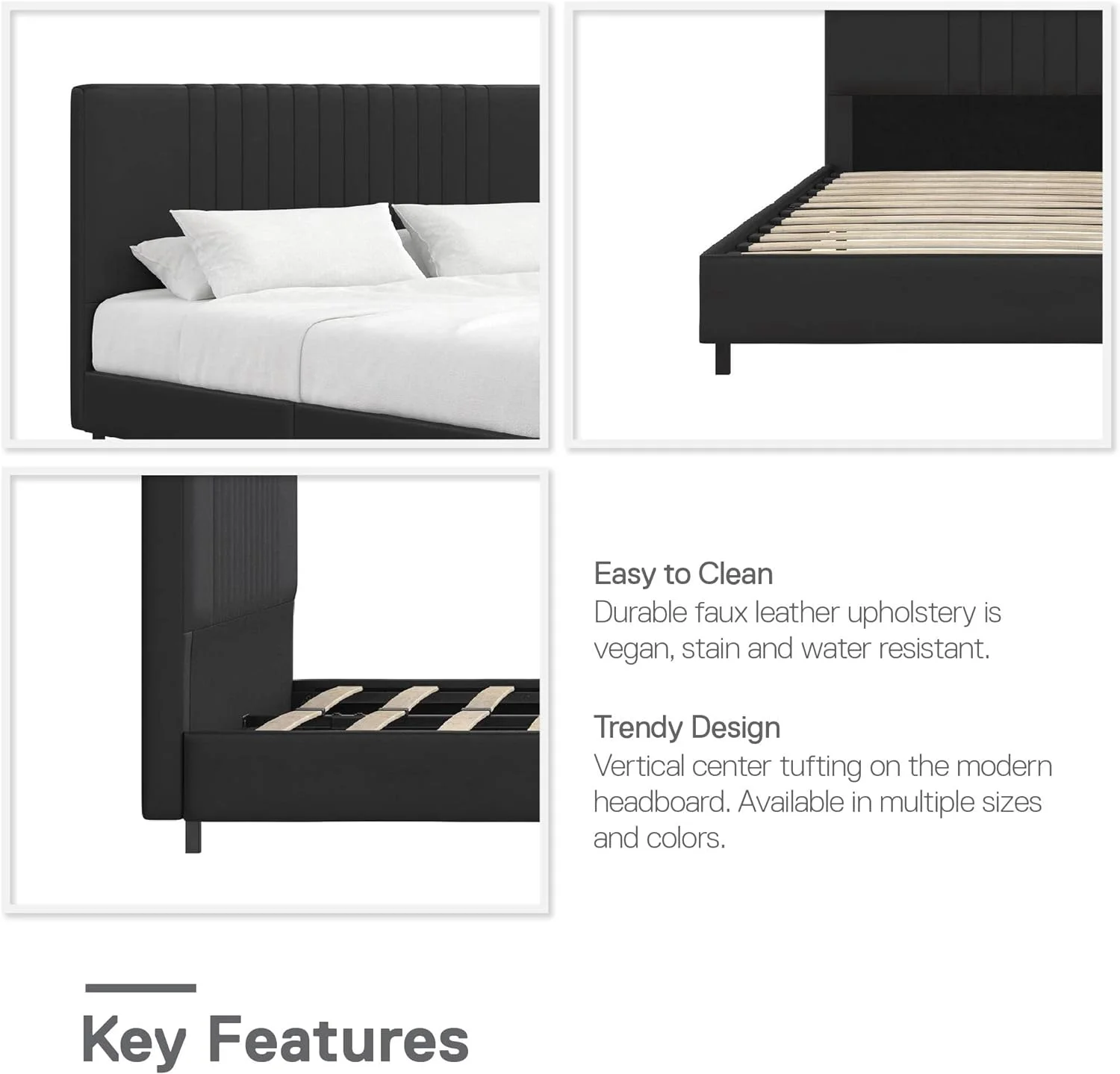 Rio Faux Leather Upholstered Platform Bed With Tufted Headboard, Full, Black