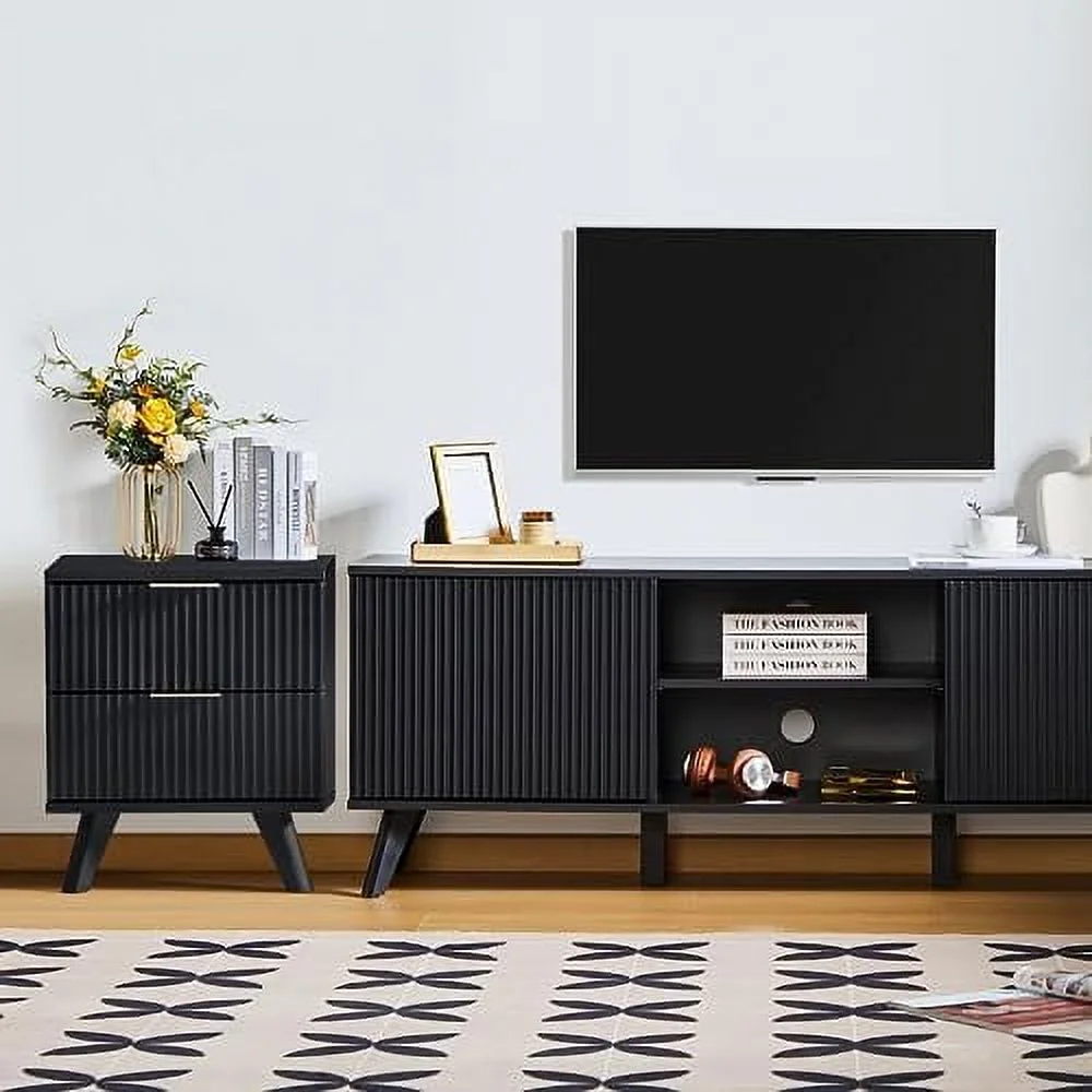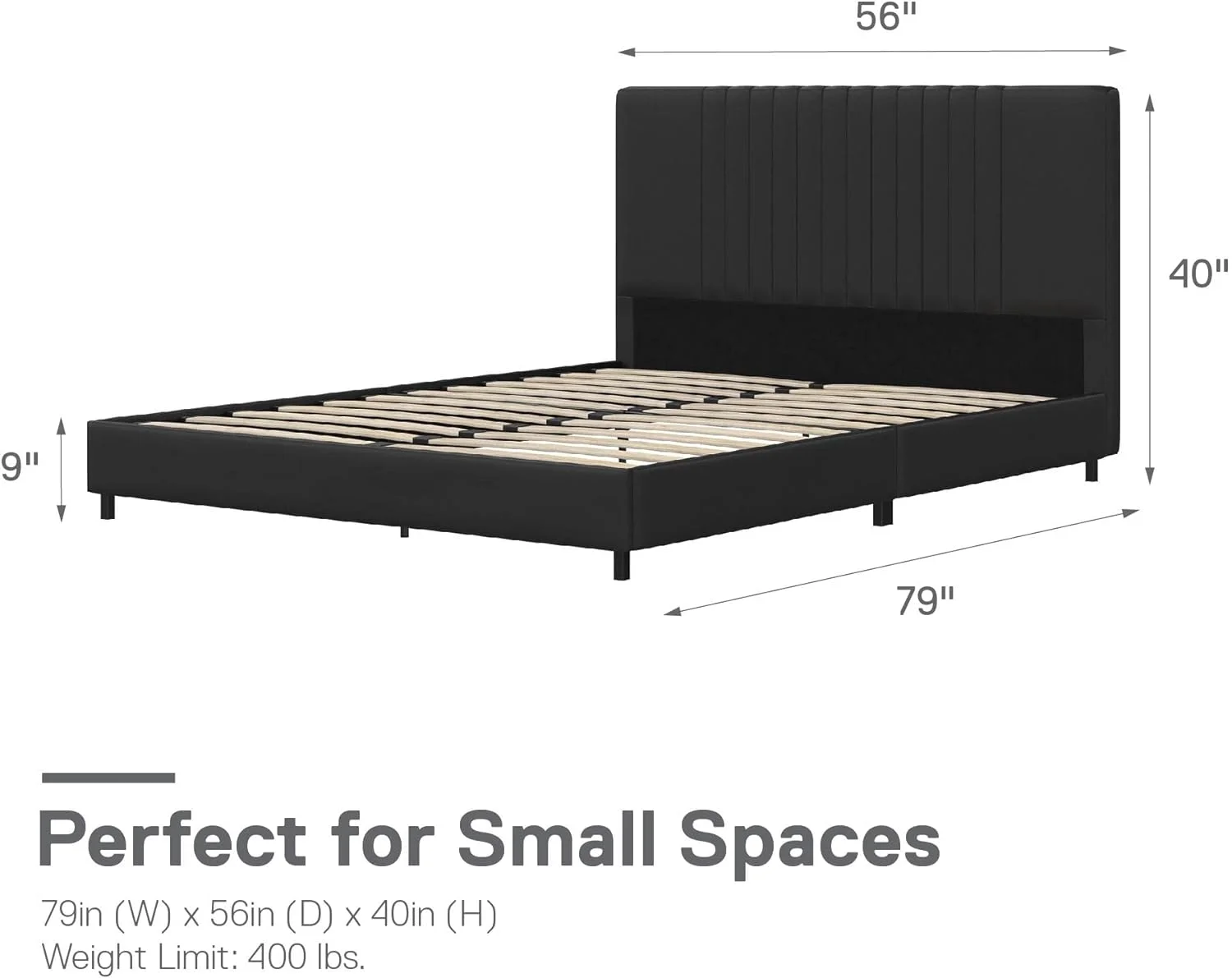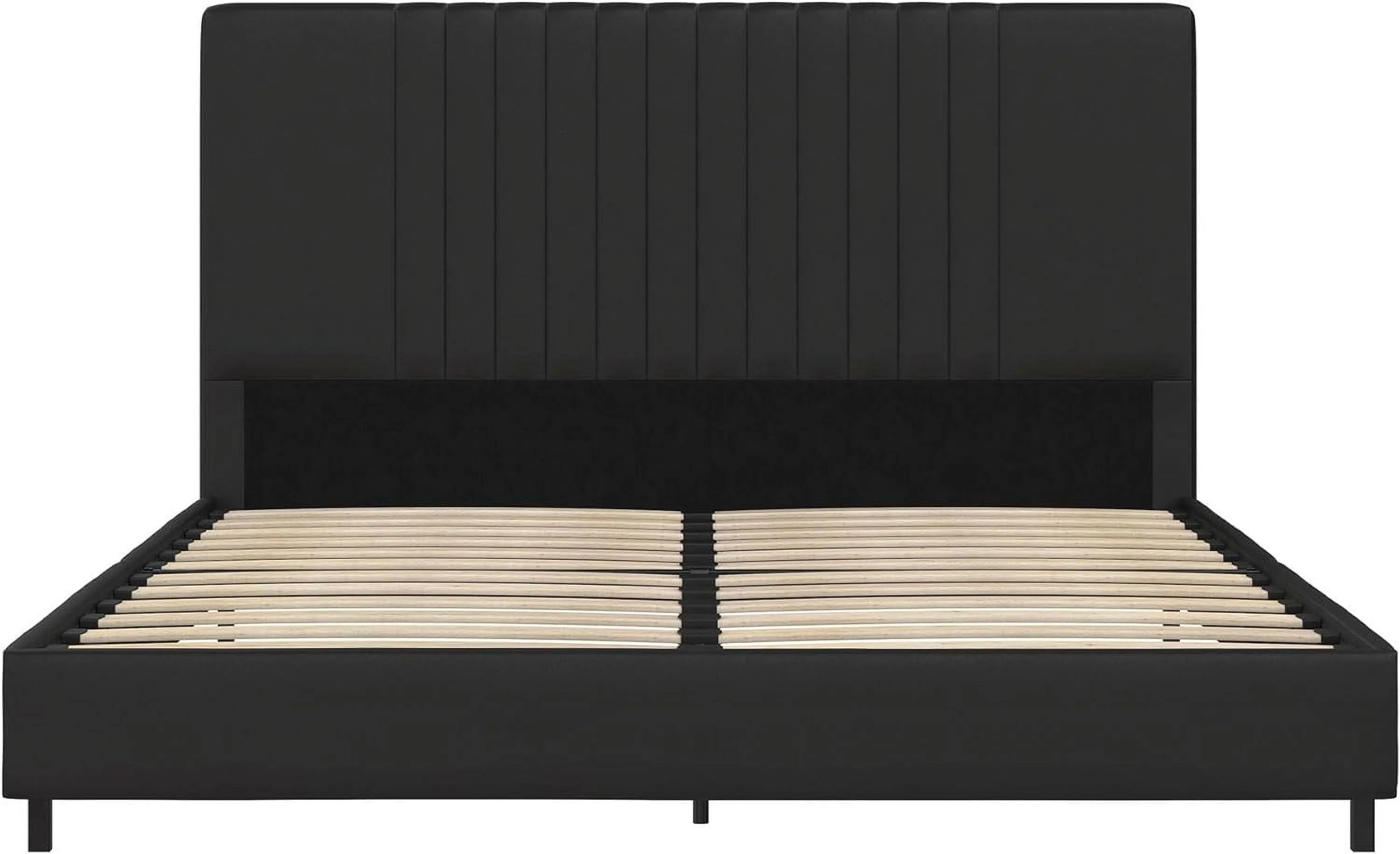 Rio Faux Leather Upholstered Platform Bed With Tufted Headboard, Full, Black