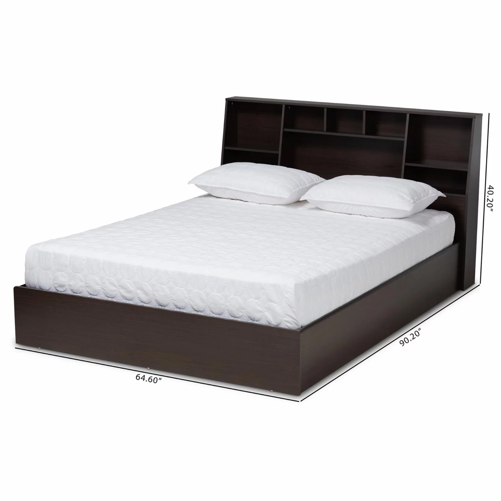 Baxton Studio Geoffrey Queen Size Dark Brown Finished Wood Platform Storage Bed