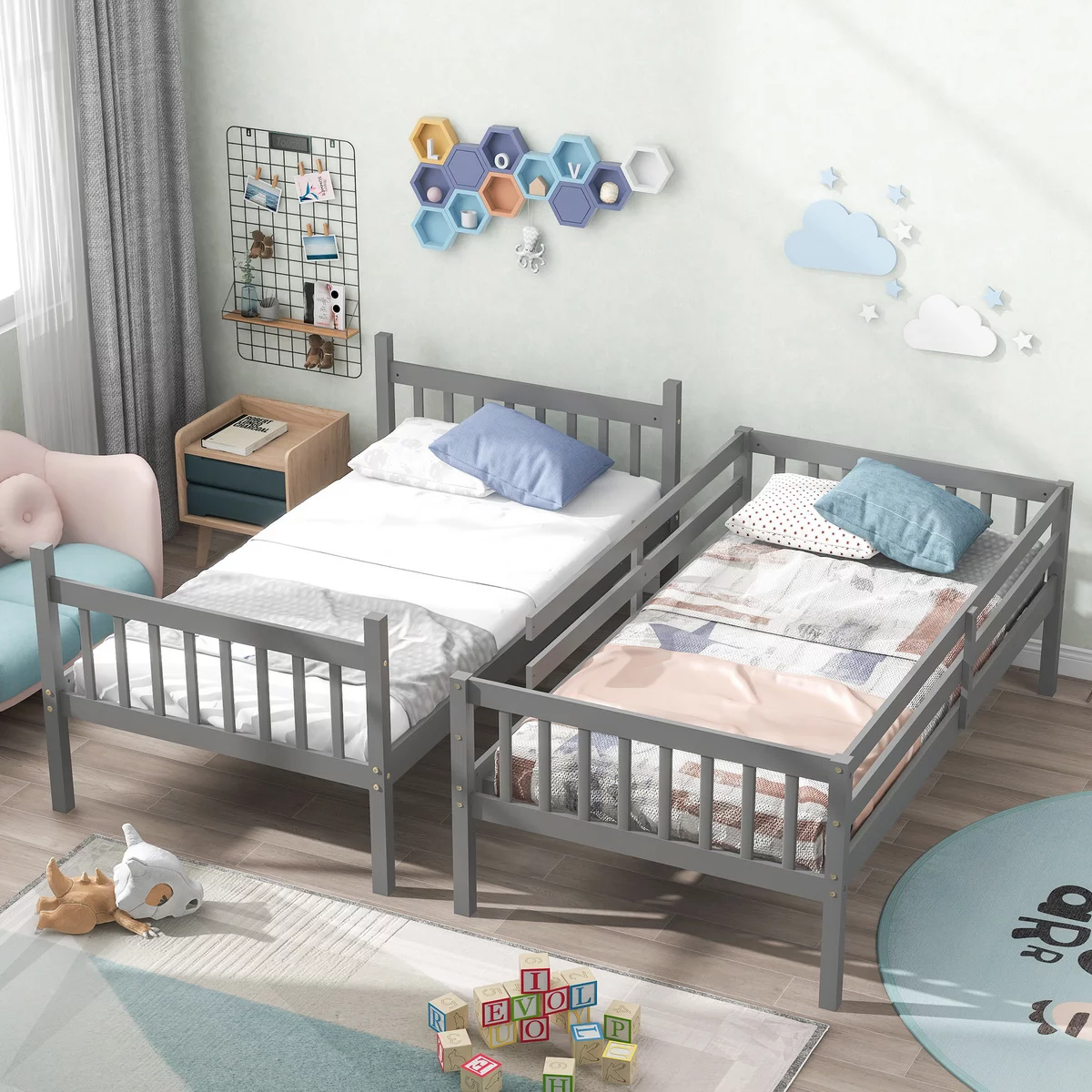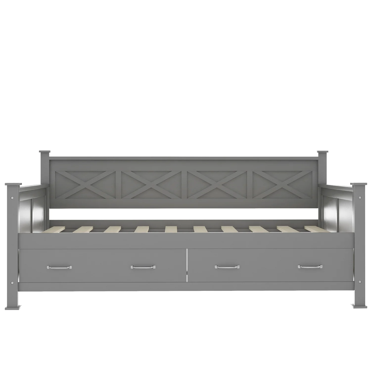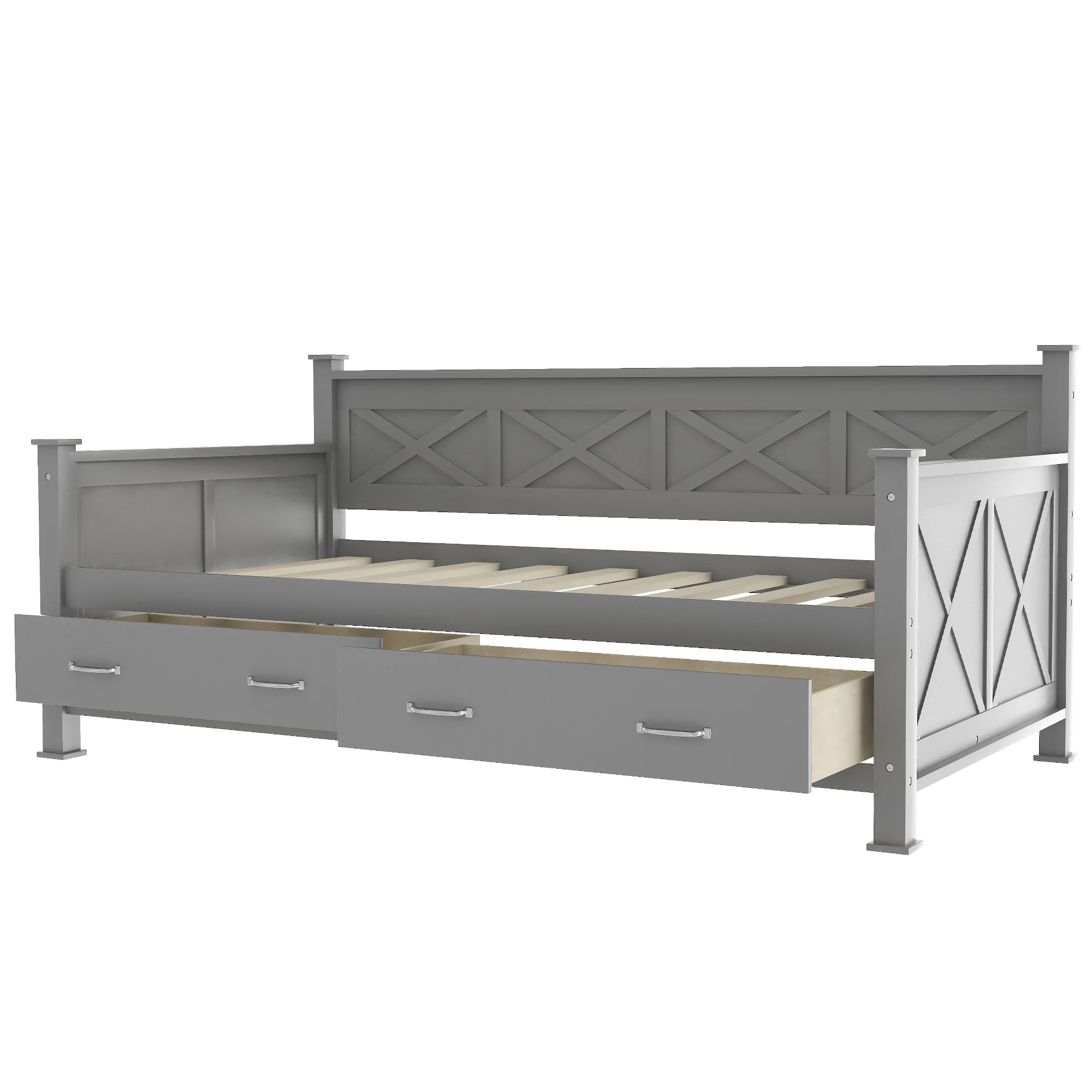 Twin Wooden Daybed With Trundle Bed Sofa Bed For Bedroom Living Room Gray 354050