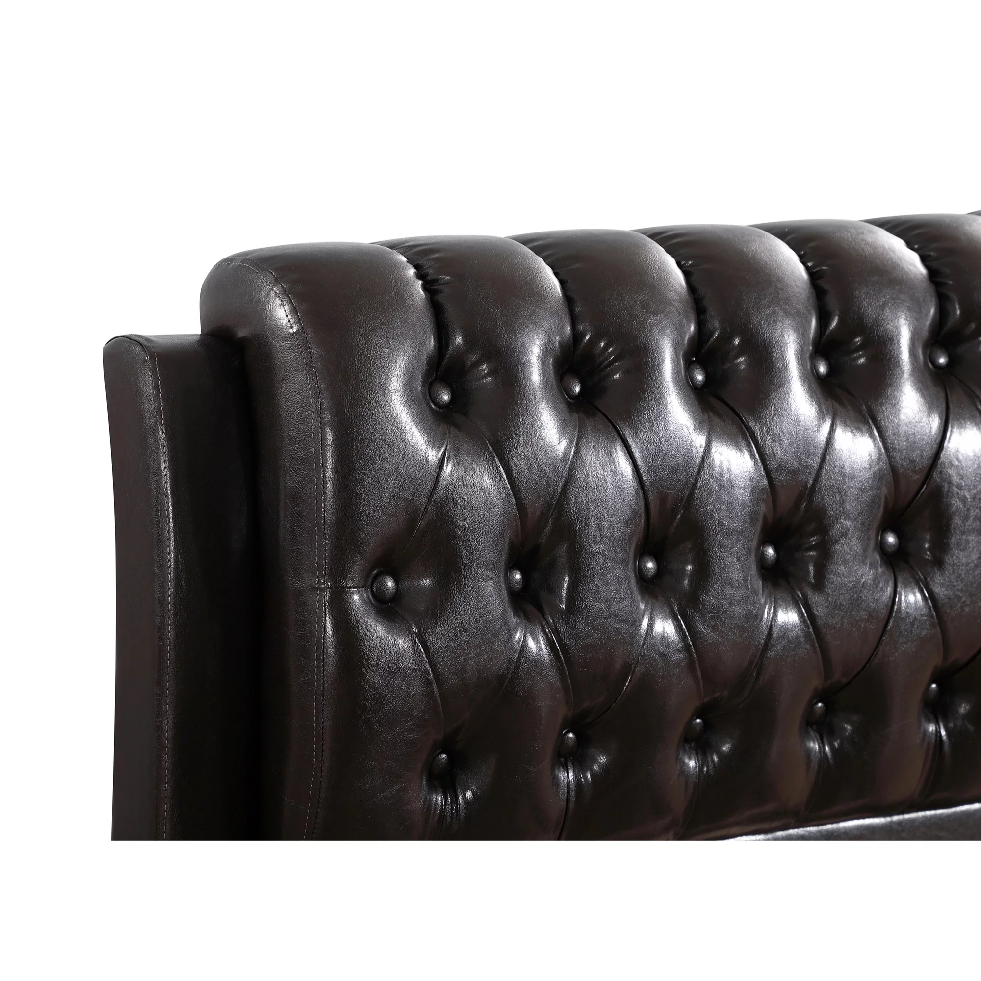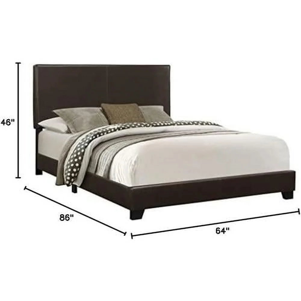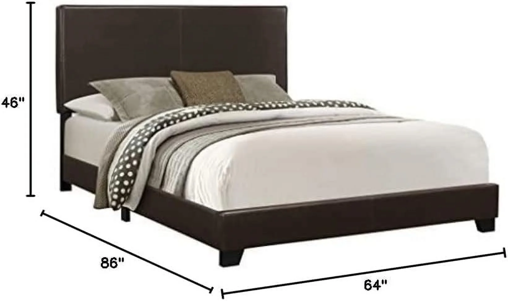 45.75 in. Dark Brown Solid Wood, MDF & Foam Queen Size Bed with a Leather Look