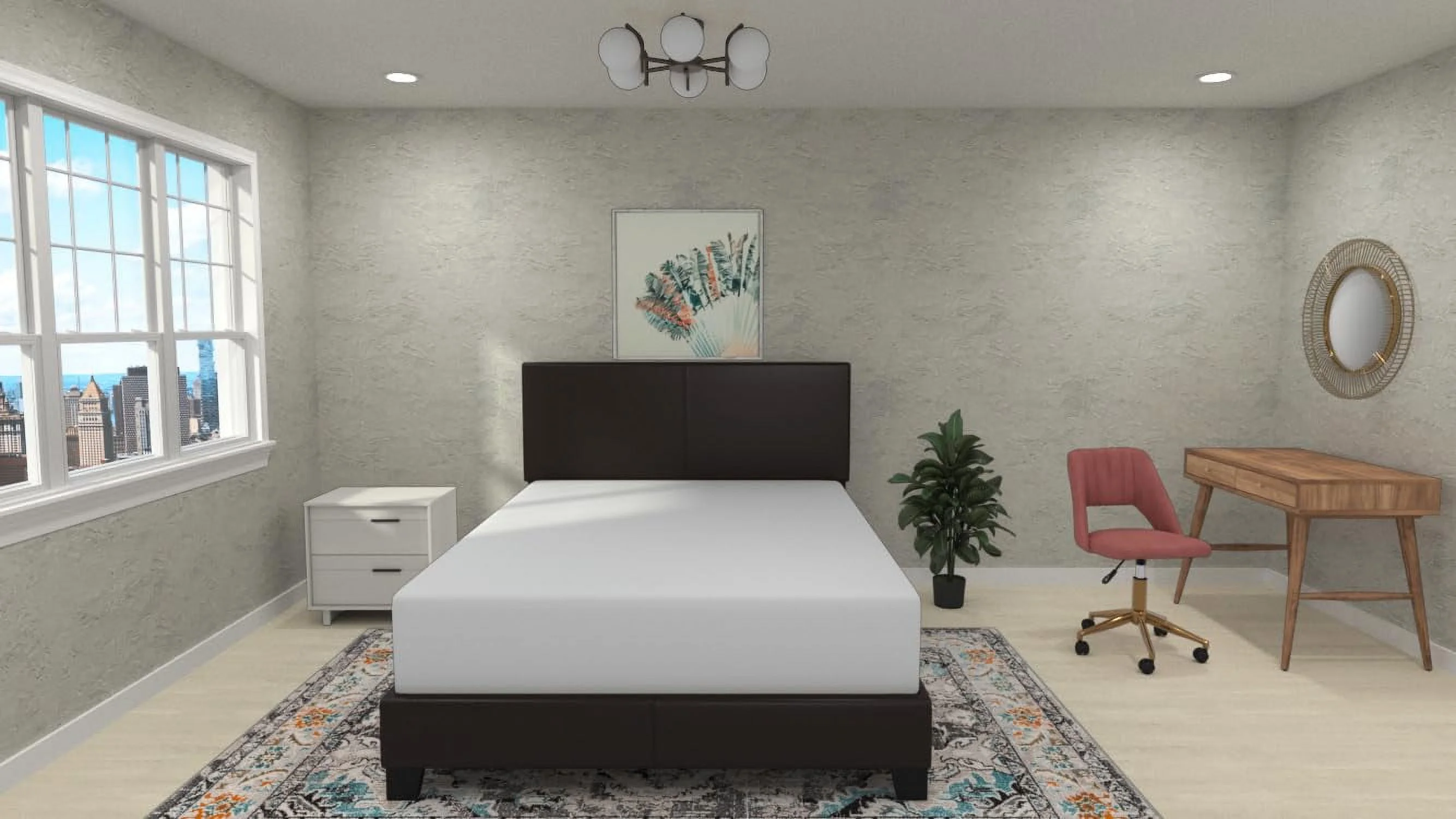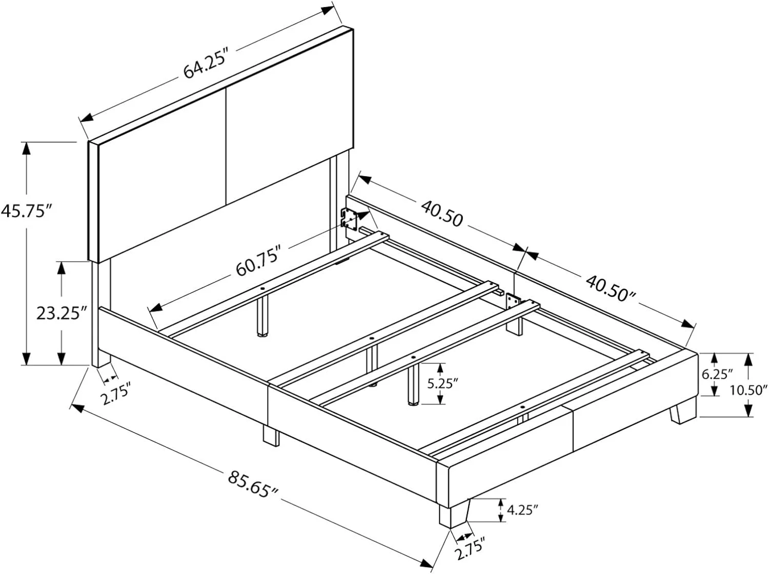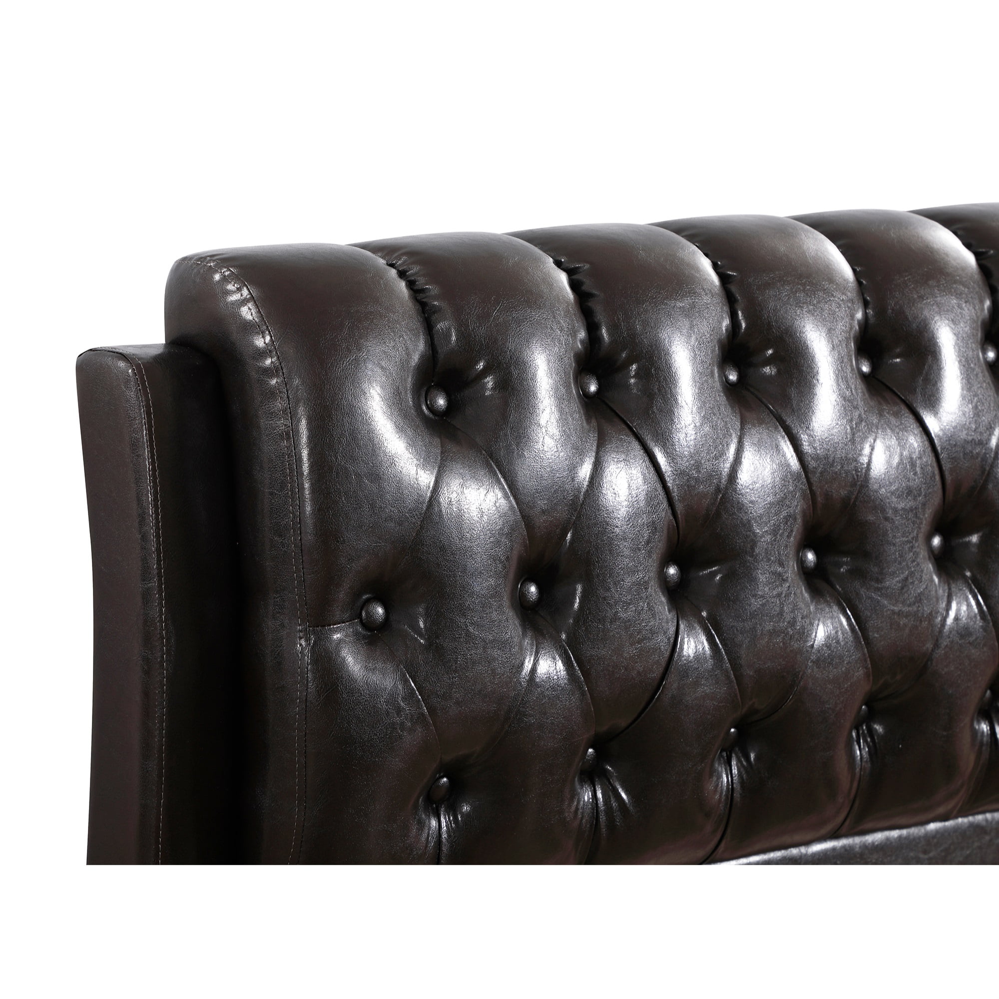 45.75 in. Dark Brown Solid Wood, MDF & Foam Queen Size Bed with a Leather Look