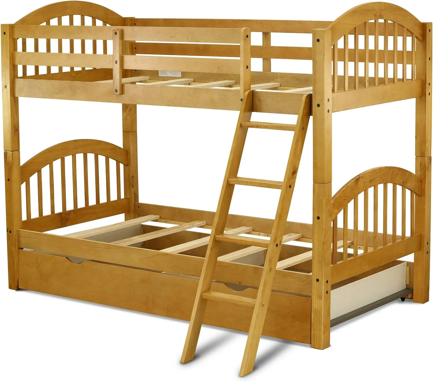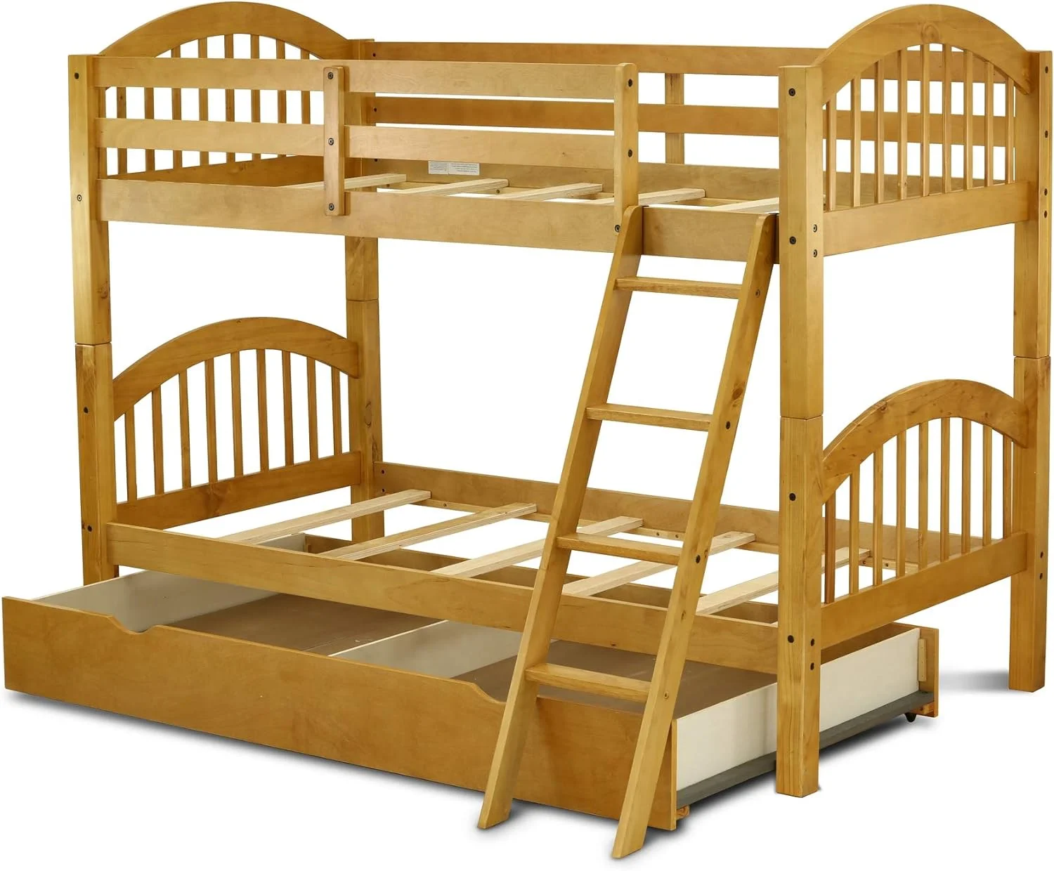 Solid Wood Bunk Beds Over With Trundle, 4-Step Ladder, And Safety Rail, Oak Finish.