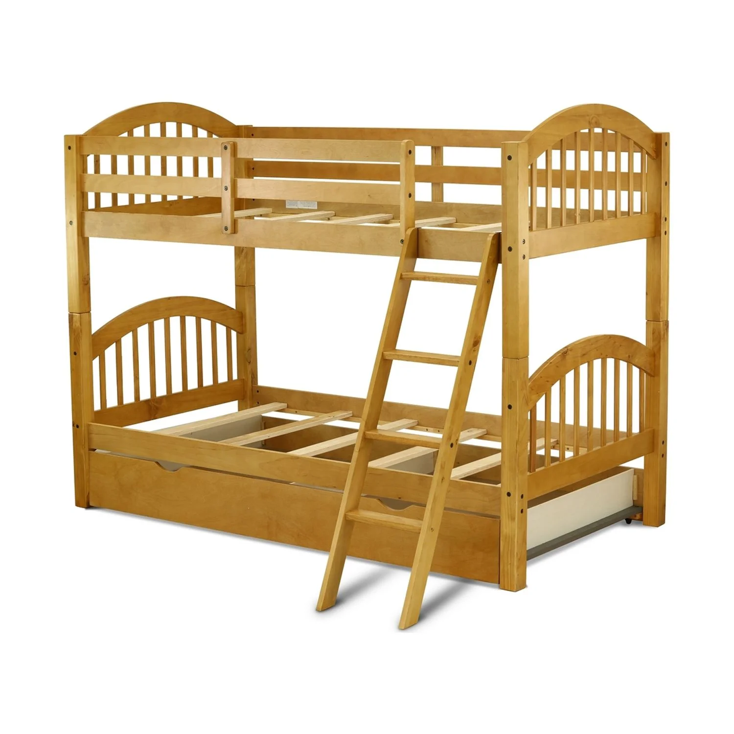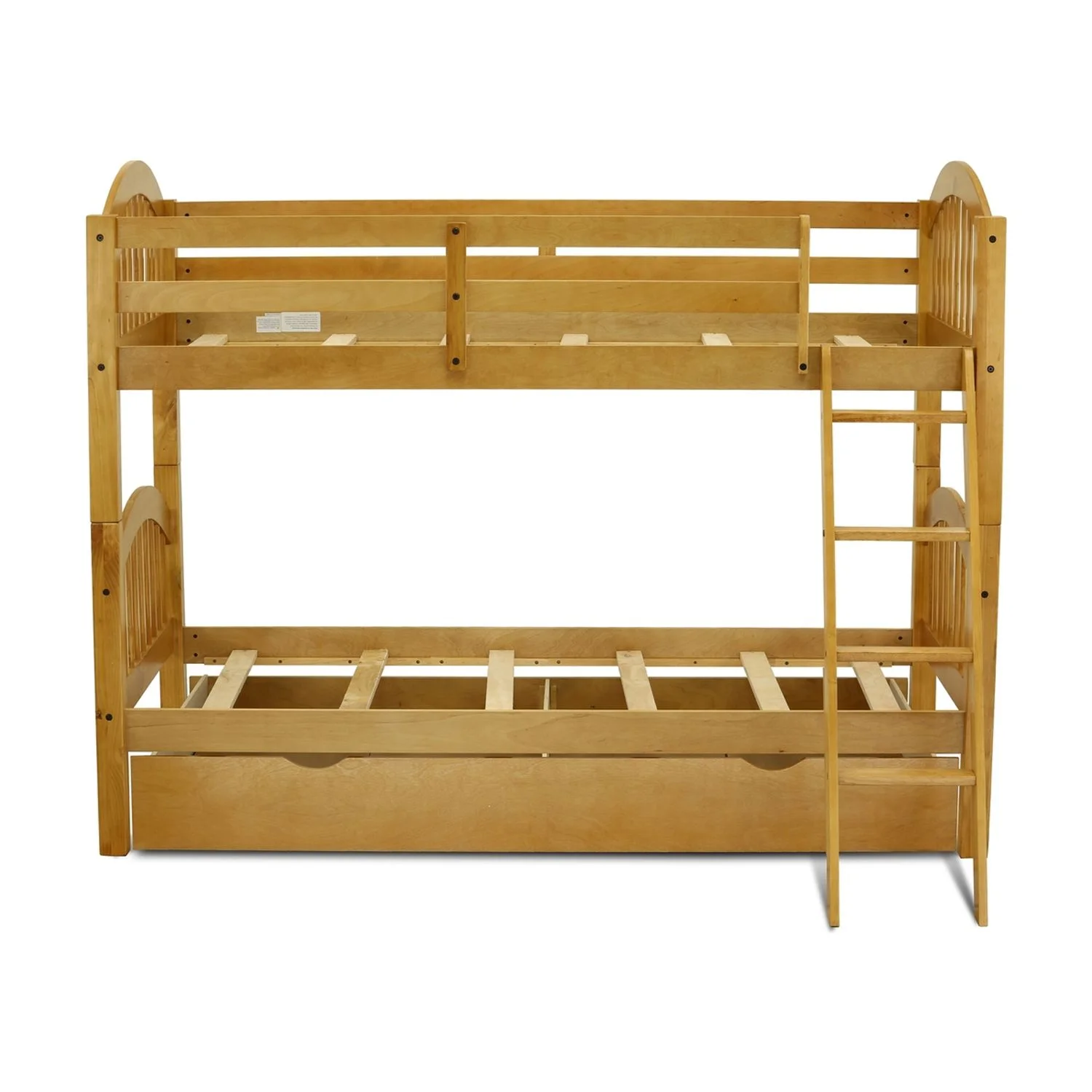 Verona Twin Size Bunk Bed with Convertible Trundle & Drawer - Natural Oak