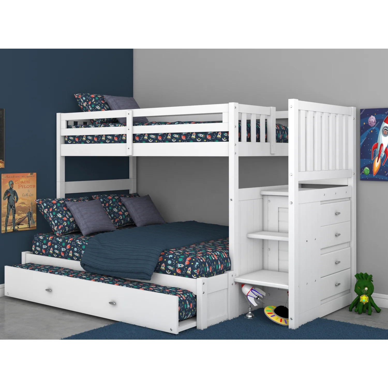 Bella Ephram Convertible Twin Over Full Bunk Bed (Optional Storage/ Trundle) White Bunk Bed Painted