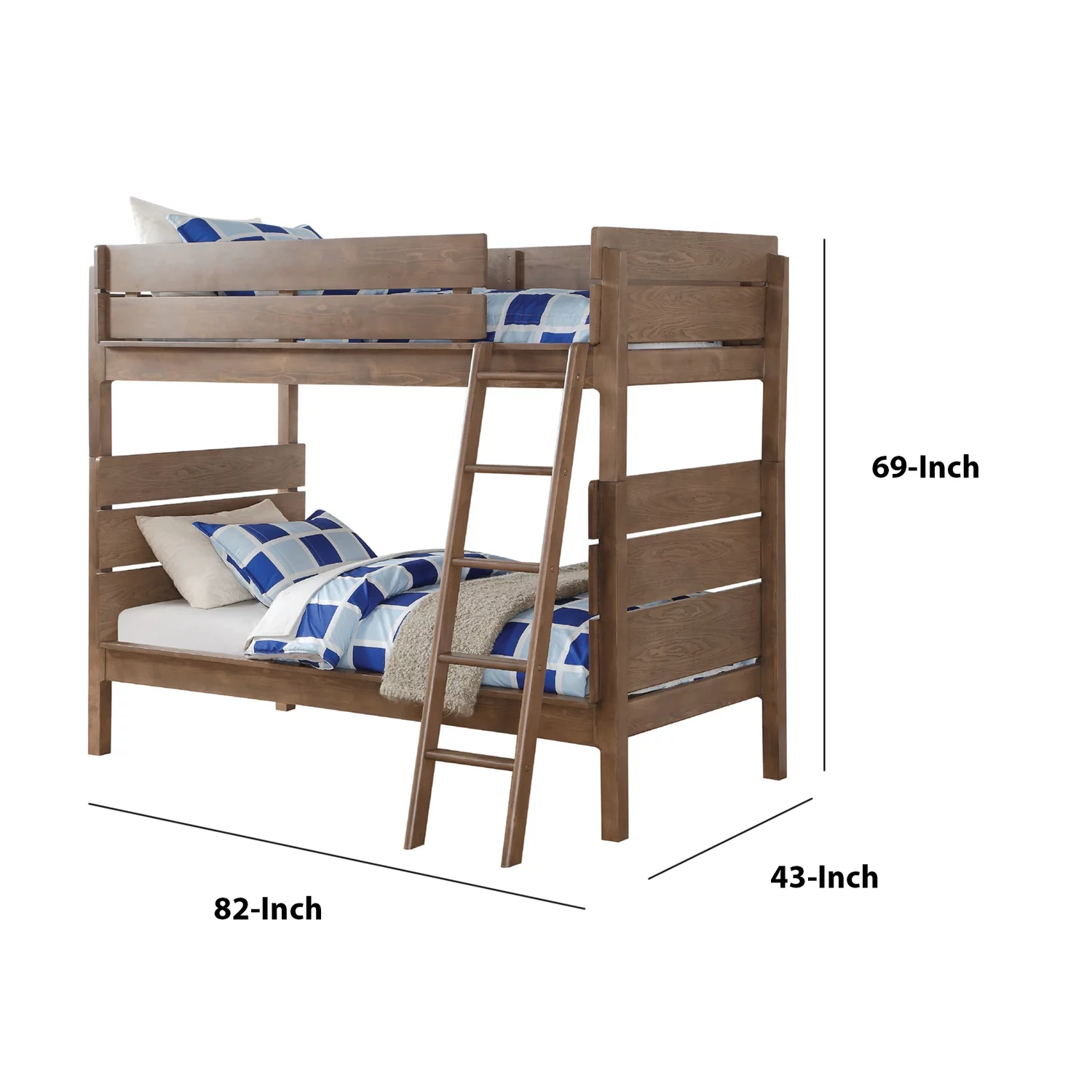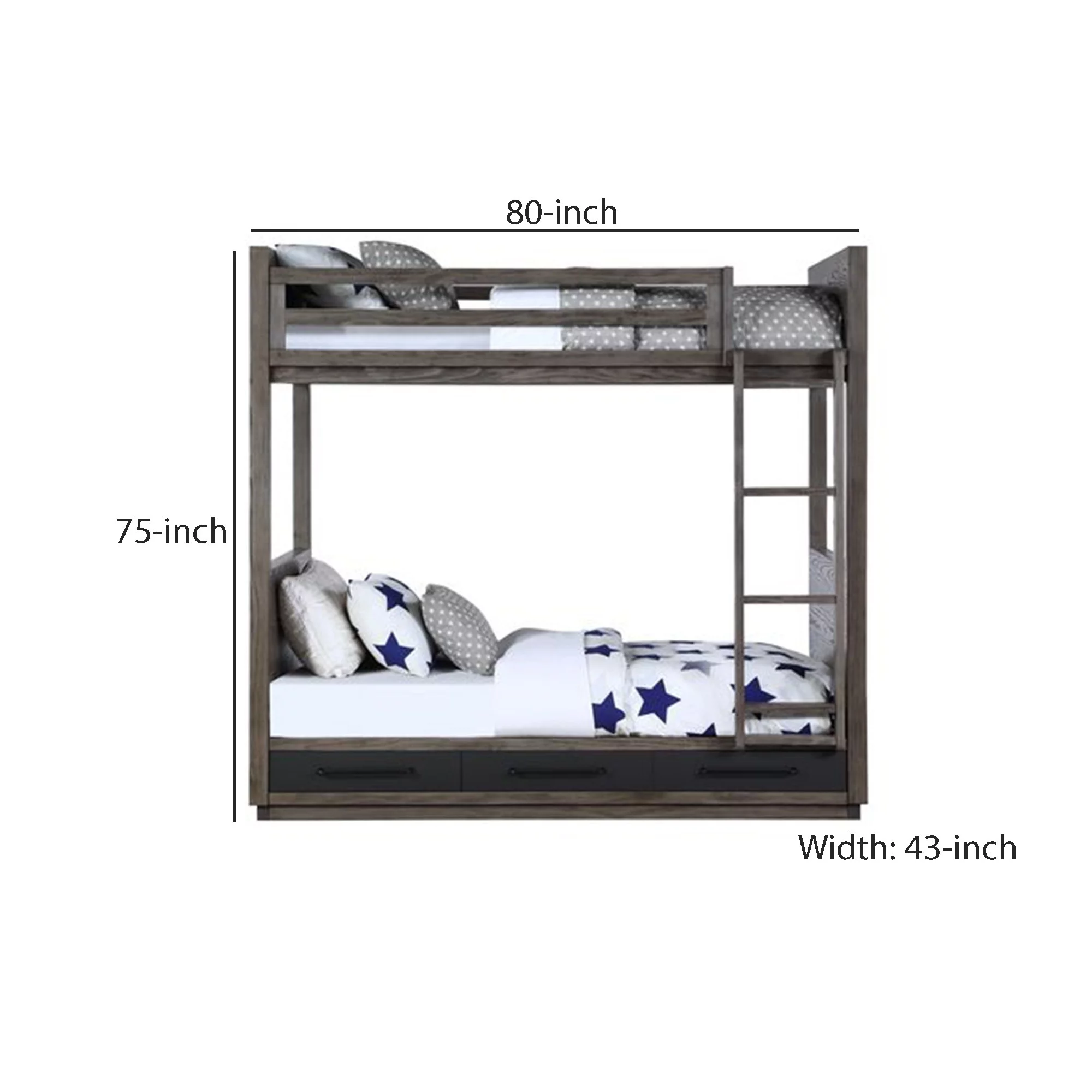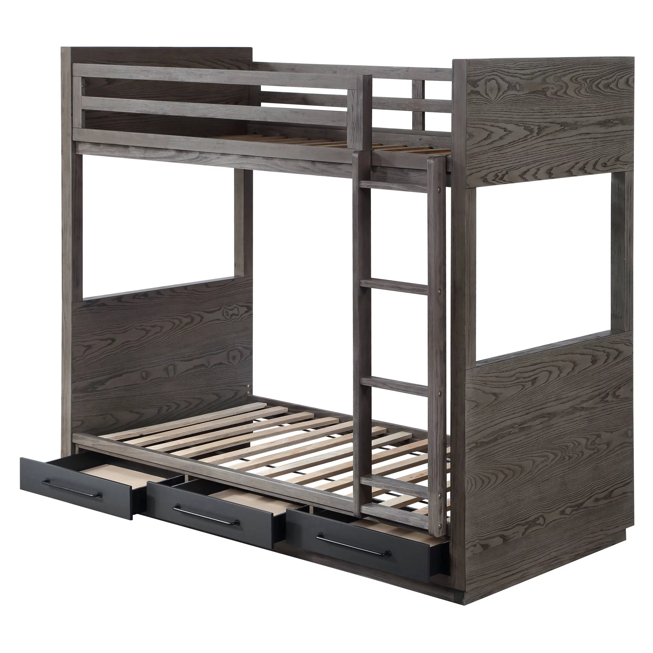 79 x 42 x 49 in. Cordelia Bunk Bed - Antique Oak, Sandy Black & Dark Bronze Hand-Brushed - Twin Size