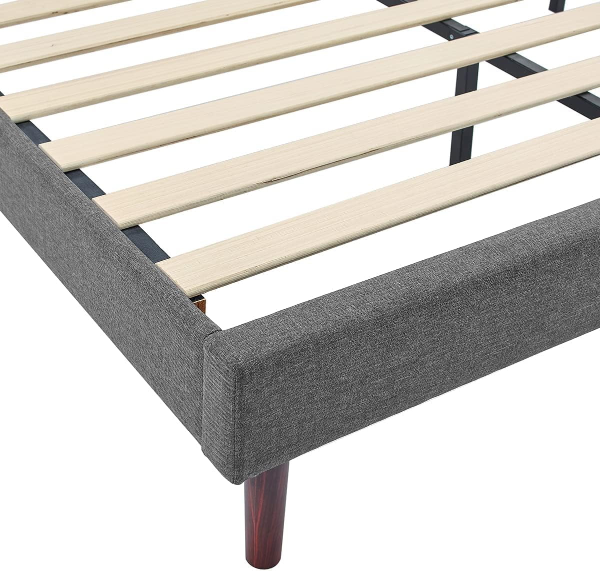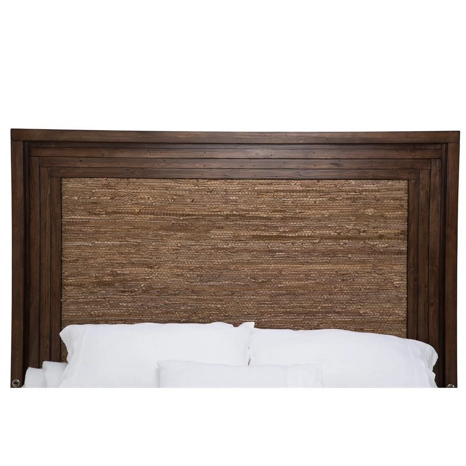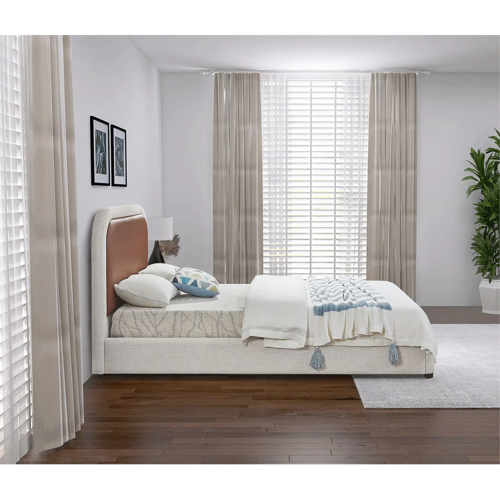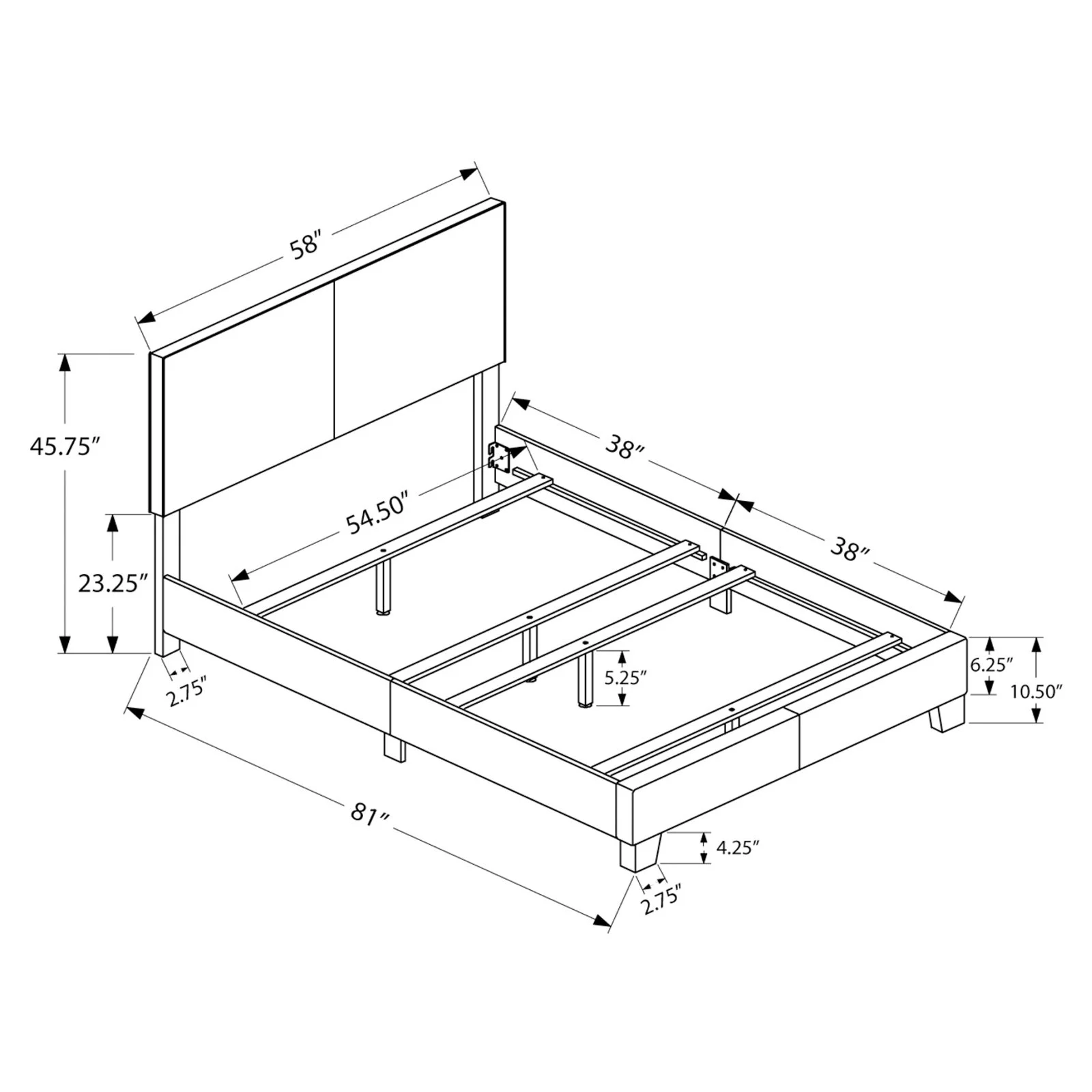 Wooden Queen Size Bed with Leather Upholstered Headboard, Brown and Grey
