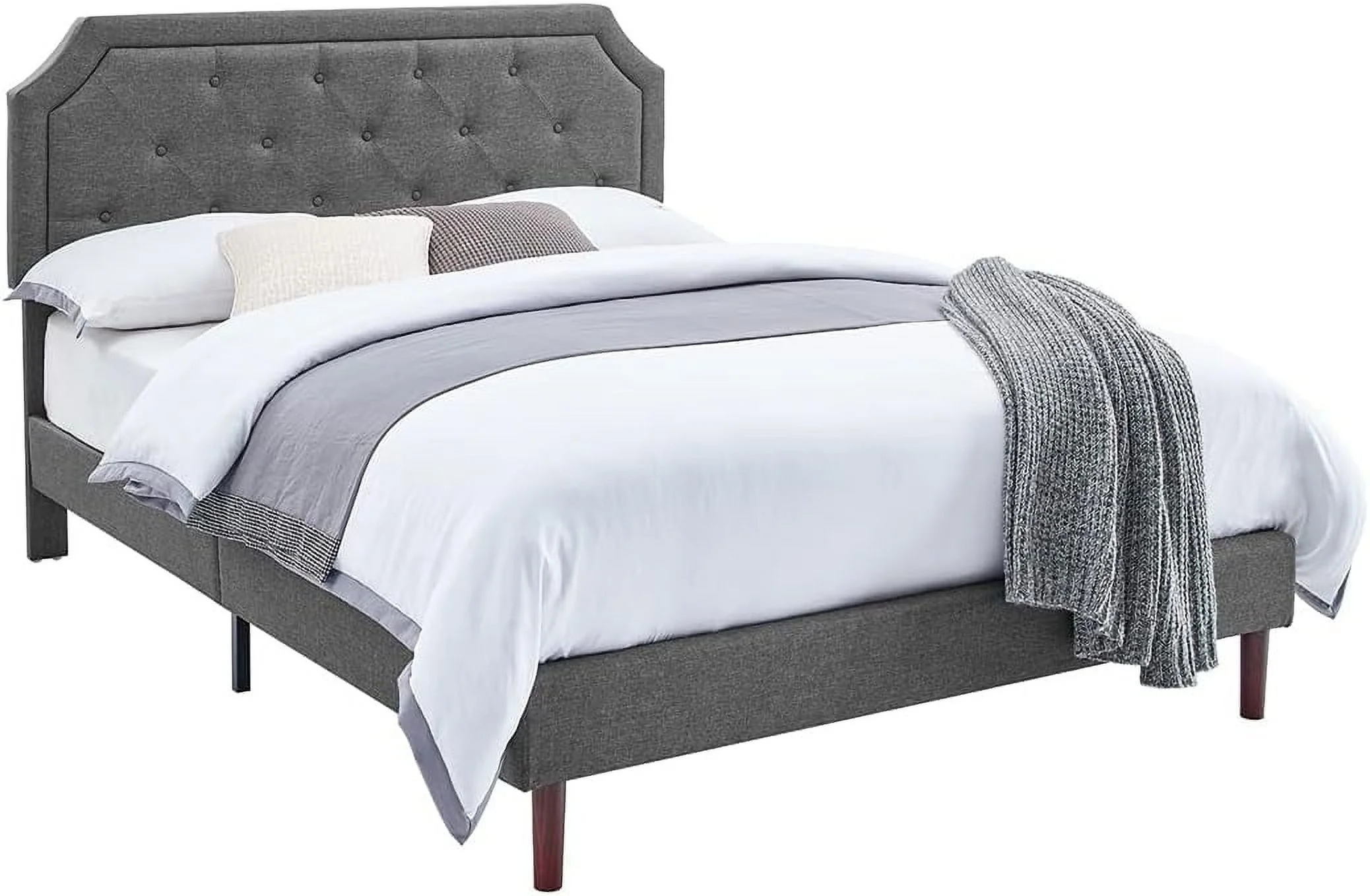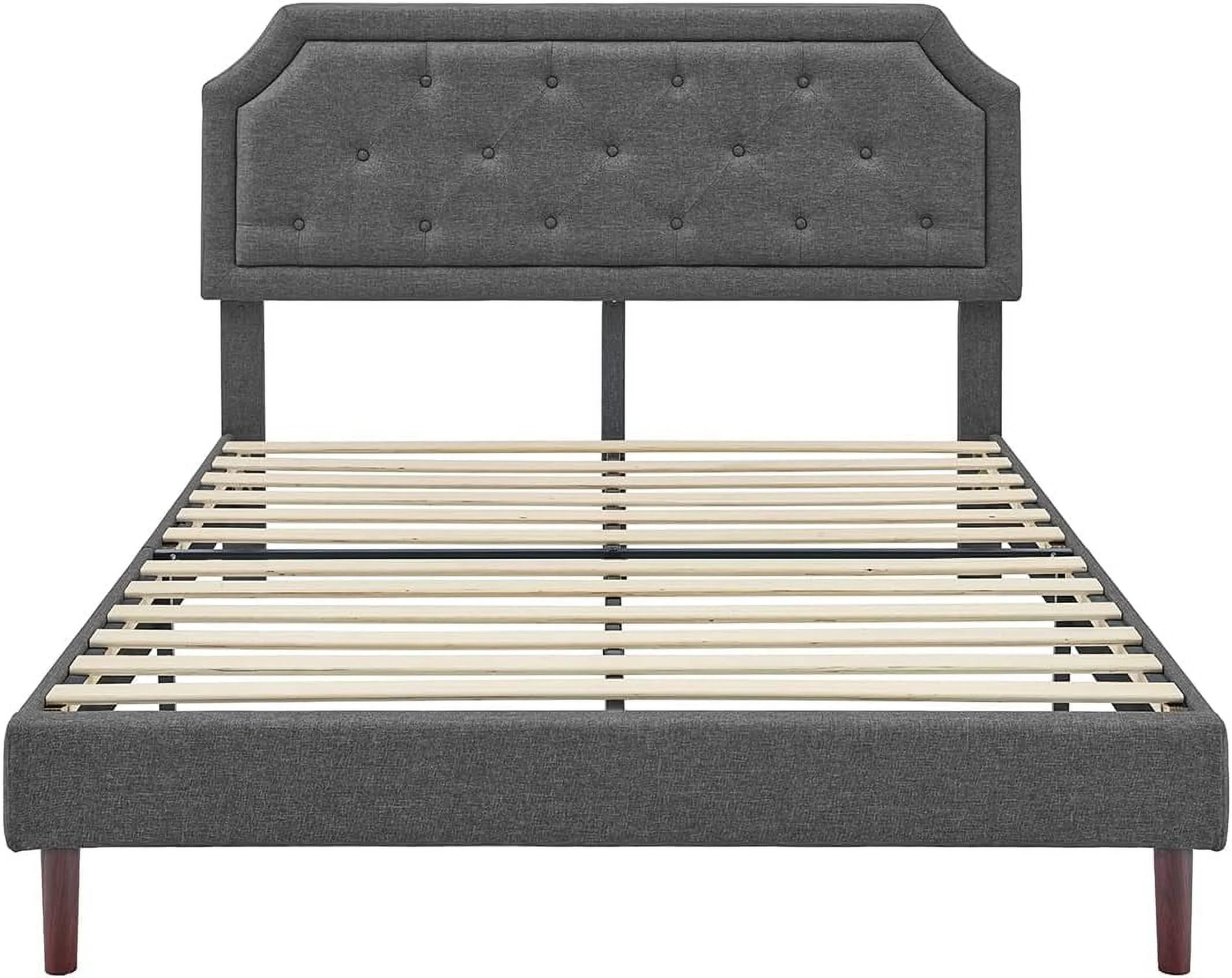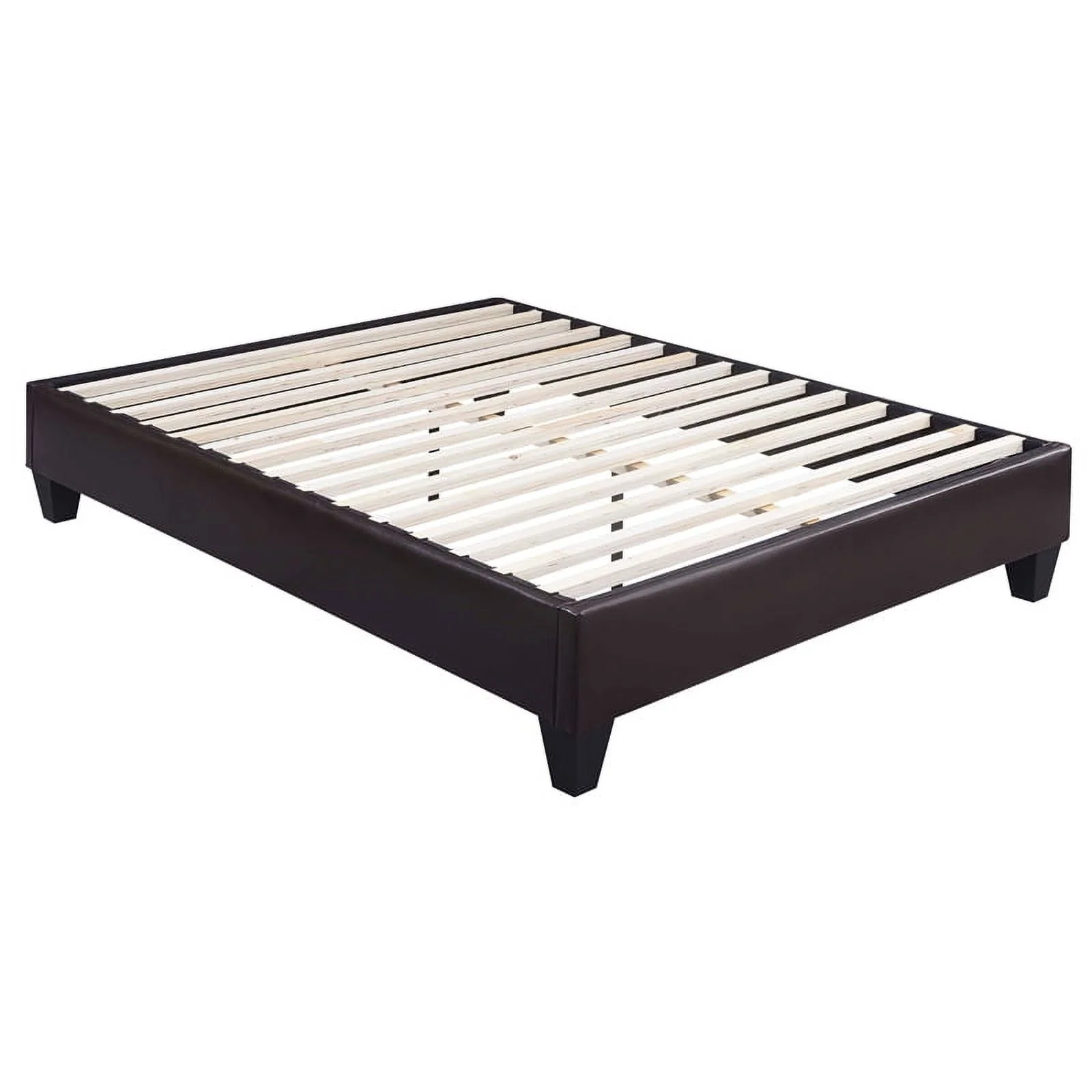 Modern Bedroom Furniture Queen Size Bed 1pc Bedframe Espresso Faux Leather Tufted HB