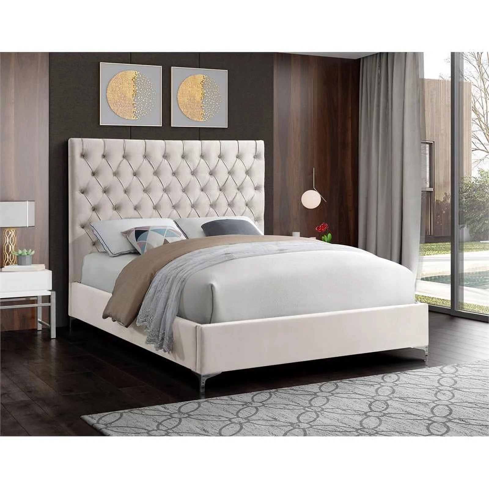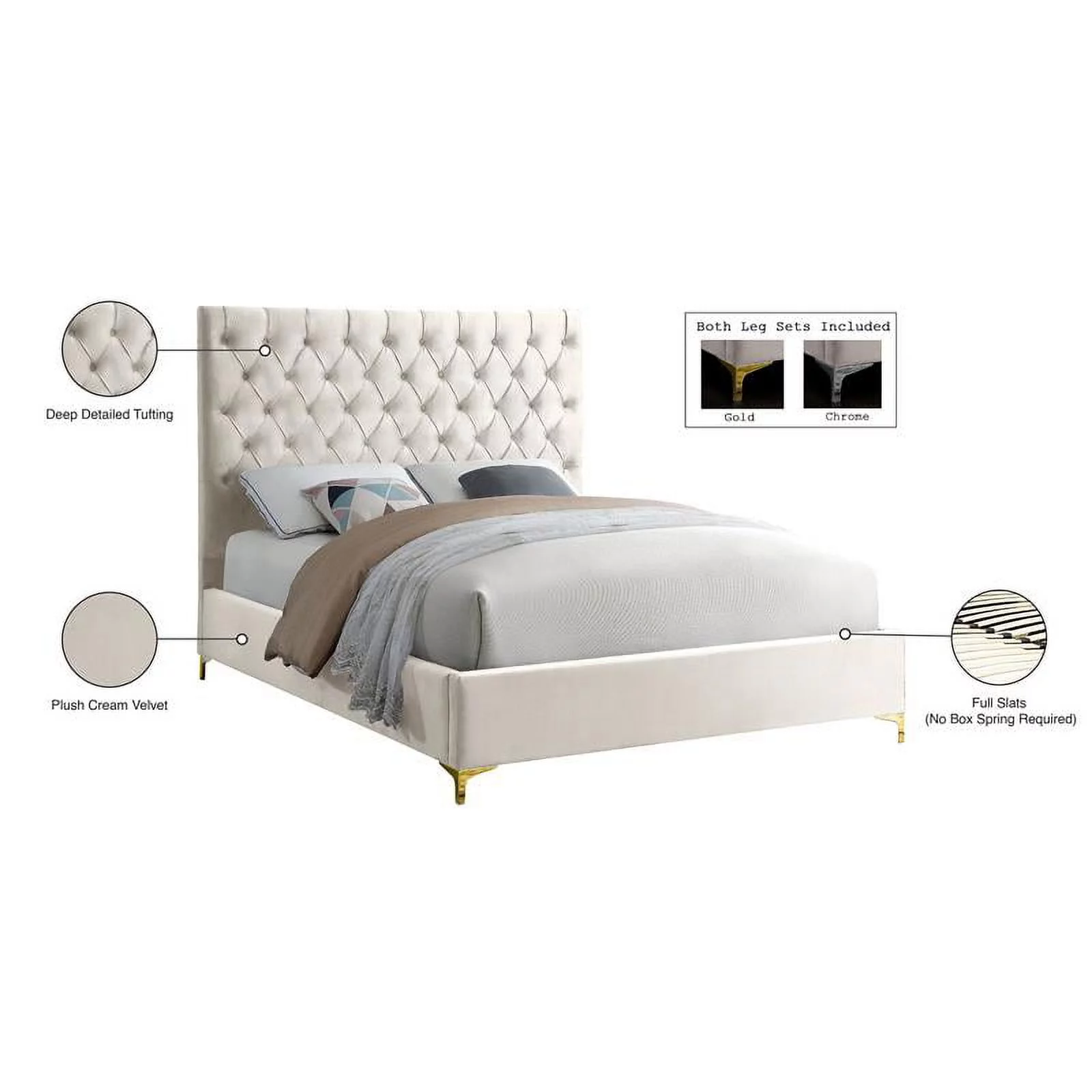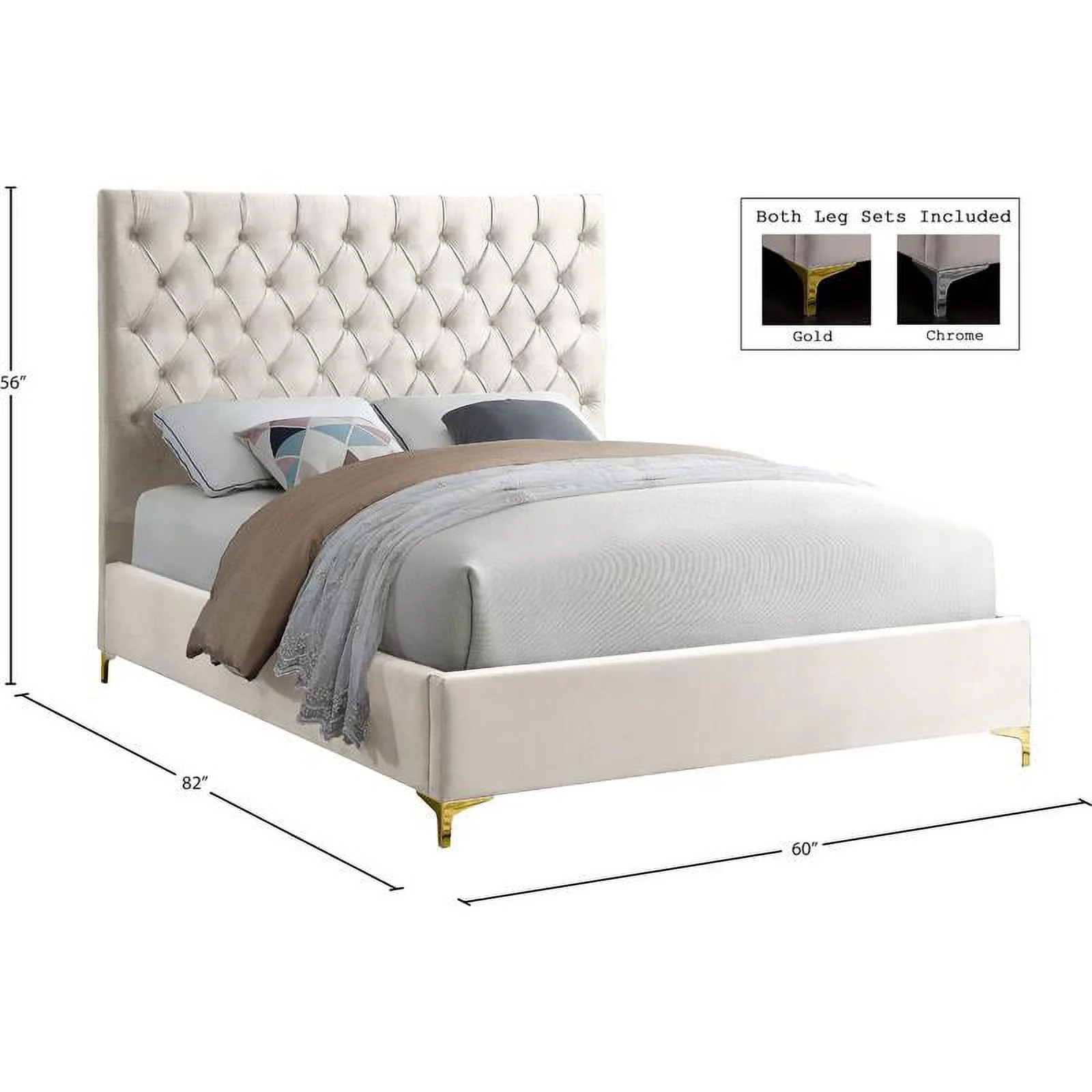 Meridian Furniture Cruz Contemporary Wood Tufted Platform Bed, Full, Cream/Gold