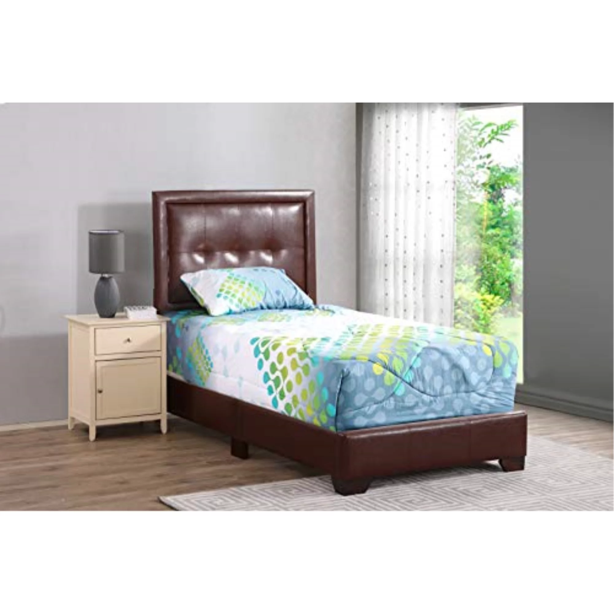 Transitional Style Leatherette Twin Bed with Padded Headboard, Dark Brown