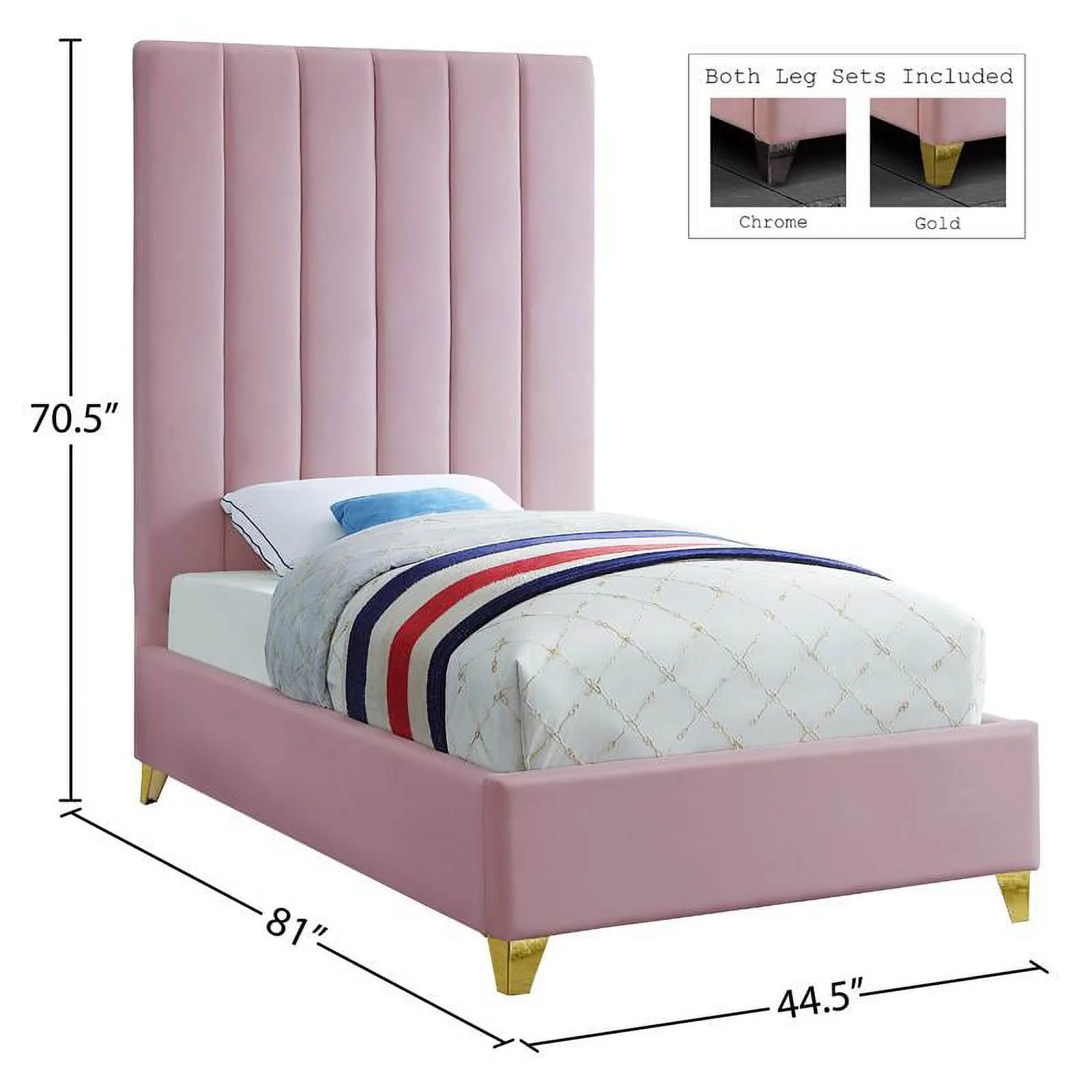 Meridian Furniture Via Contemporary Wood Leaning Platform Bed, Twin, Pink/Gold
