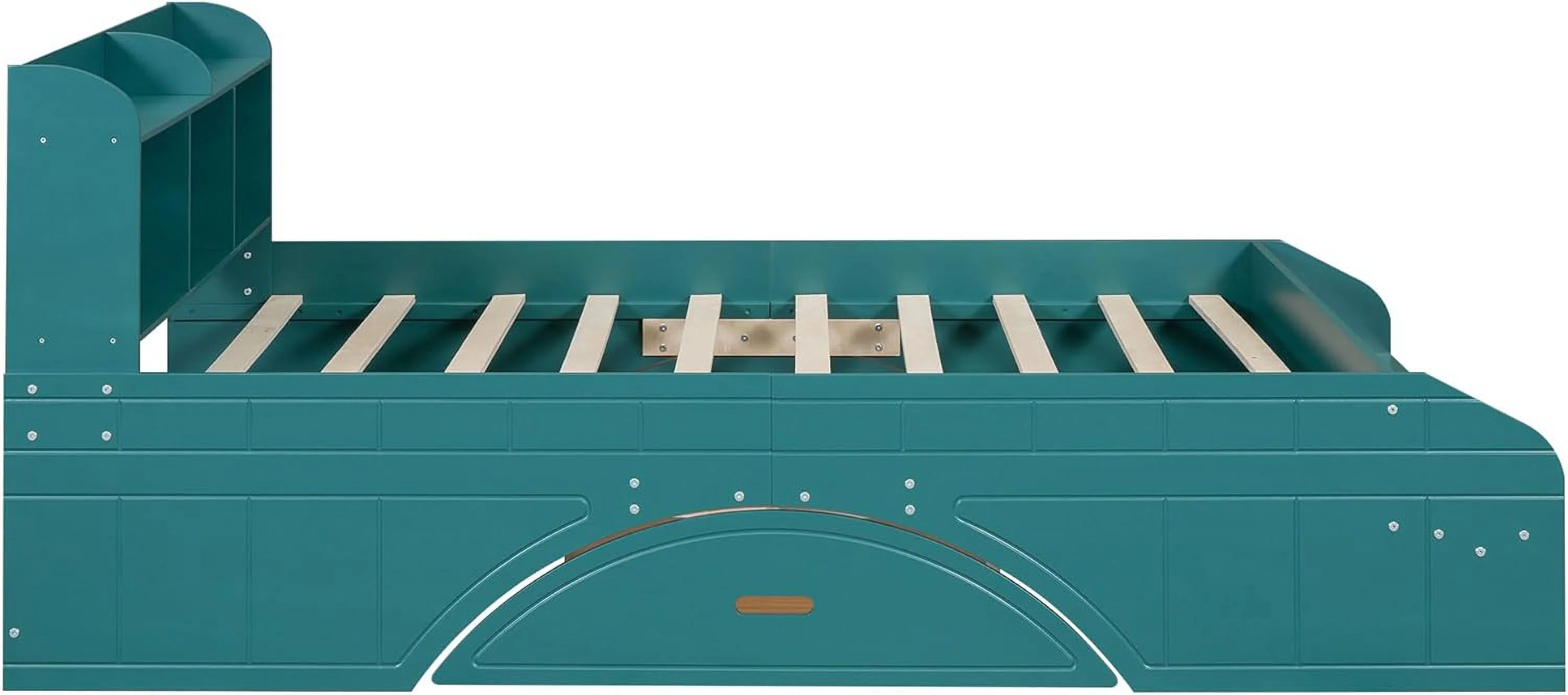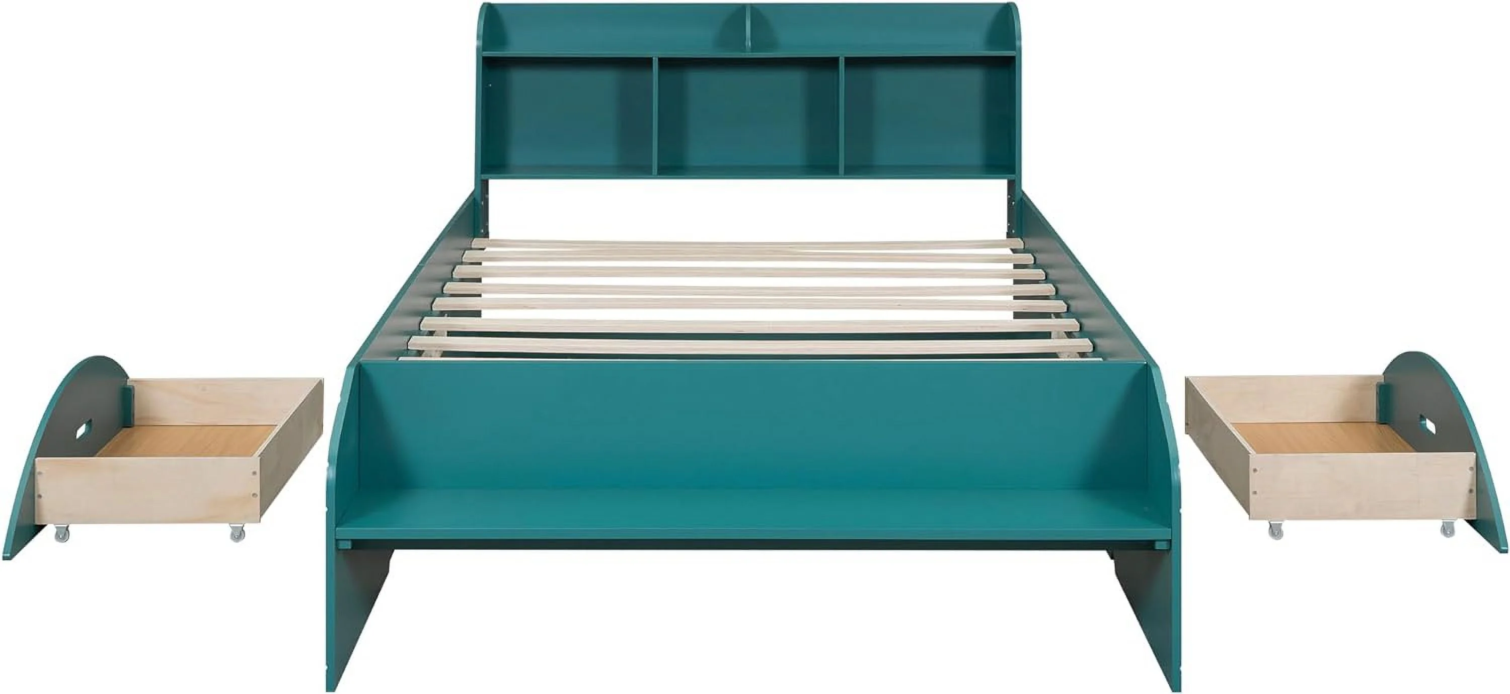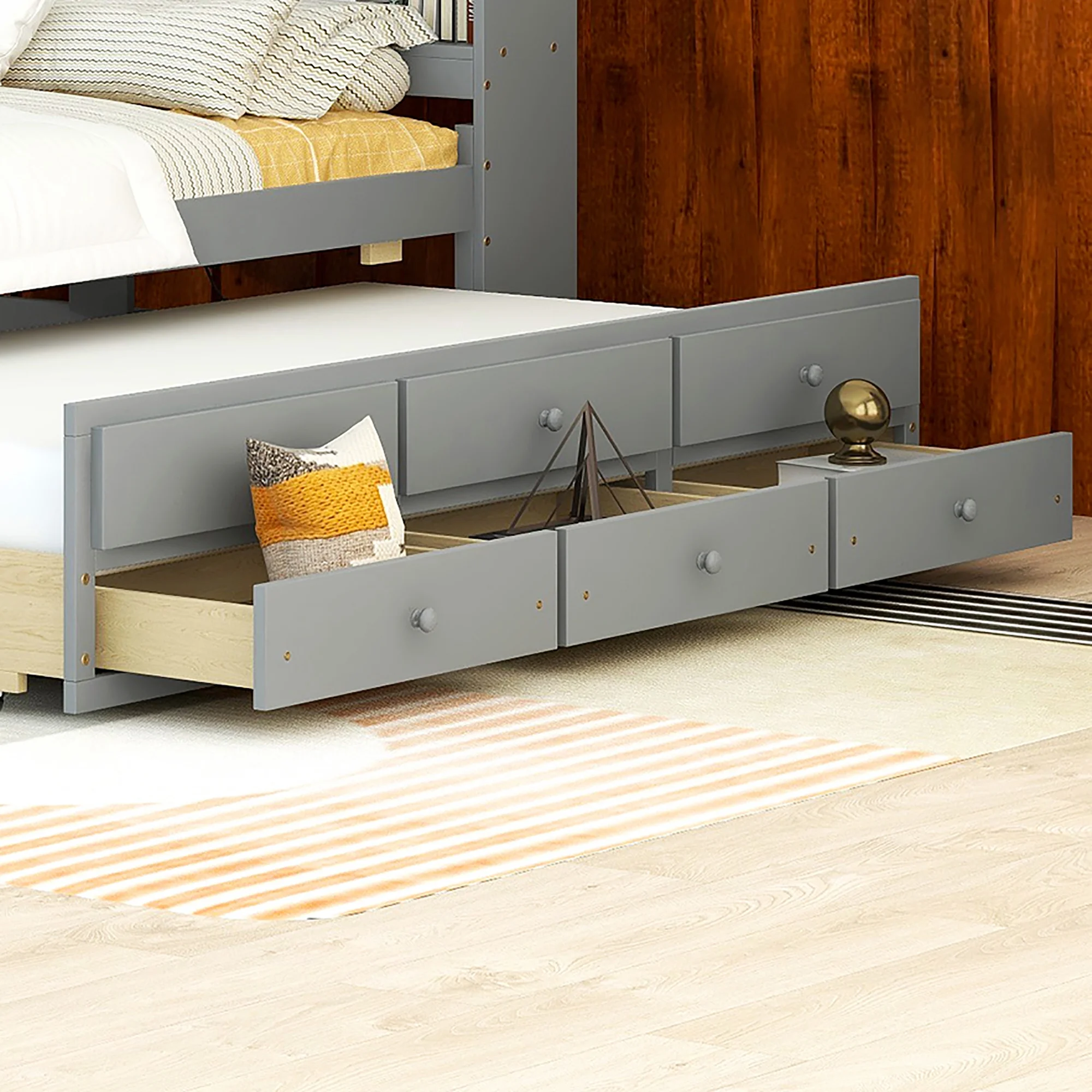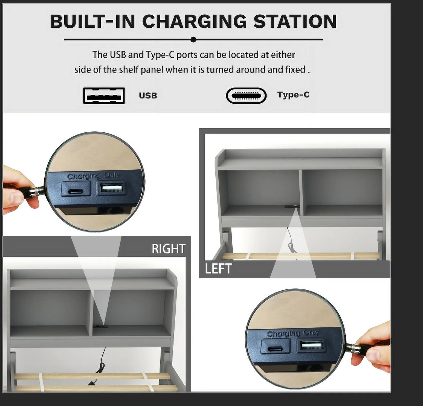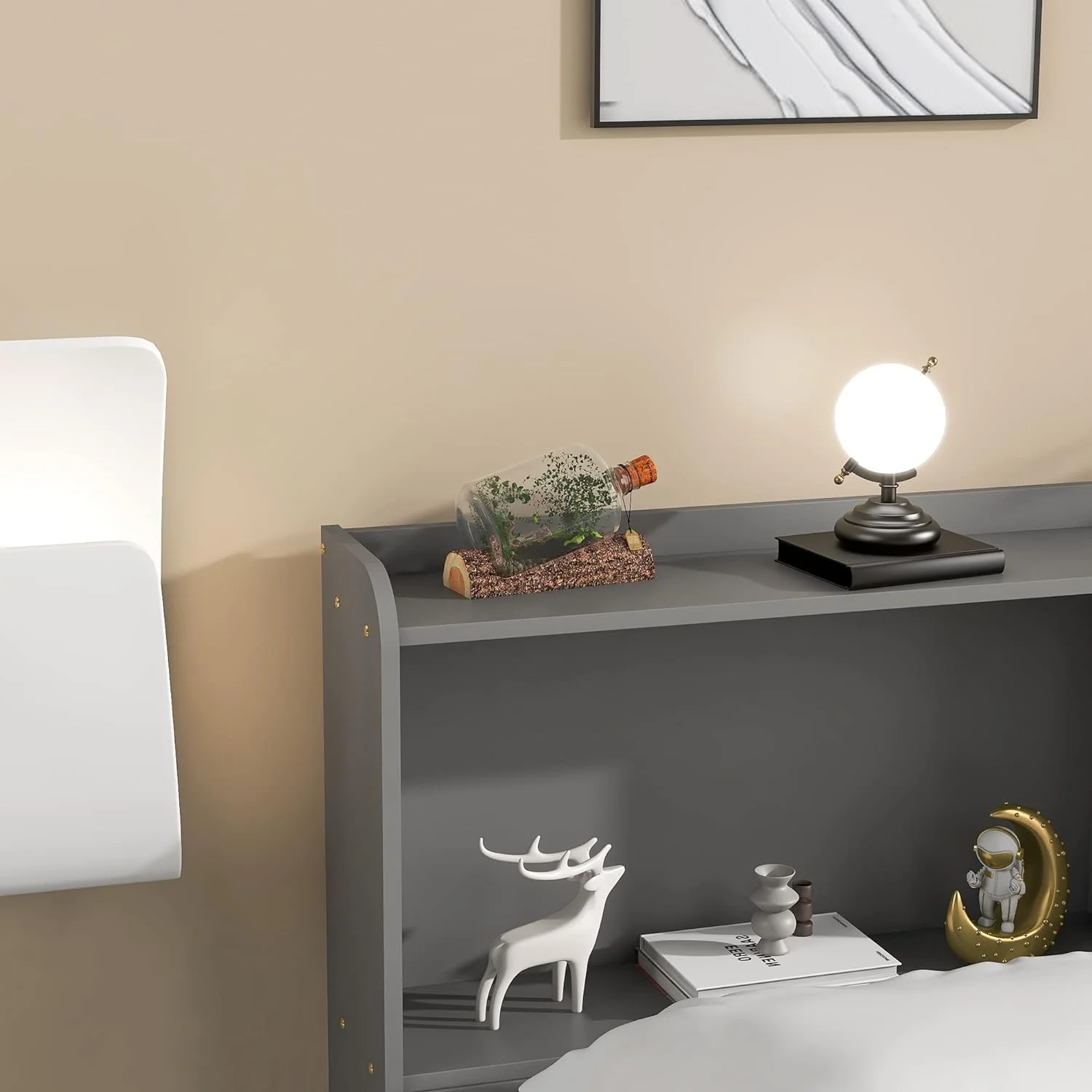 Full Size Bed with USB & Type-C Ports, Bookcase Headboard, Trundle & 3 Drawers, LED Light Strip, Easy Assembly,White