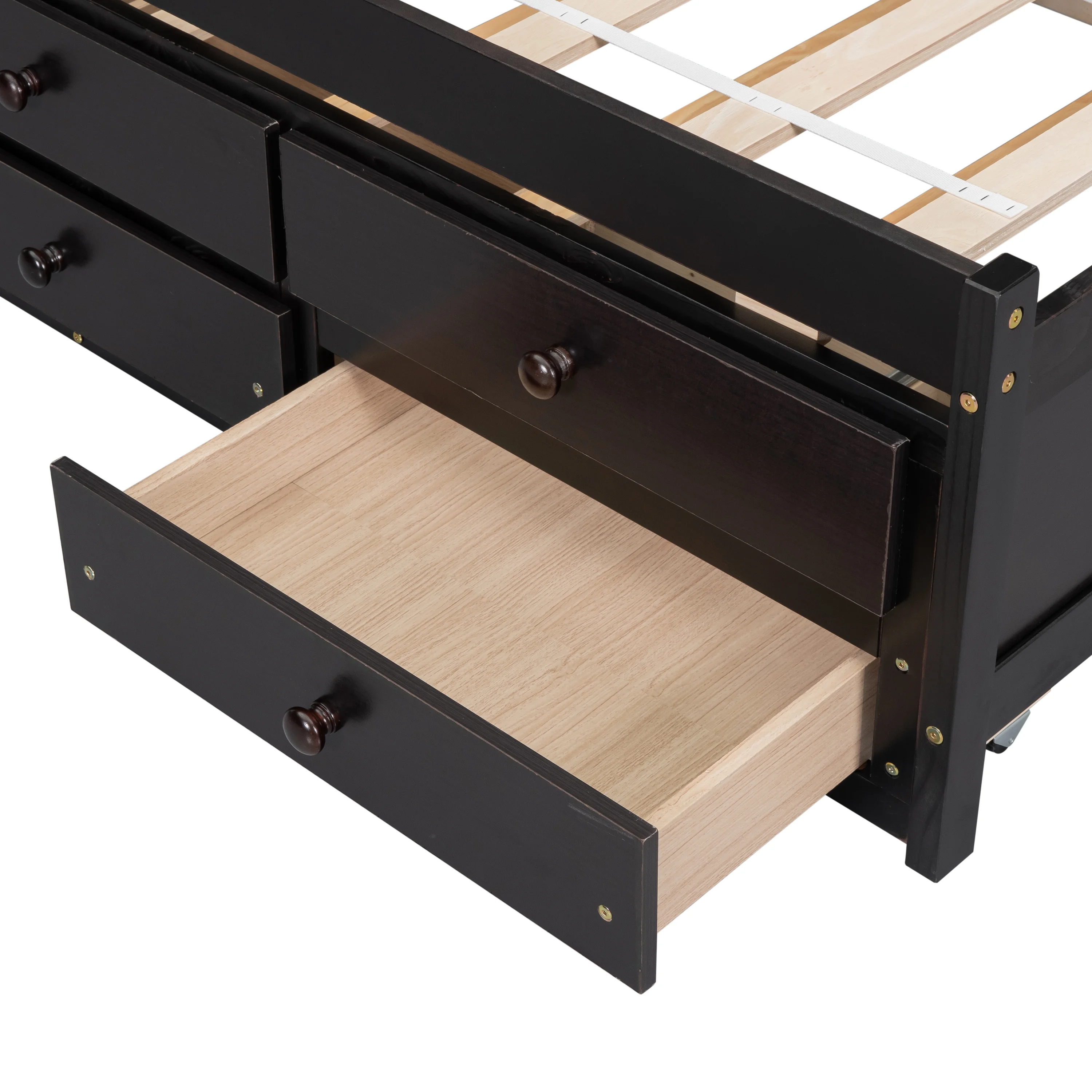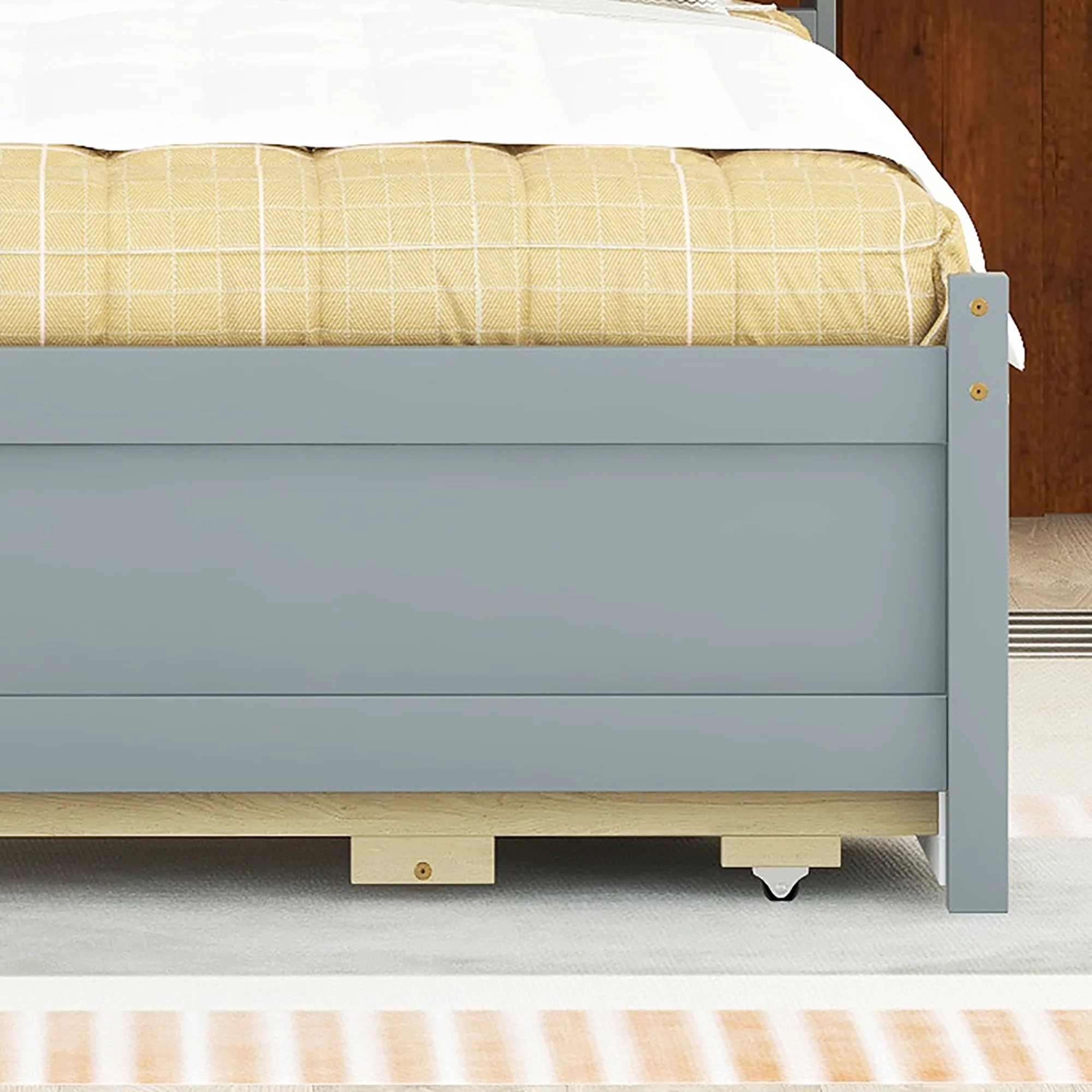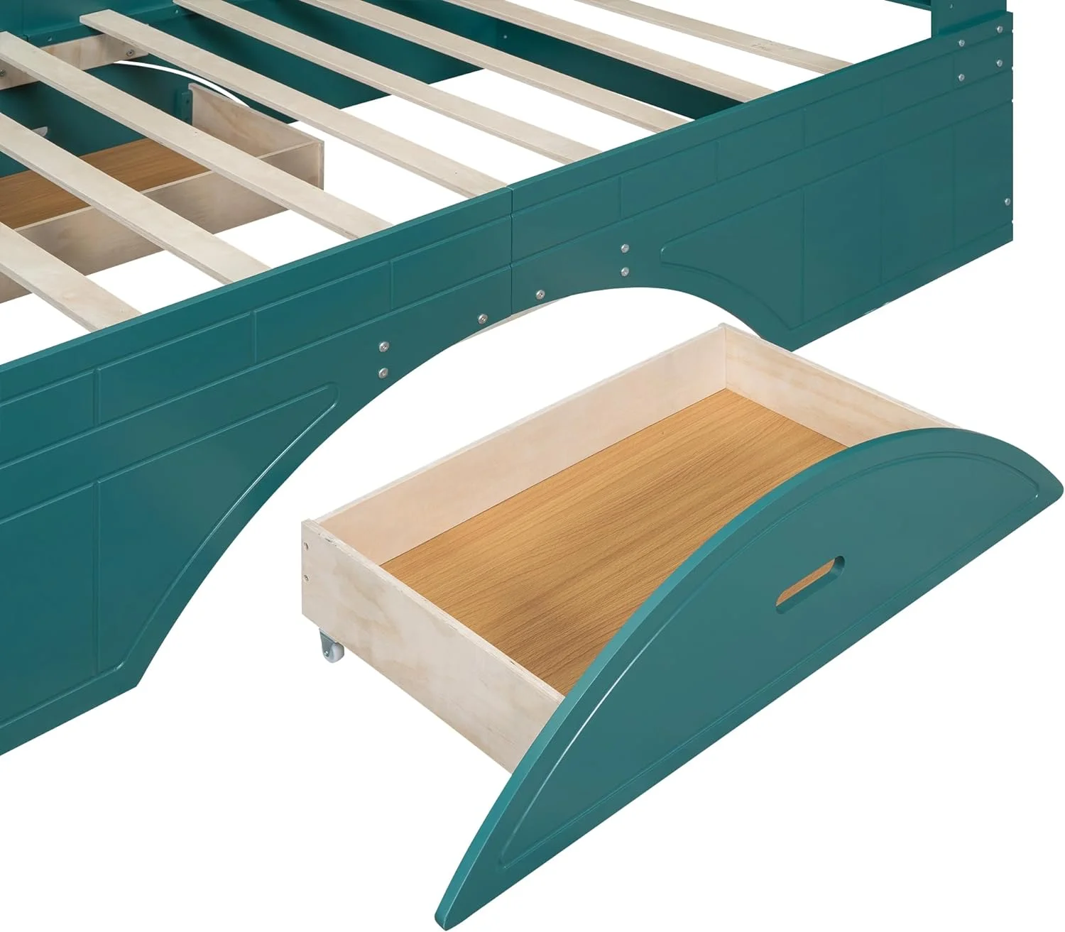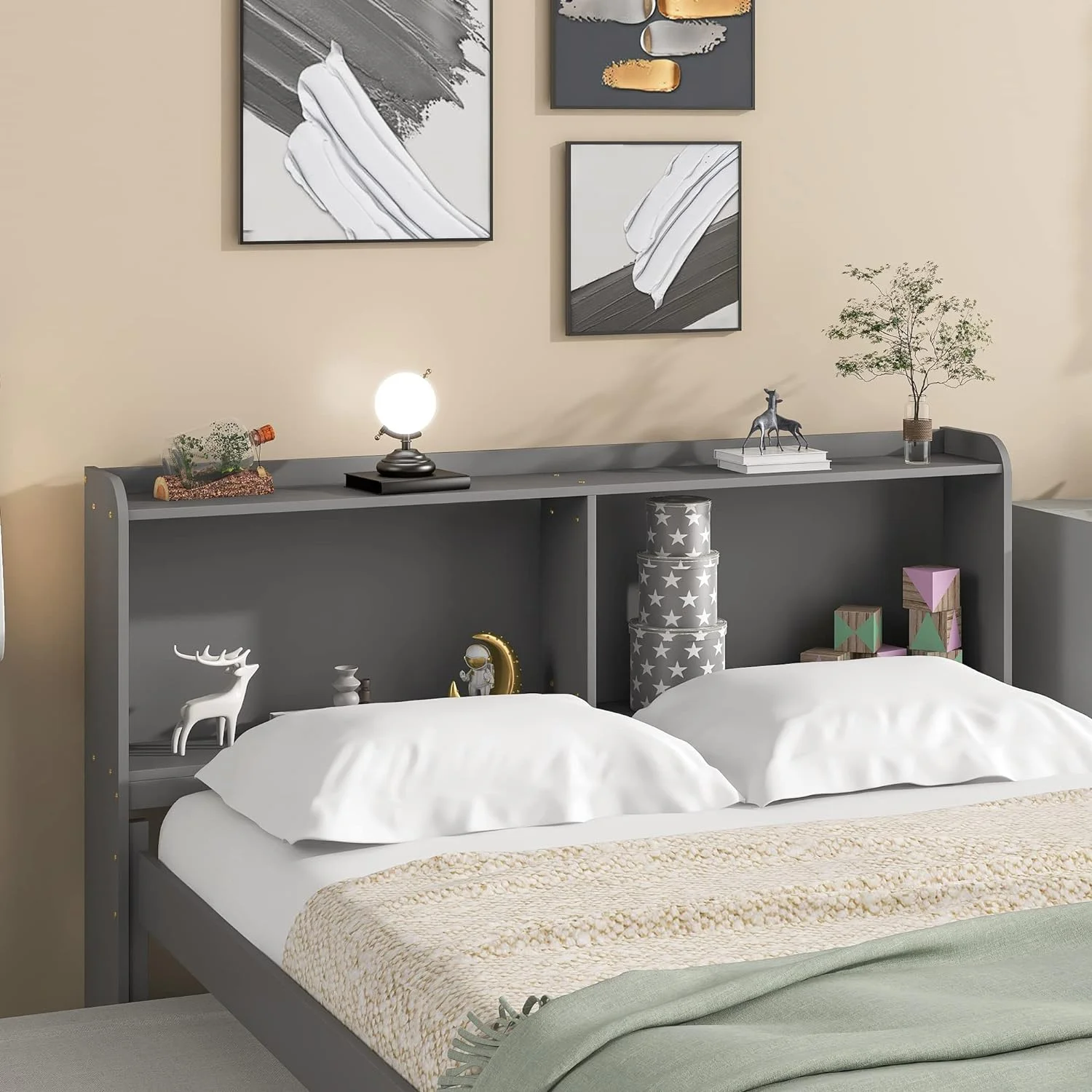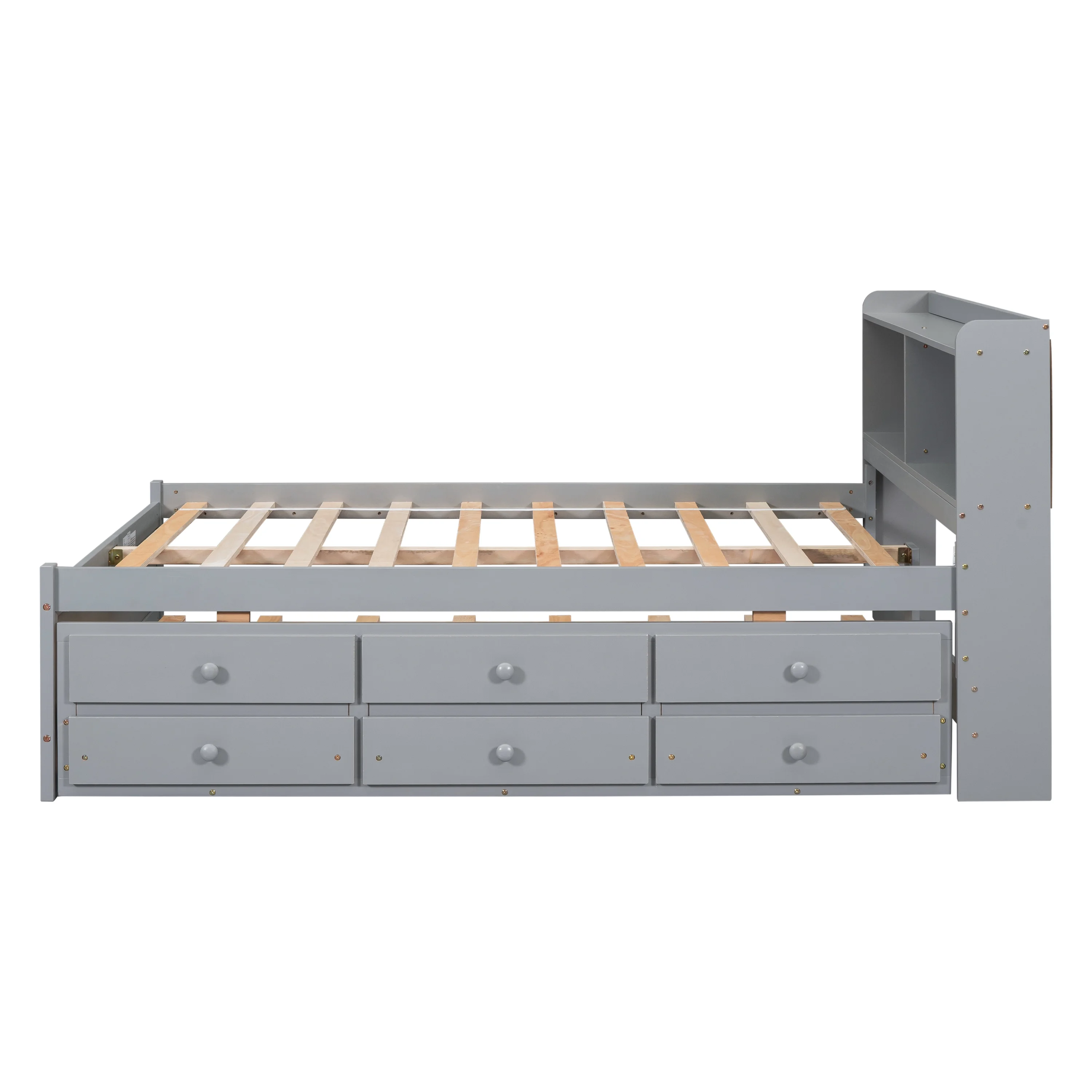 Full Size Bed with USB & Type-C Ports, Bookcase Headboard, Trundle & 3 Drawers, LED Light Strip, Easy Assembly,White