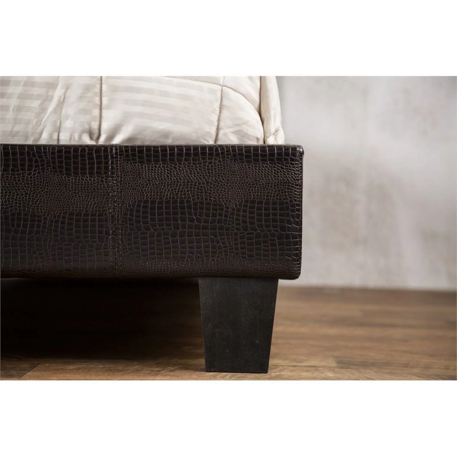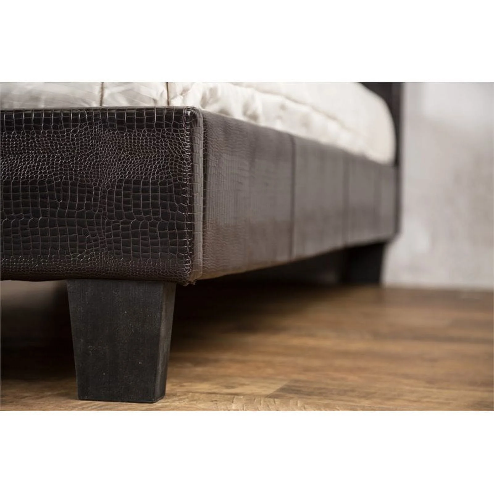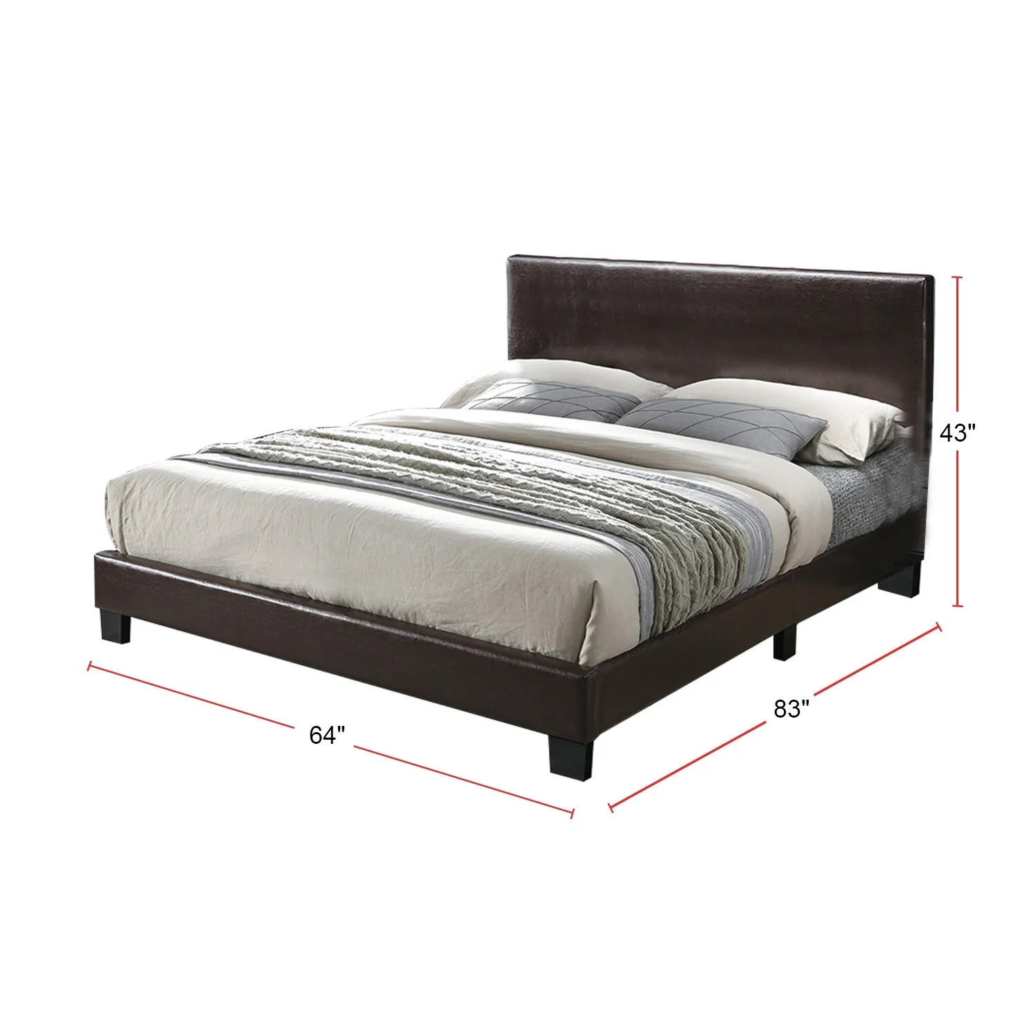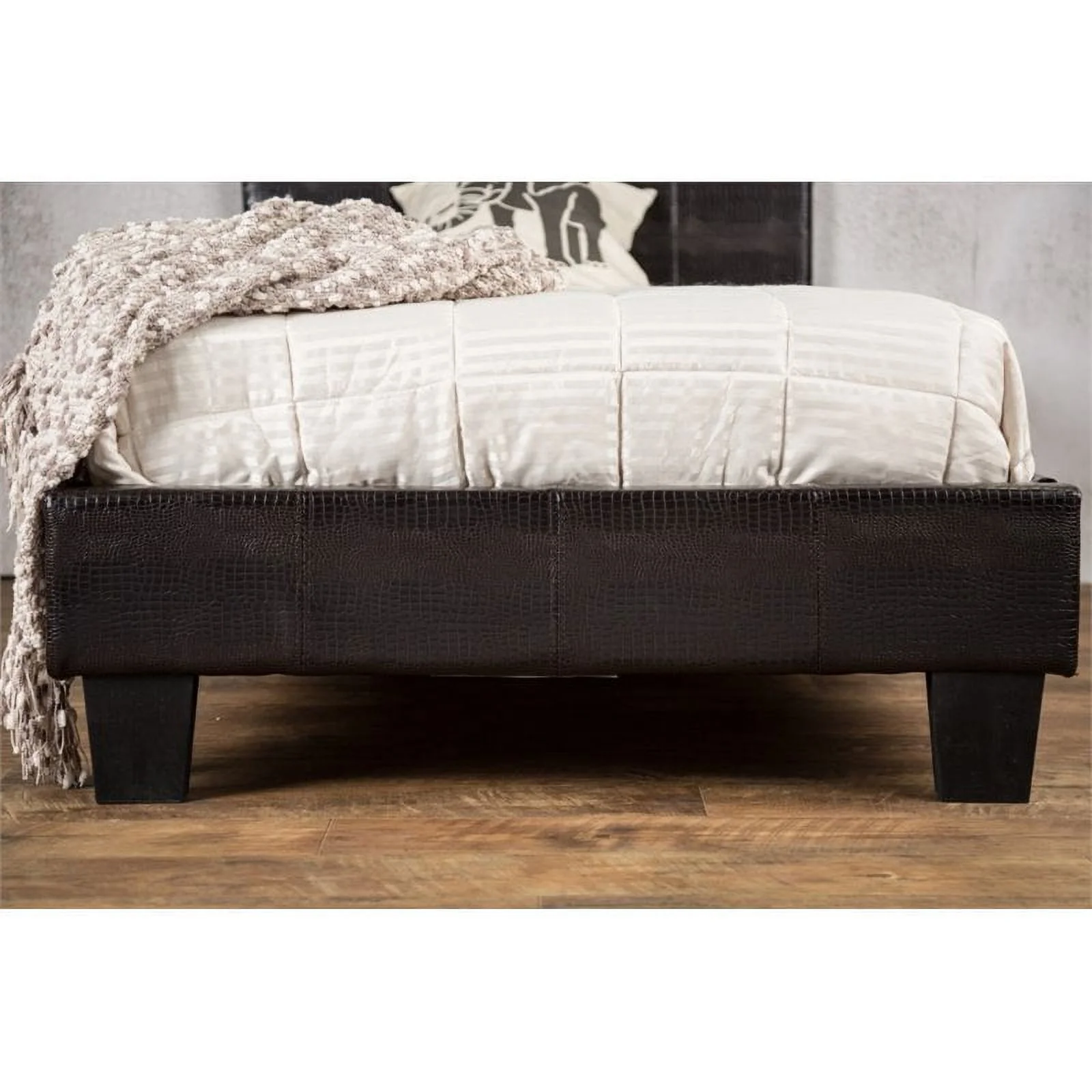 Bowery Hill Bed Queen Platform Bedroom Frame Upholstered Pu Leather Look Brown