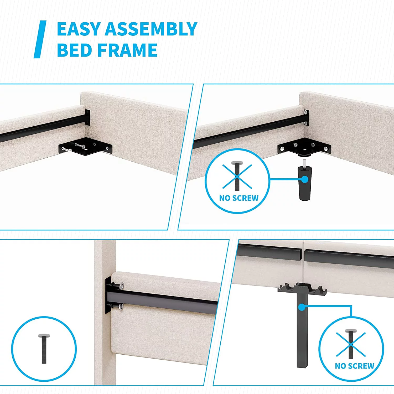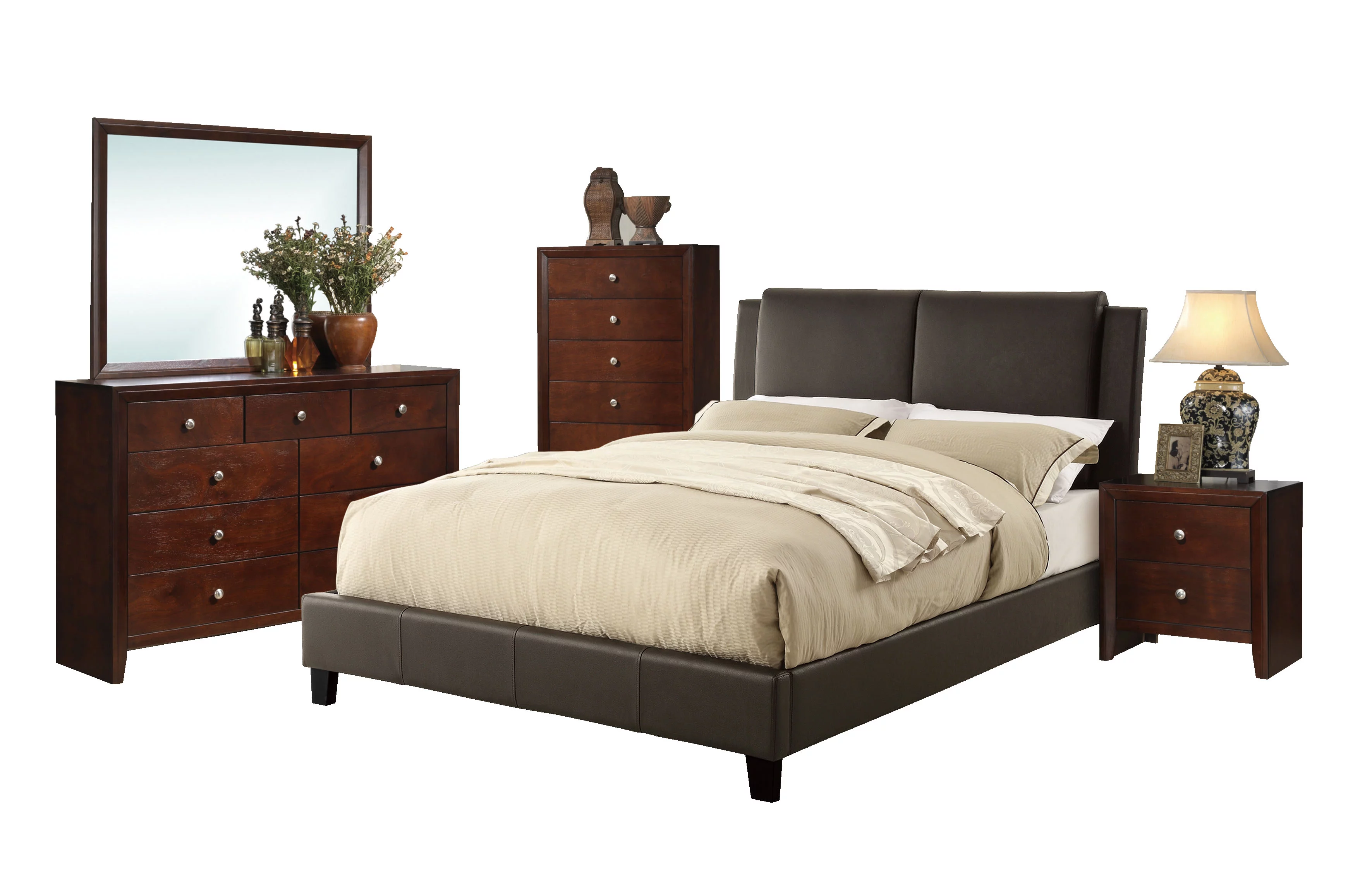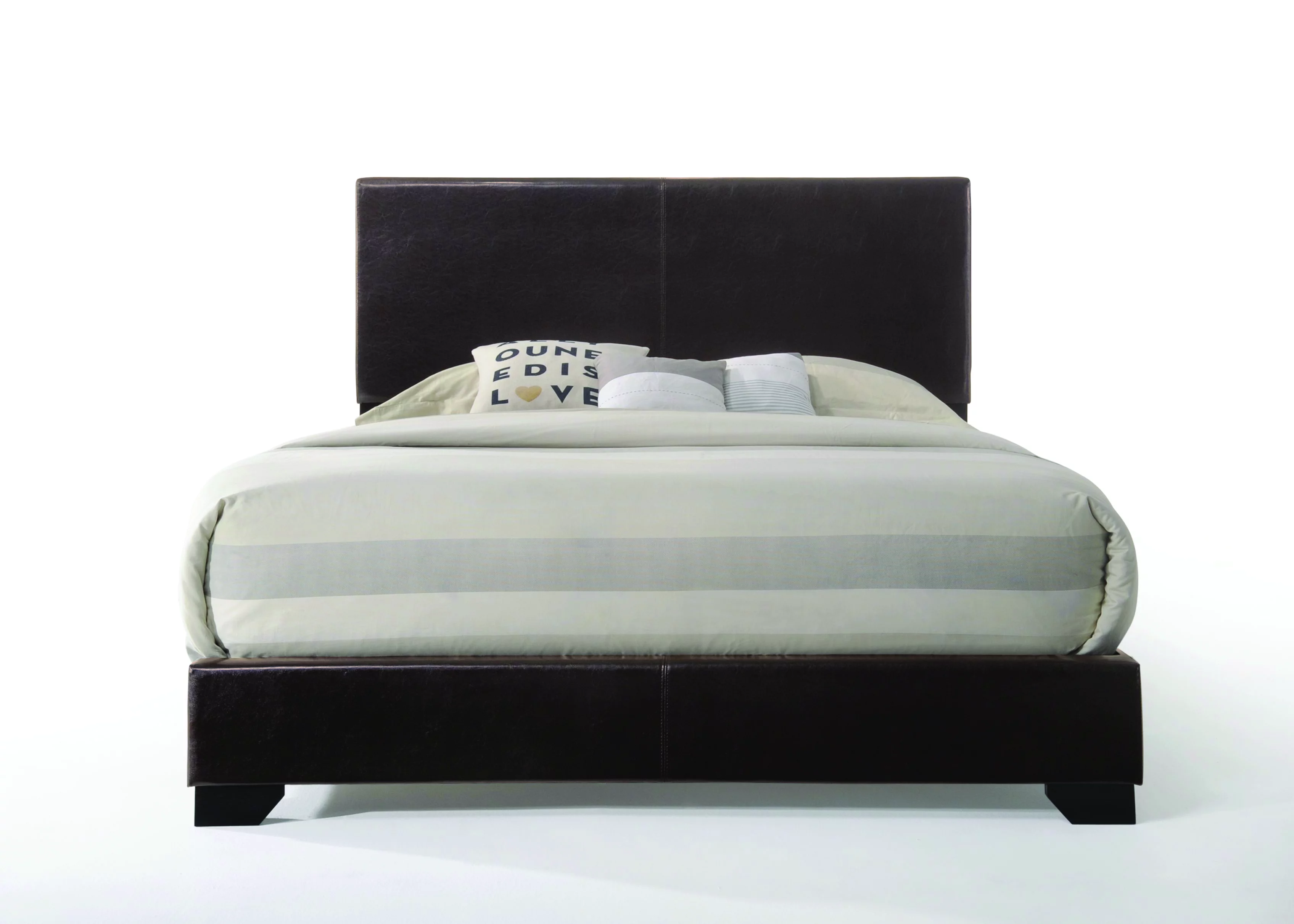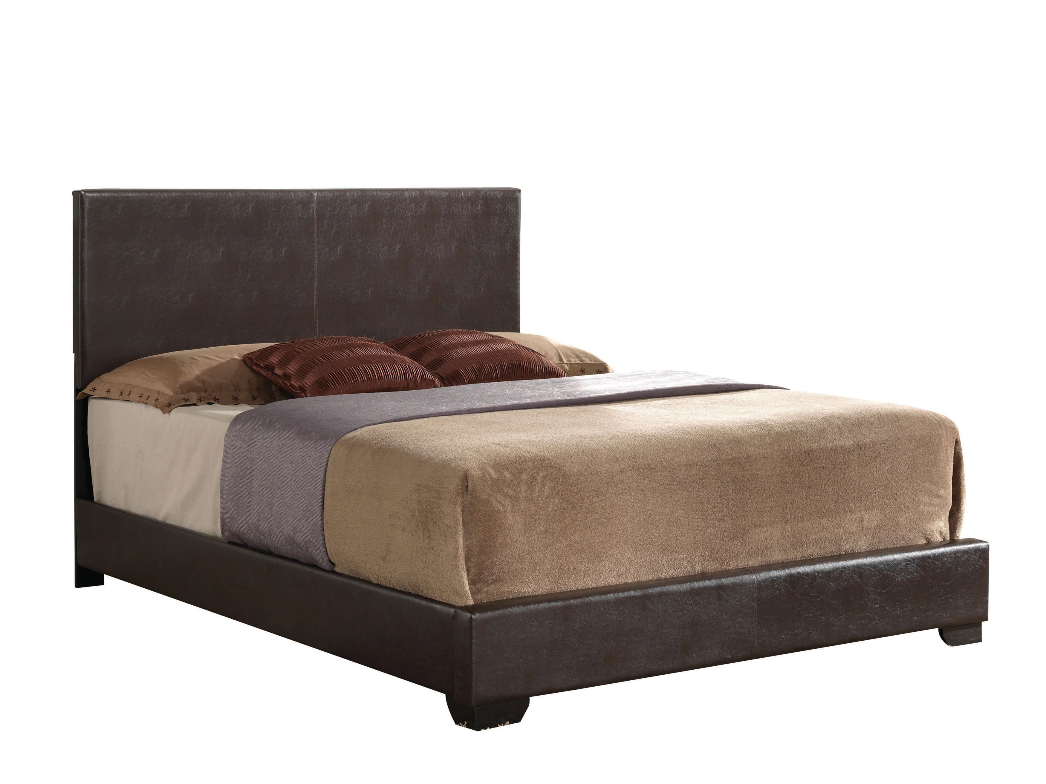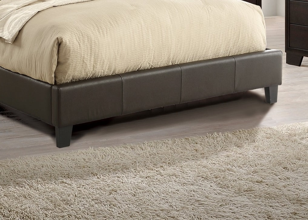 Bowery Hill Bed Queen Platform Bedroom Frame Upholstered Pu Leather Look Brown