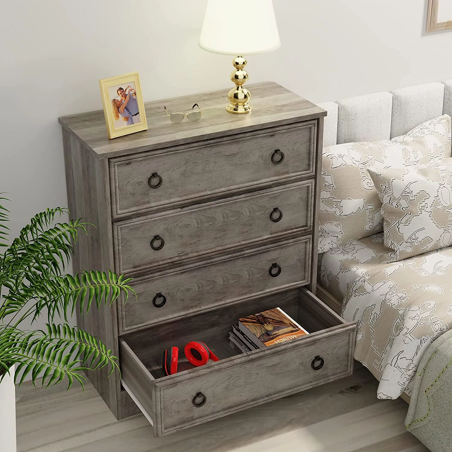 Duerer Gray Drawer Dresser, Modern Chest Organizer with 4 Drawers for Bedroom Living Room Hallway, Gray Wash