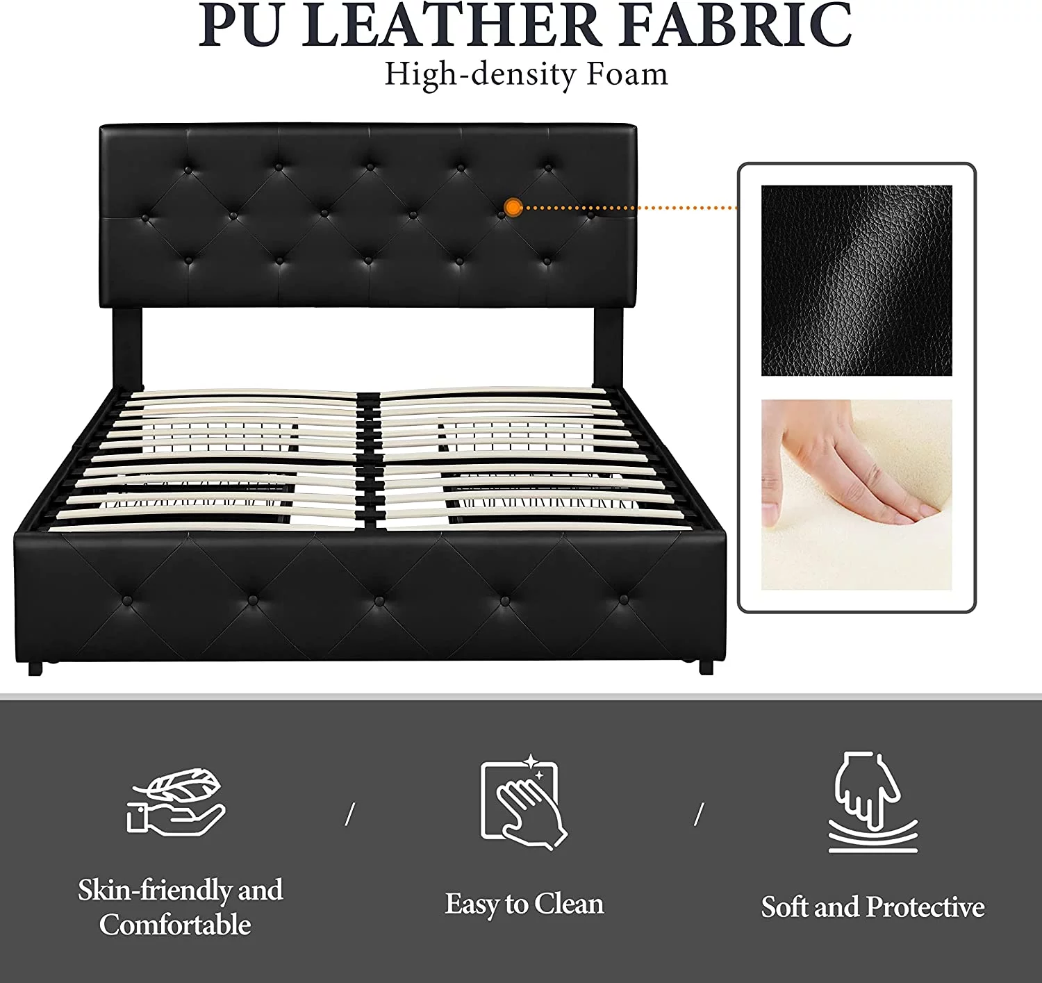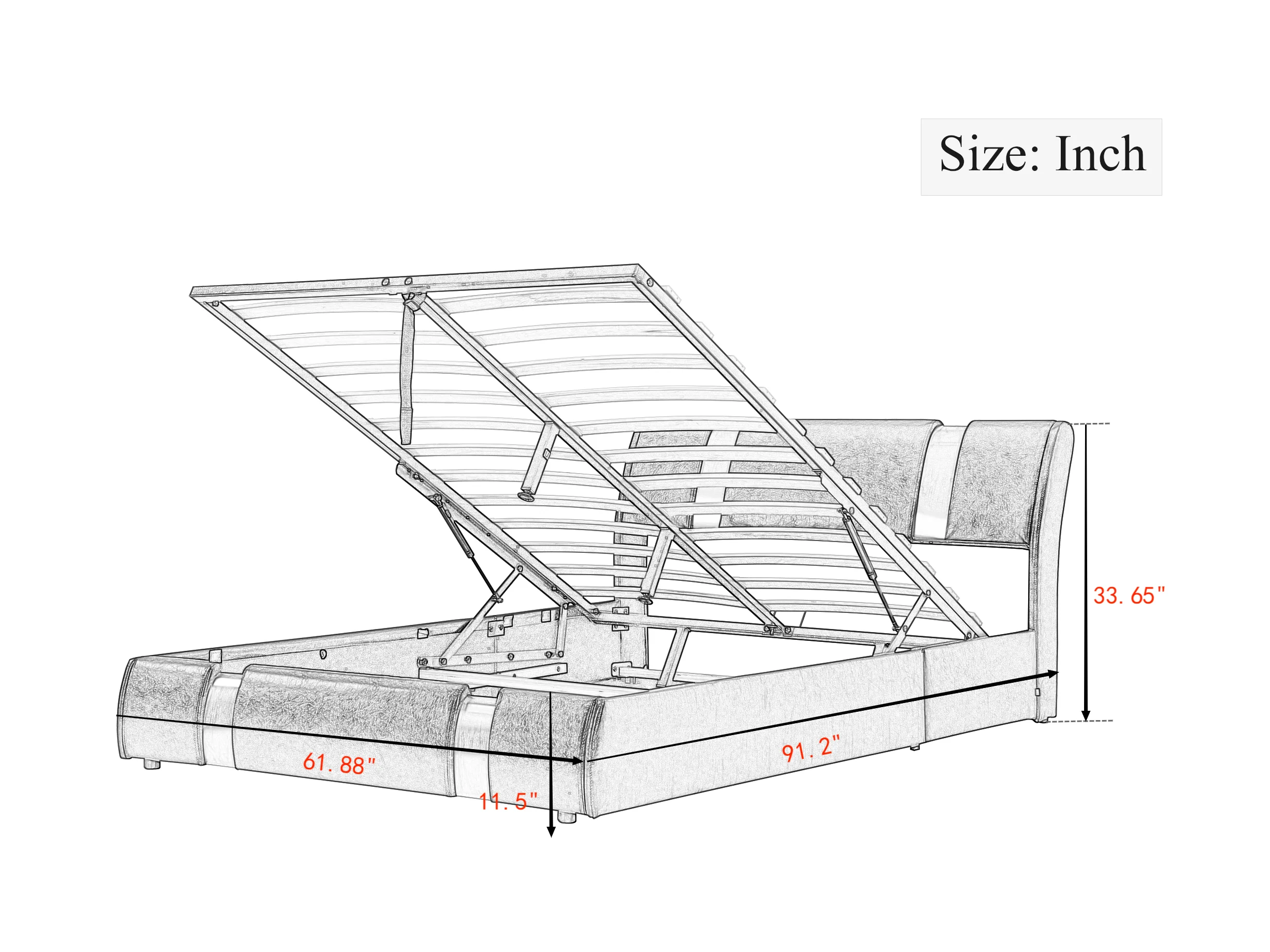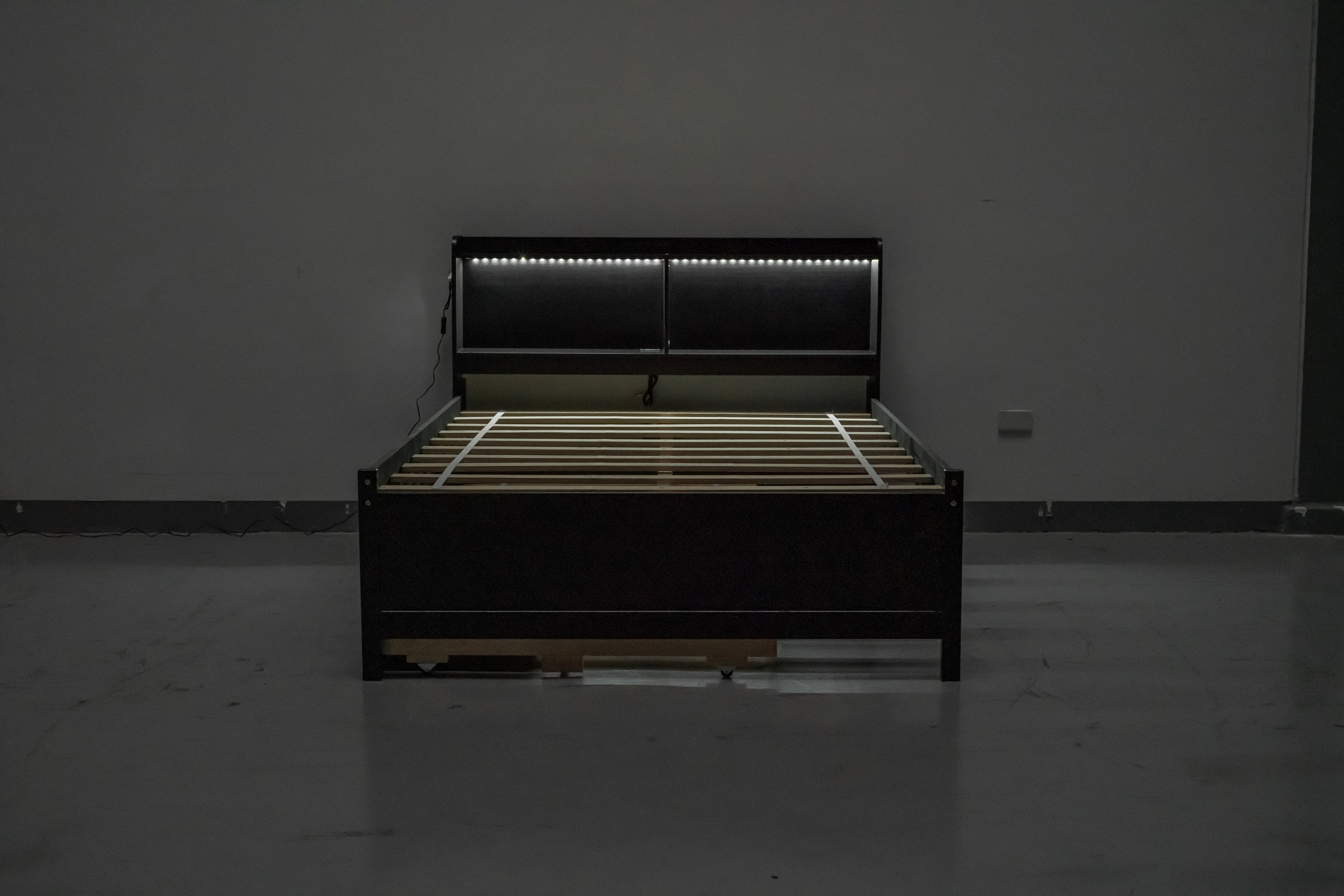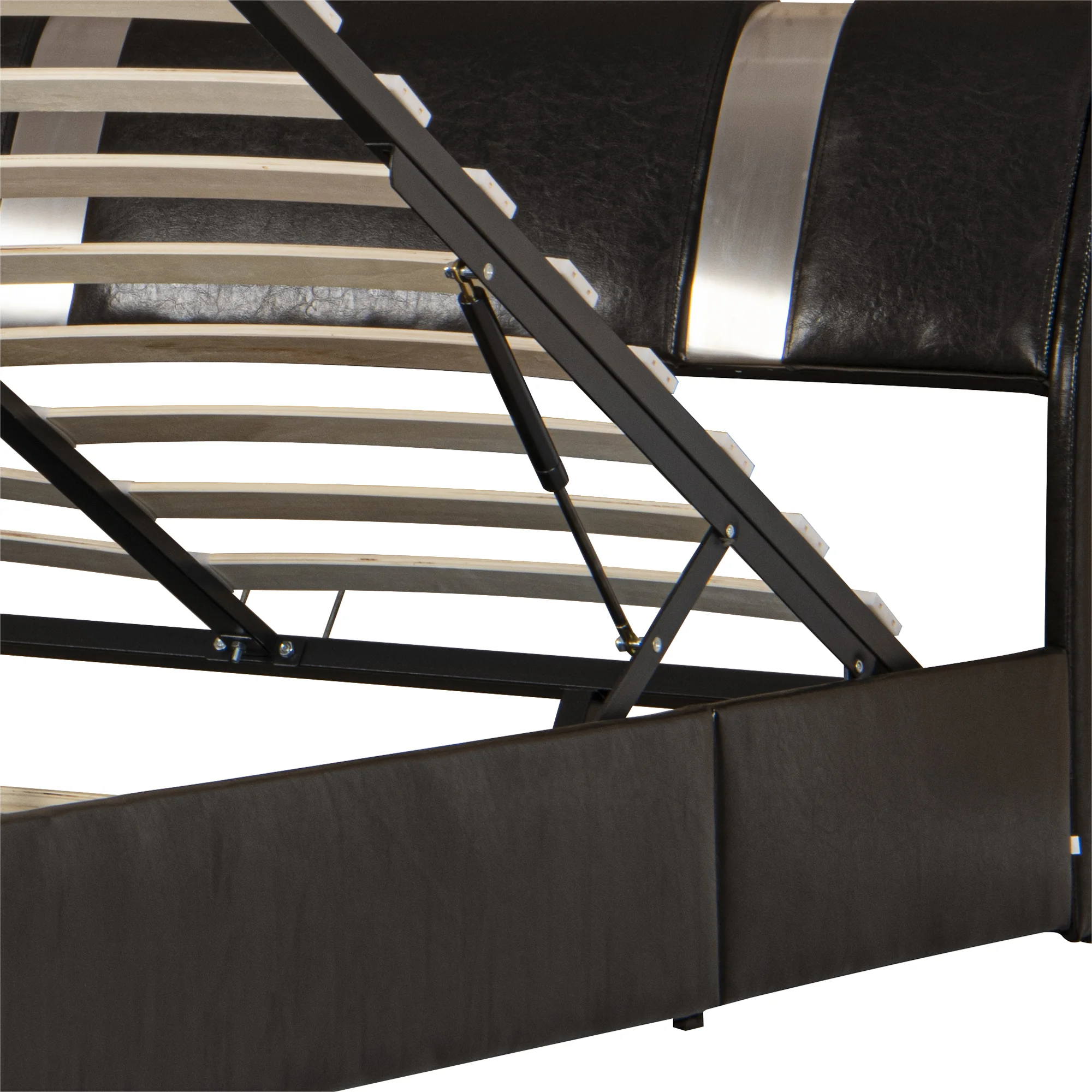 Brown Queen Size Faux Leather Upholstered Platform Bed with Lift Up Storage