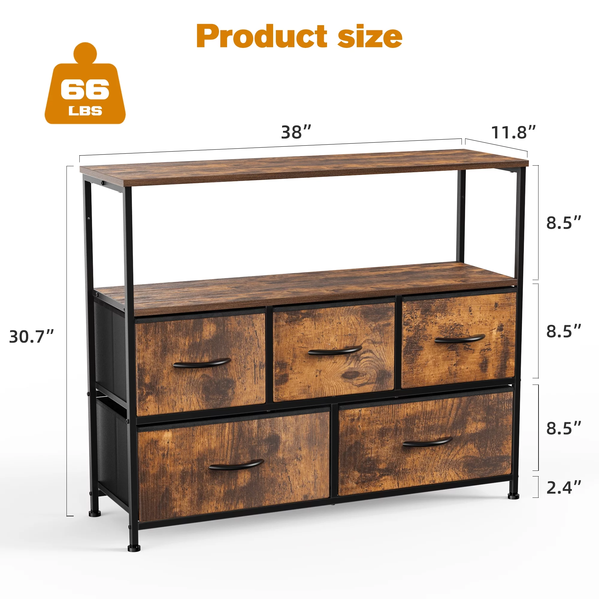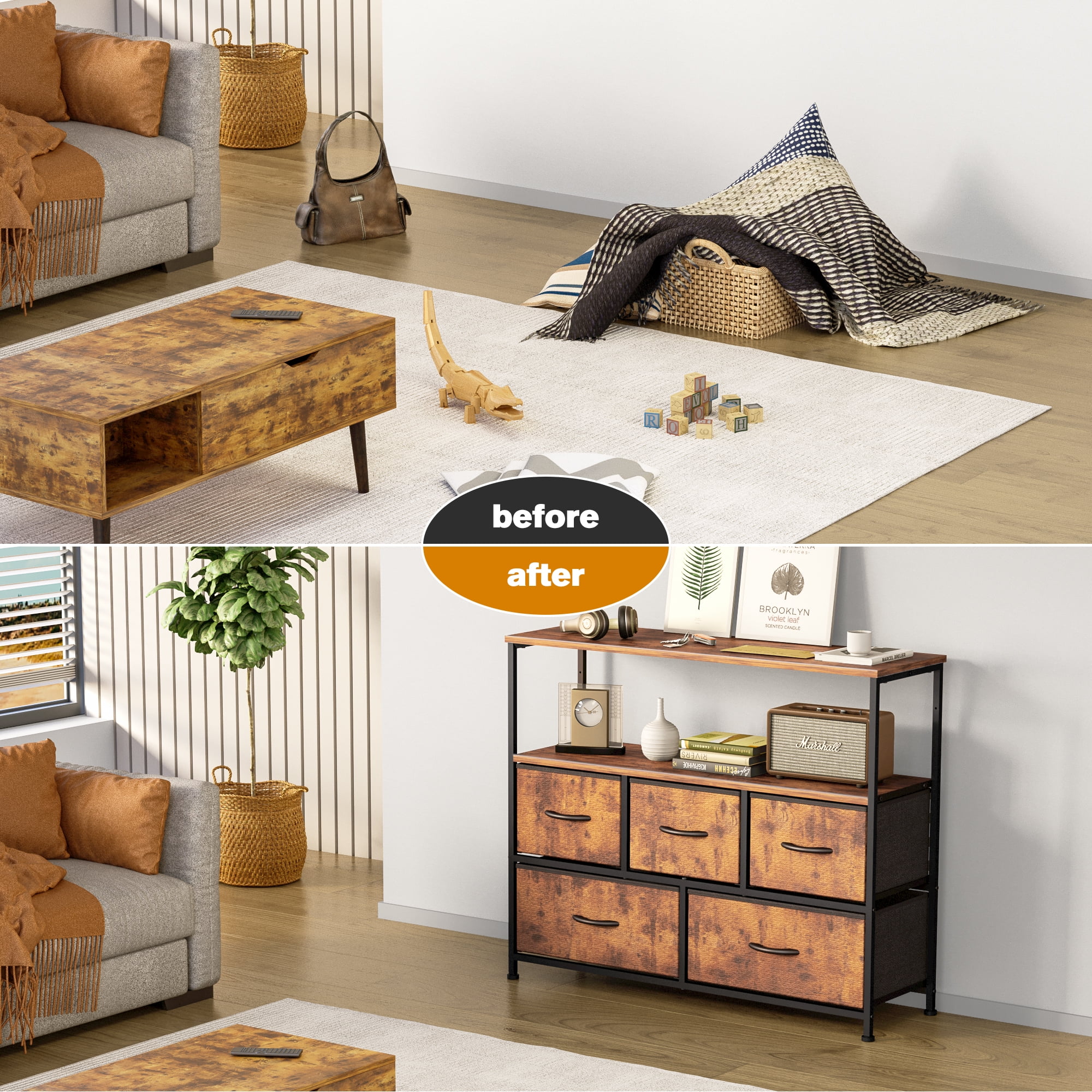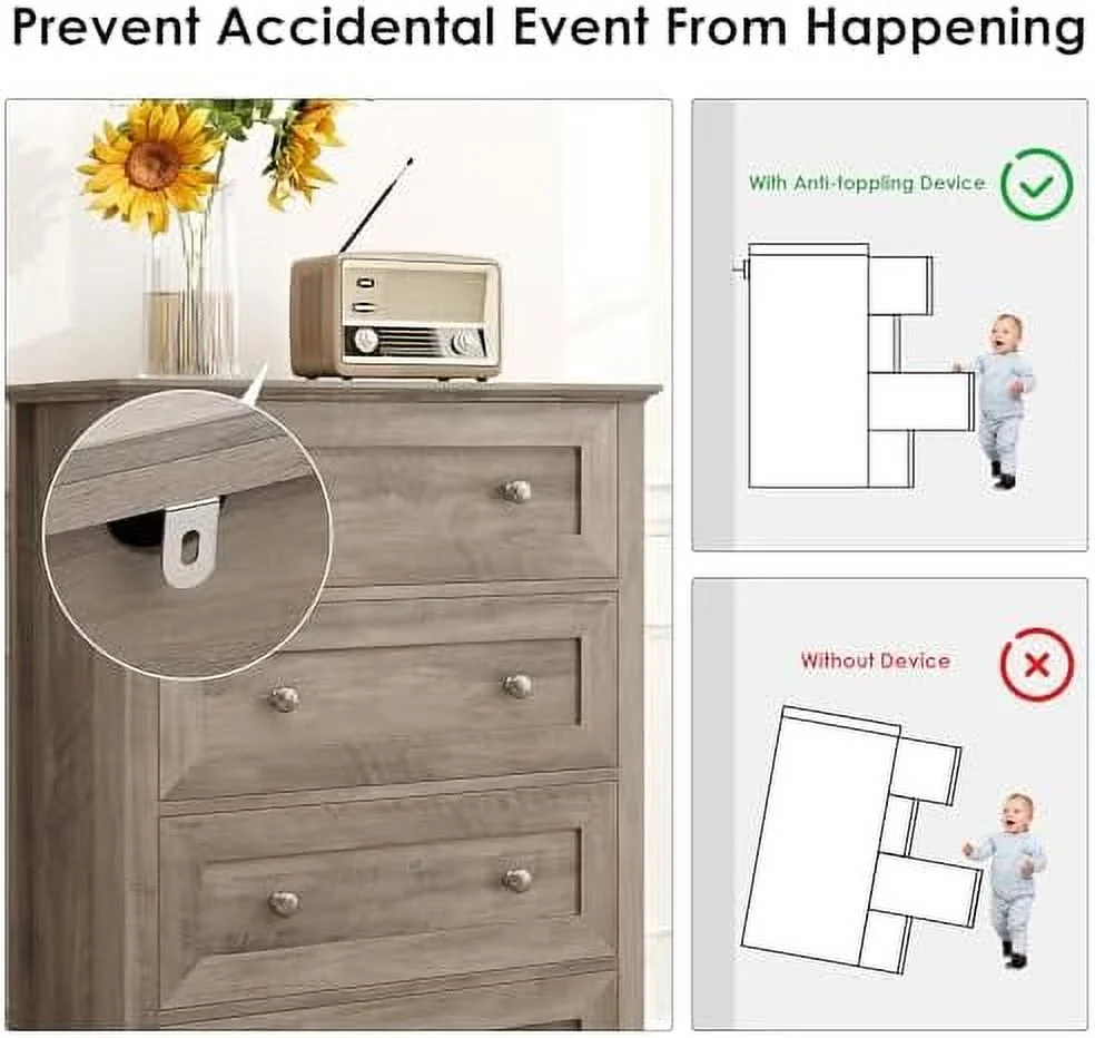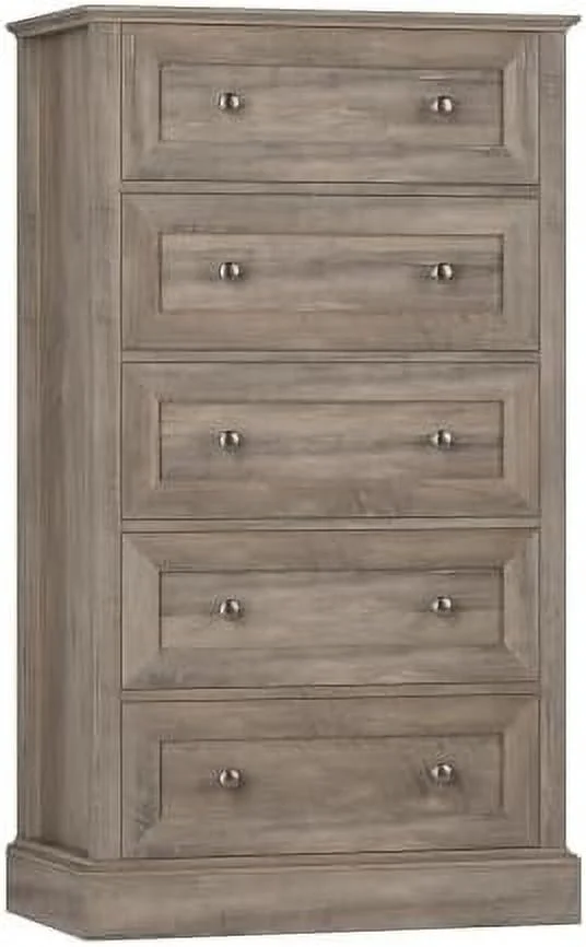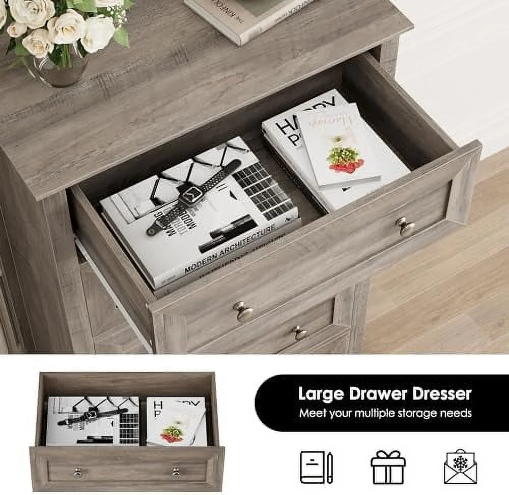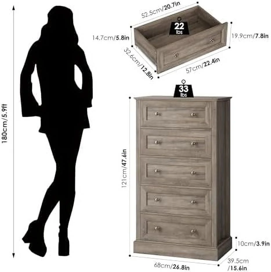 5 Drawer Dresser Tall Dresser with 5 Drawers Chest of Drawers Cabinet Wood Dresser for Hallway Living Room Wash Gray