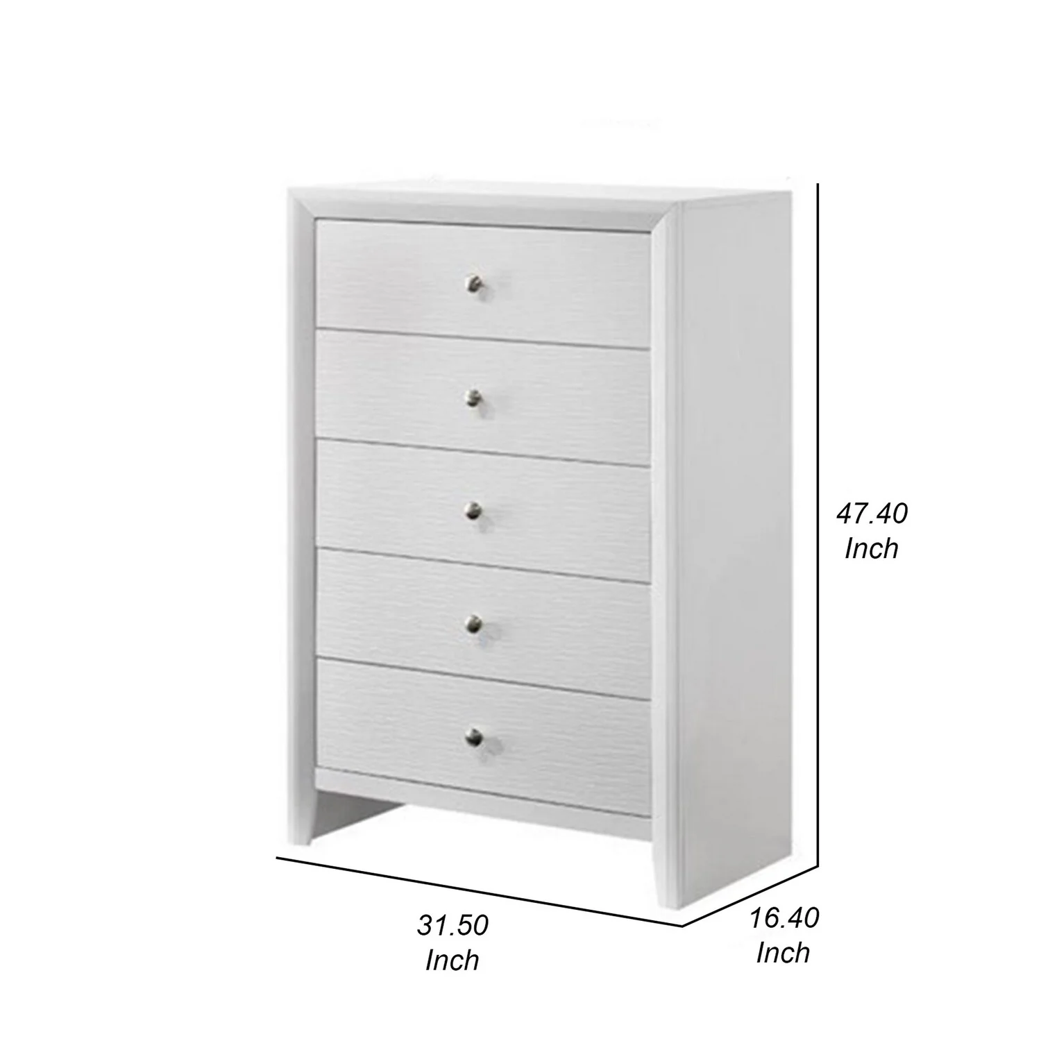 Benjara Eve 47 Inch Tall Dresser Chest, 5 Drawers with Metal Knobs, White Wood