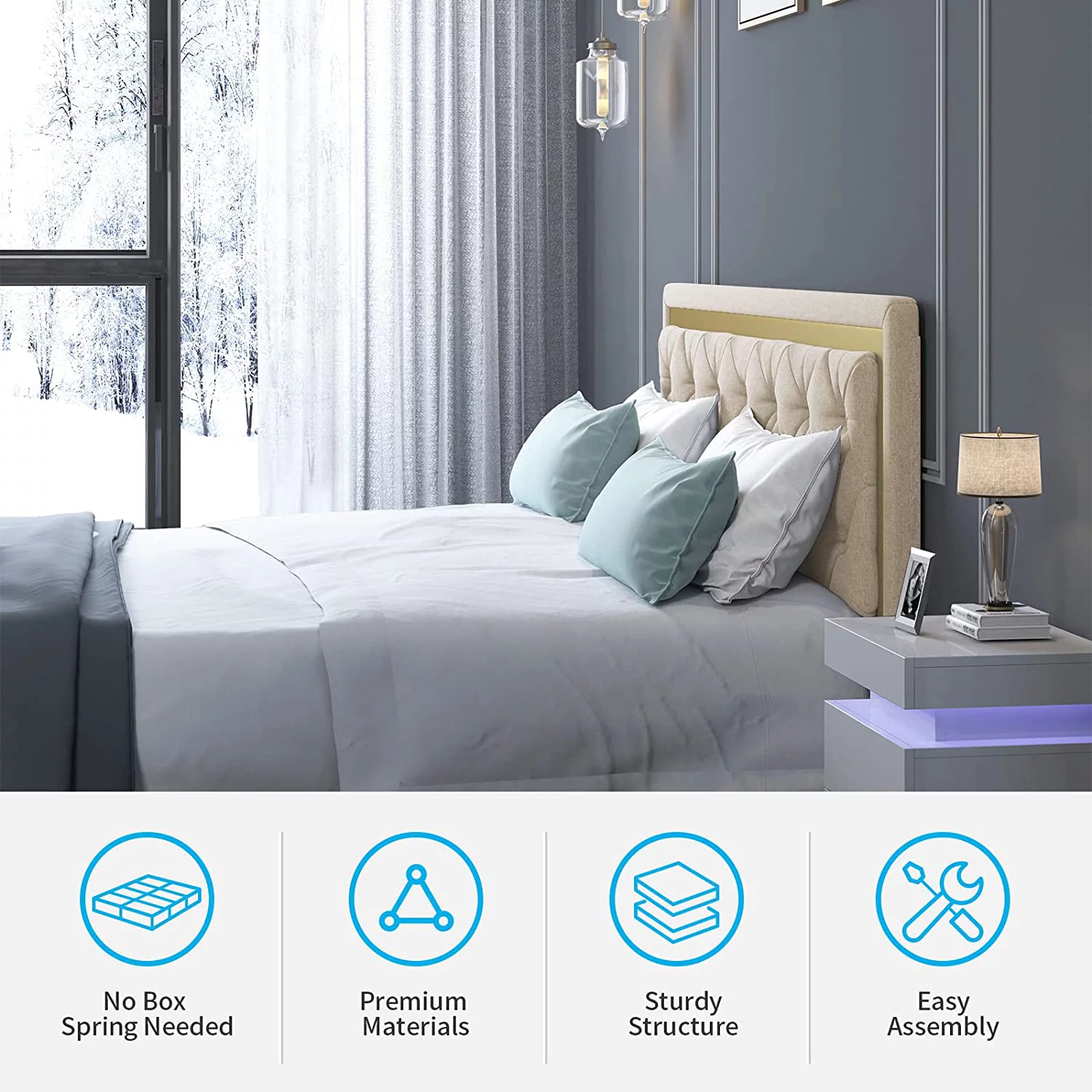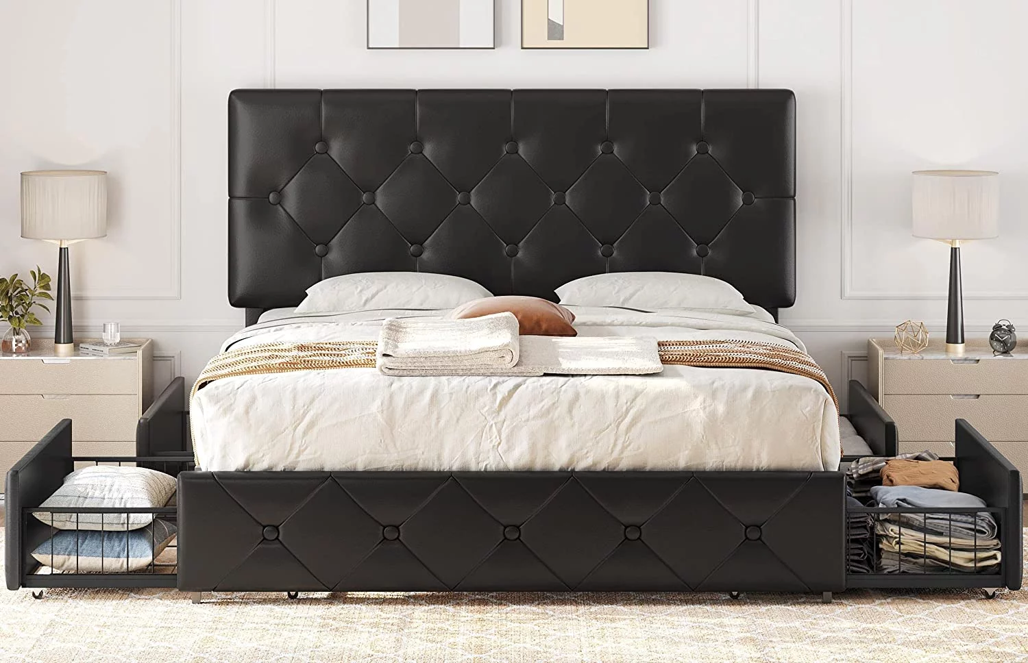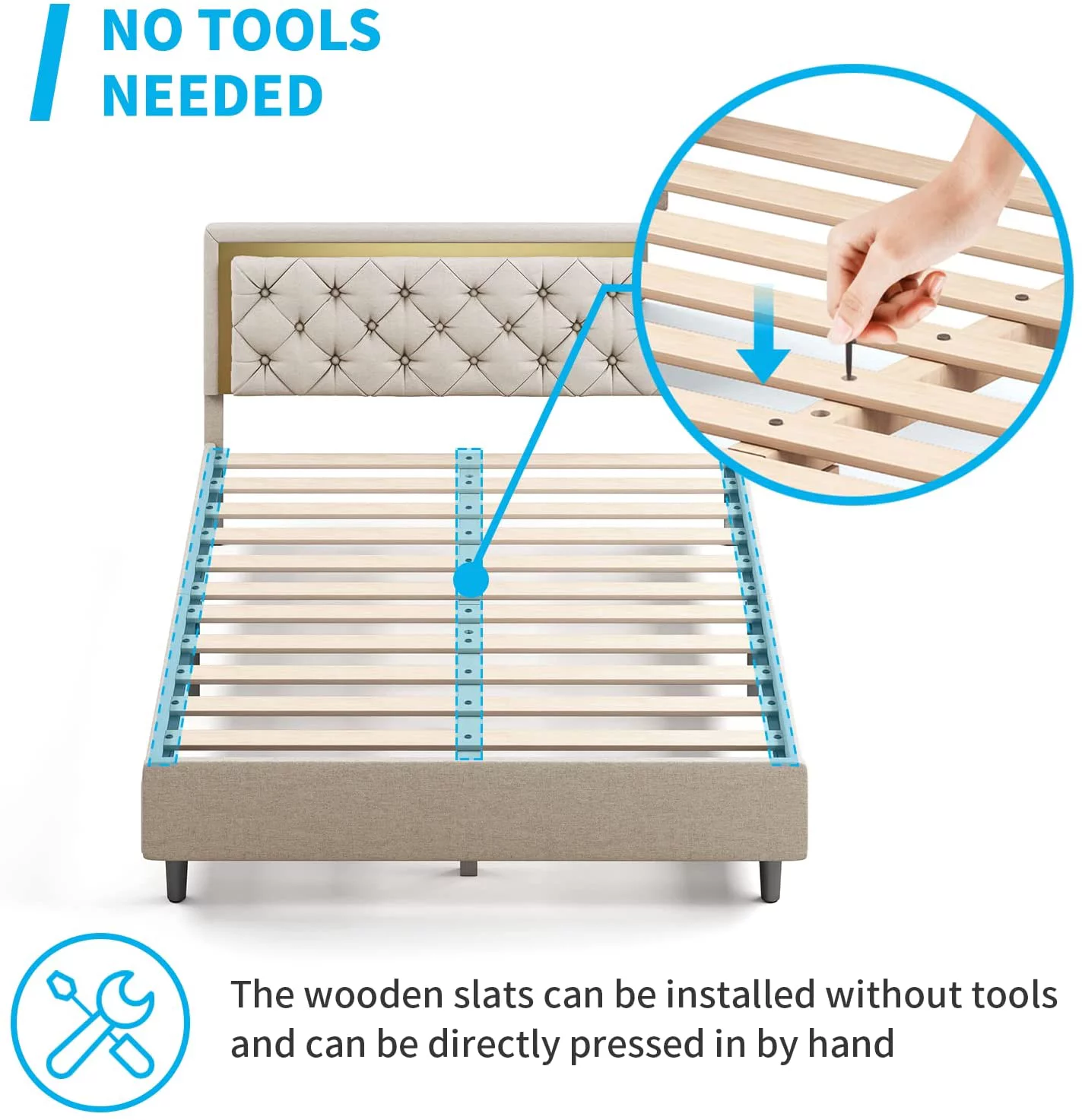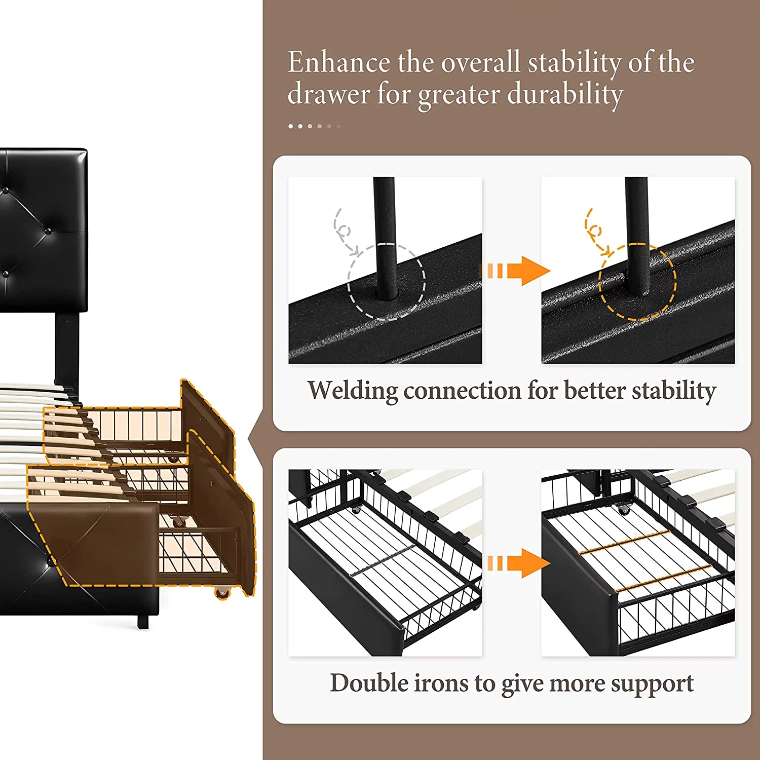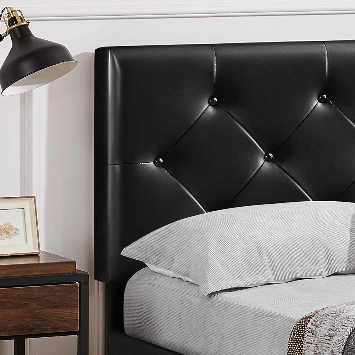 ViscoLogic LUCA Platform Bed with Faux Leather Headboard, Footboard, and Rails (Brown)