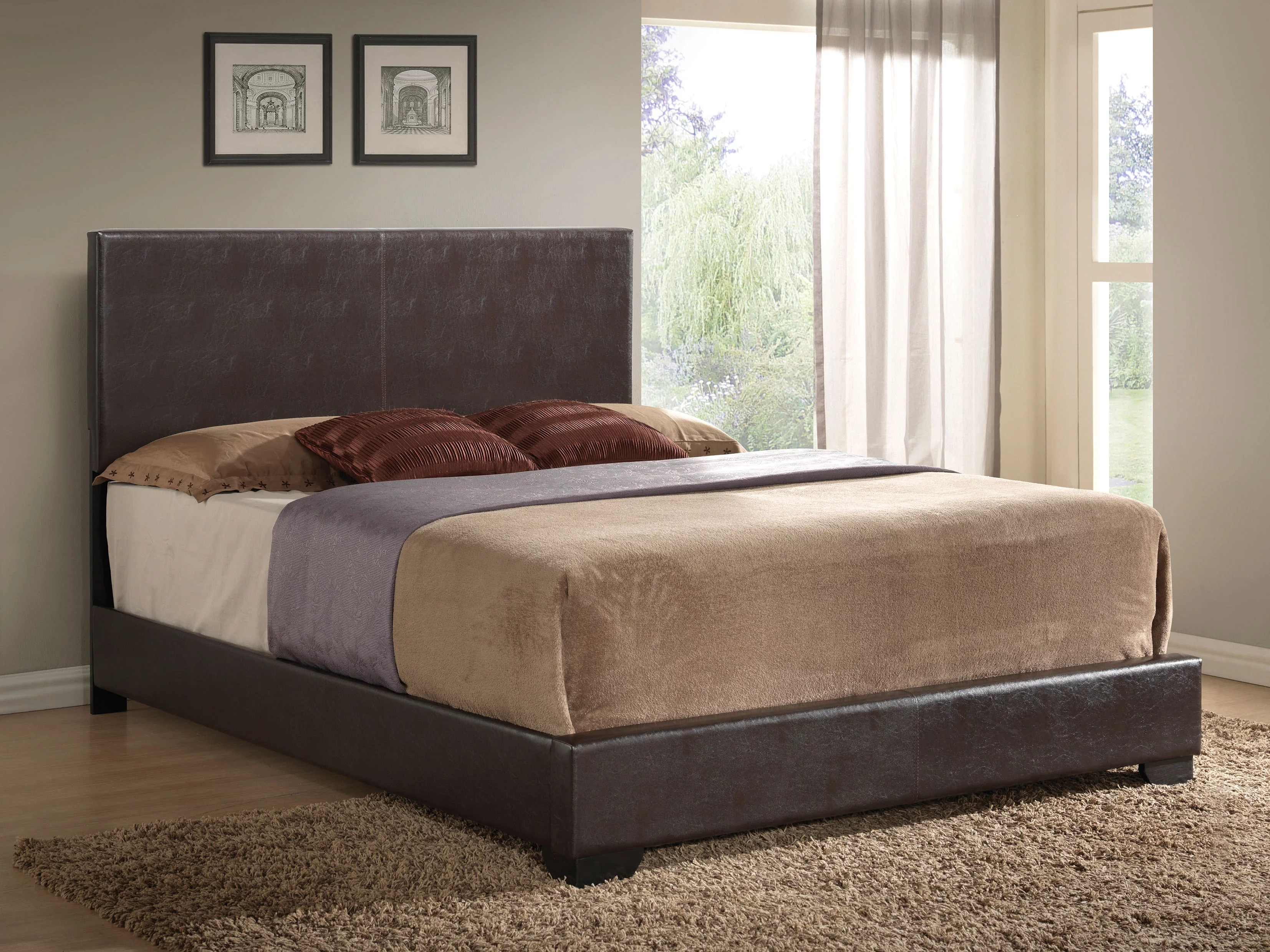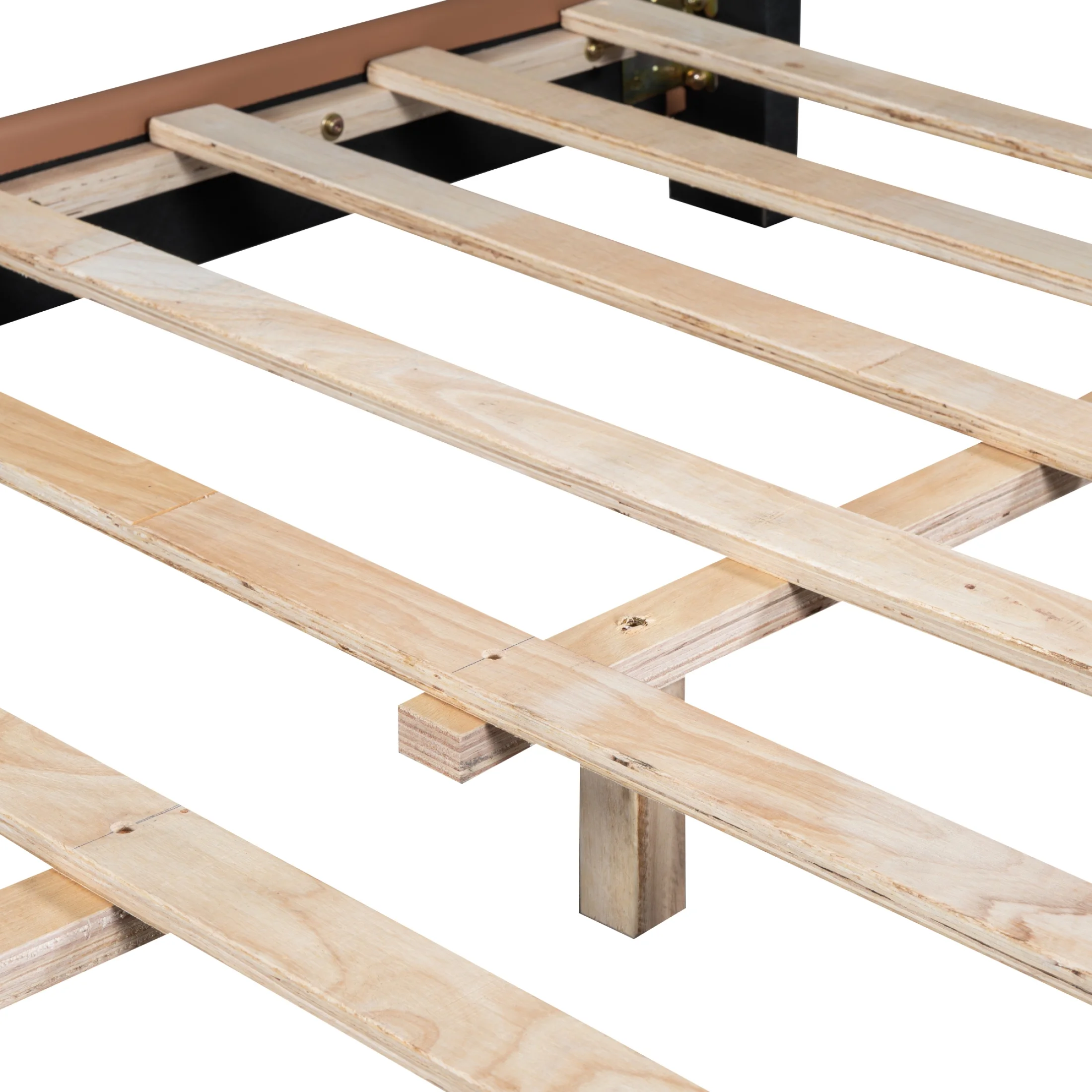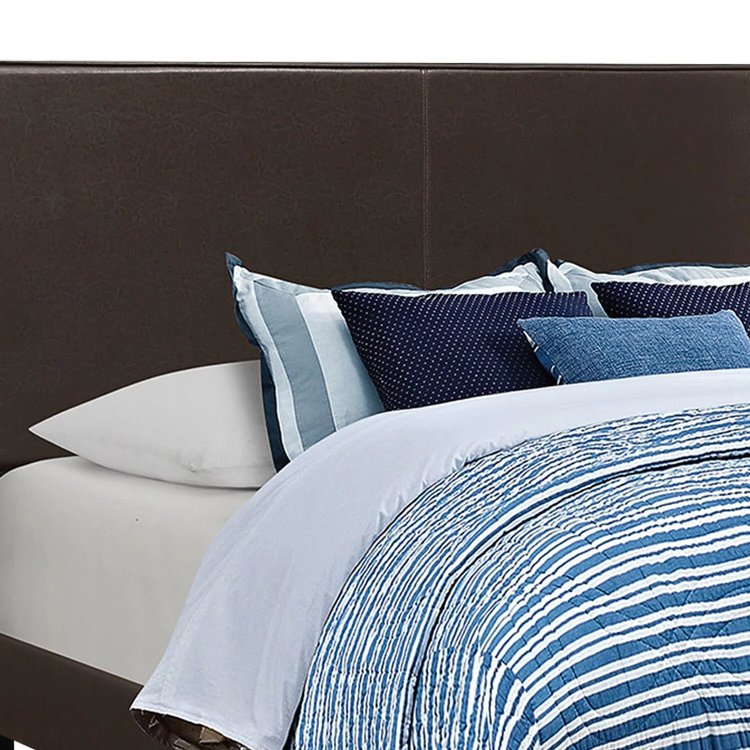 Brown Faux Leather Full Size Bed Upholstered Headboard Trasitional Style Bedroom Platform 1pc Bed Furniture slats