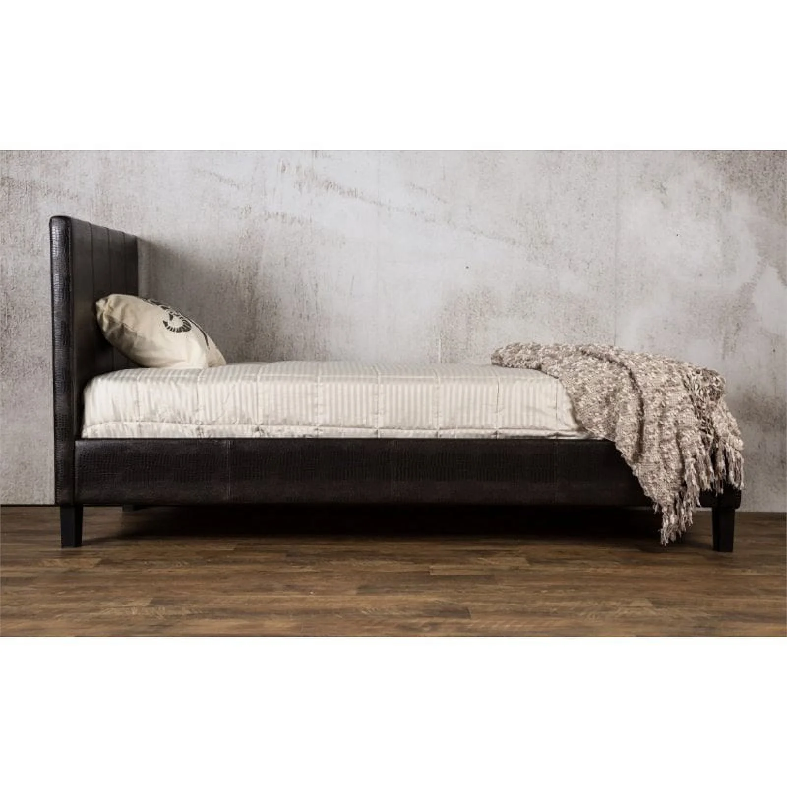 Lexicon Lorenzi Contemporary Wood and Faux Leather Twin Bed in Dark Brown