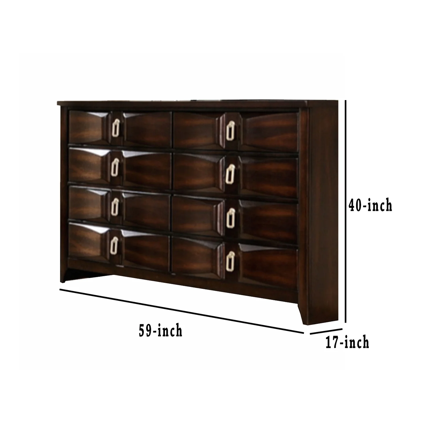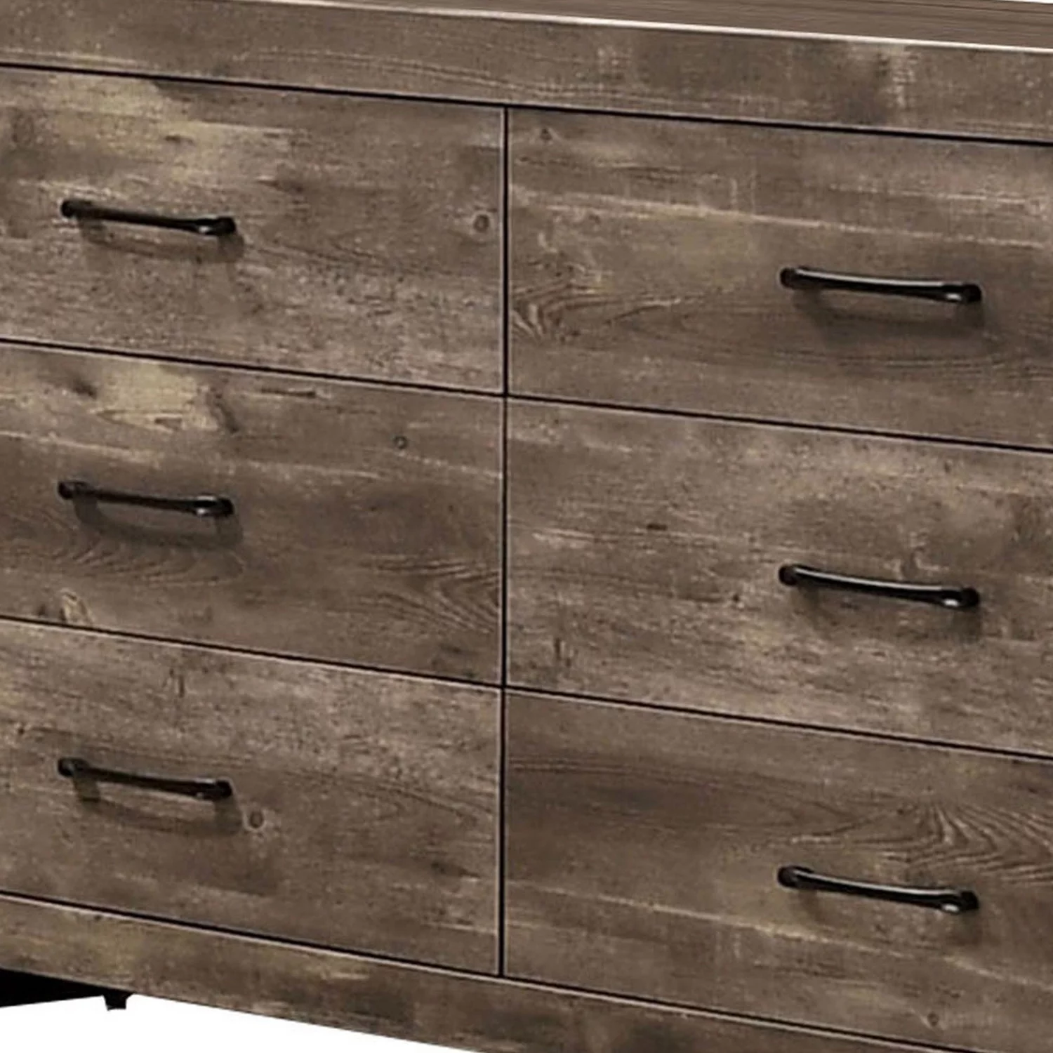 Benjara BM302067 59 in. 6-Drawers Wood Grain Dresser with Metal Bar Handles, Brown