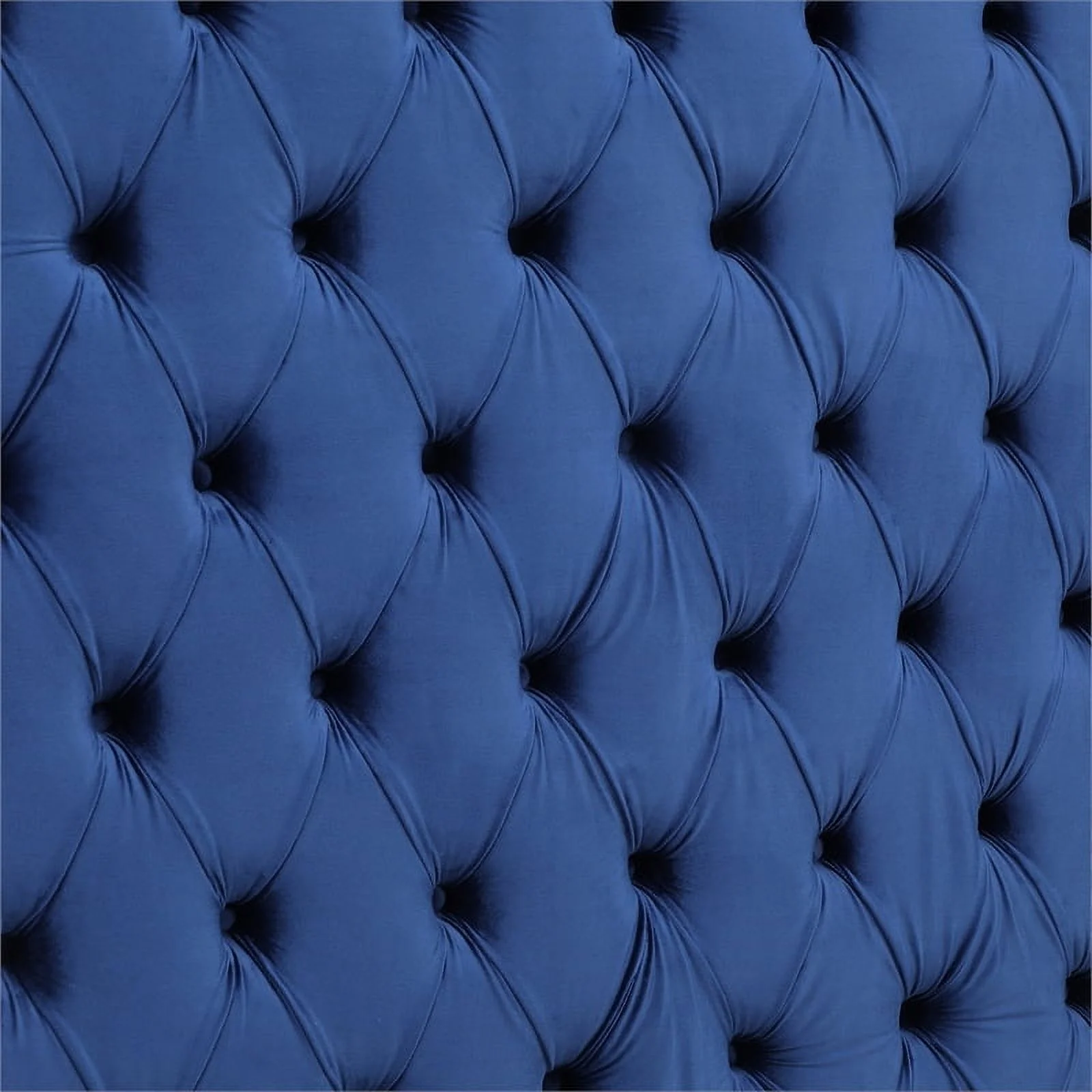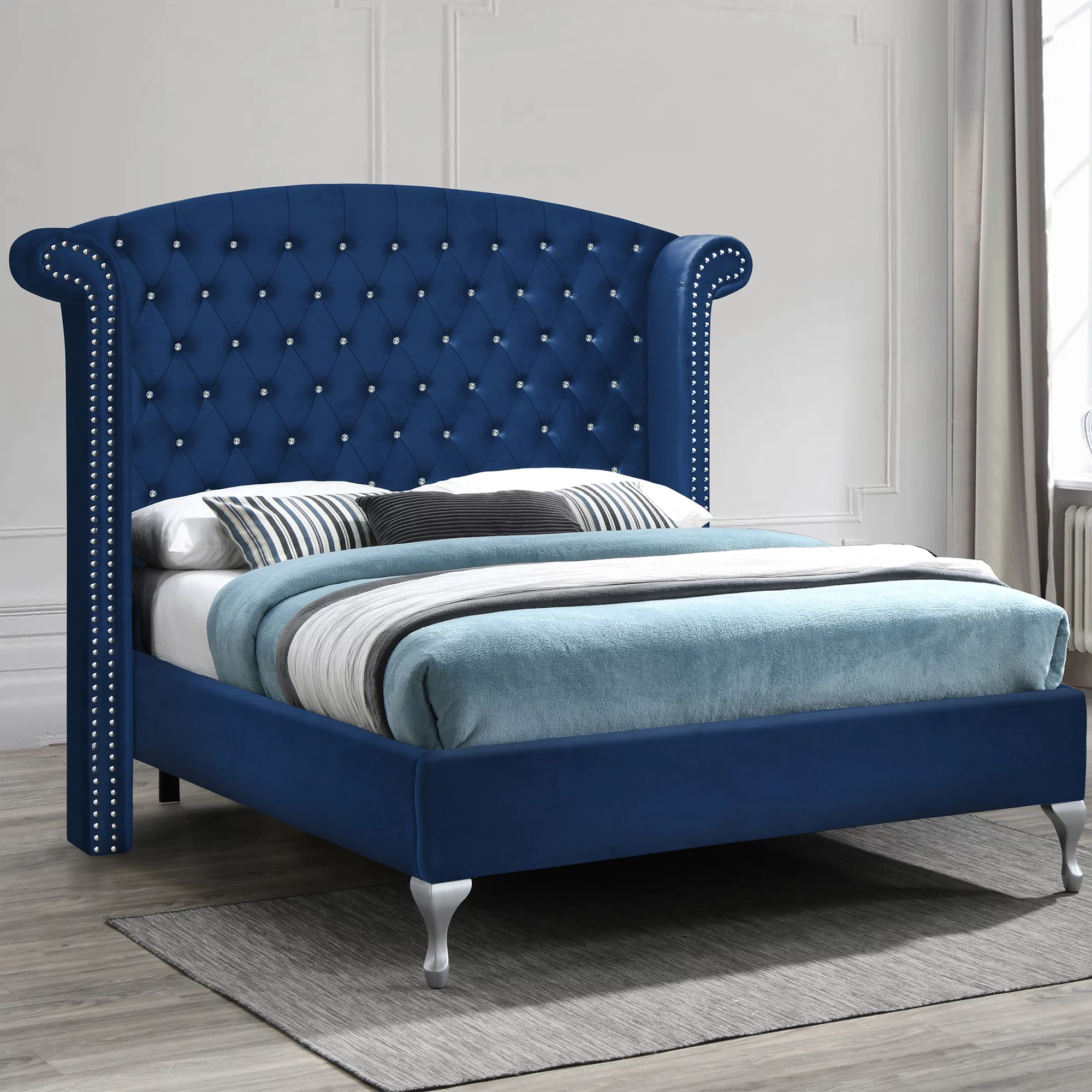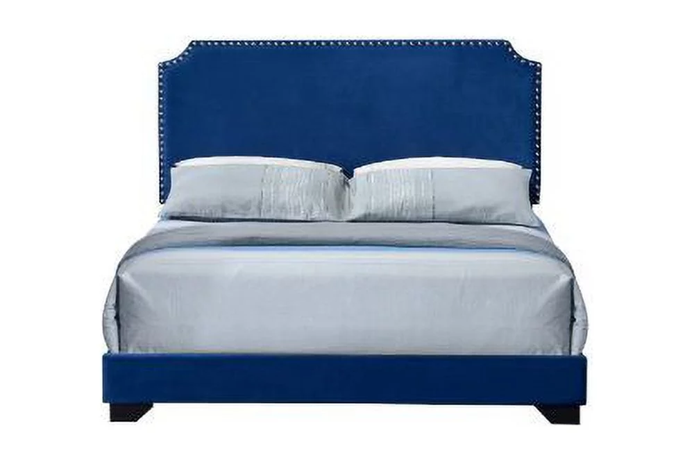 Glamour Home Asali Queen Bed with Button Tufting and Nail Headed Wings in Blue