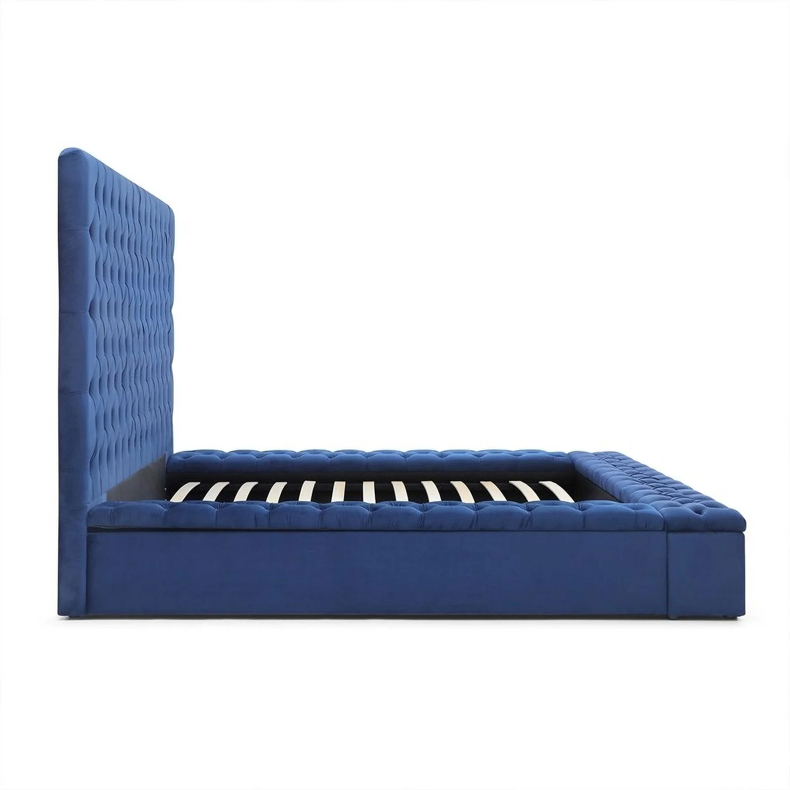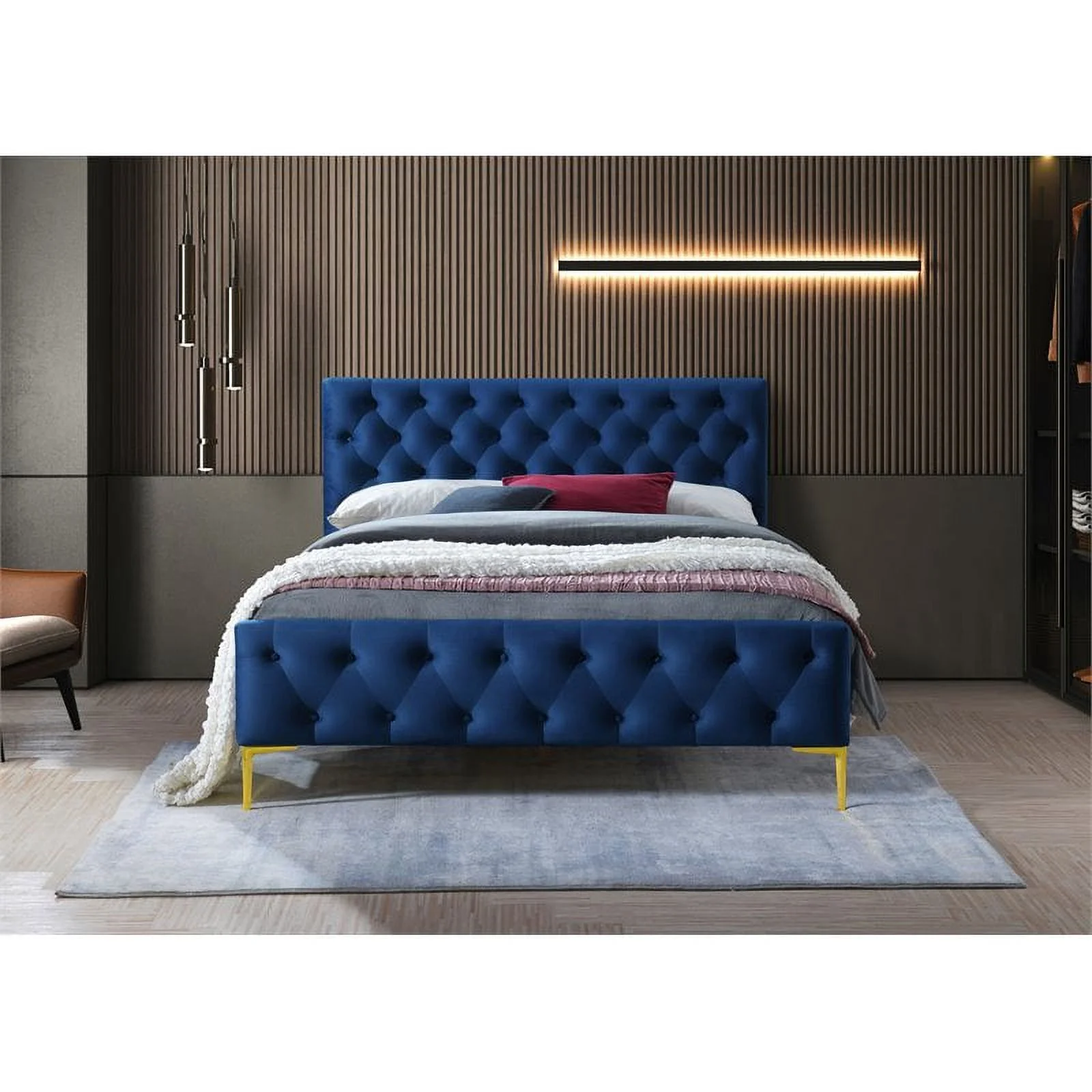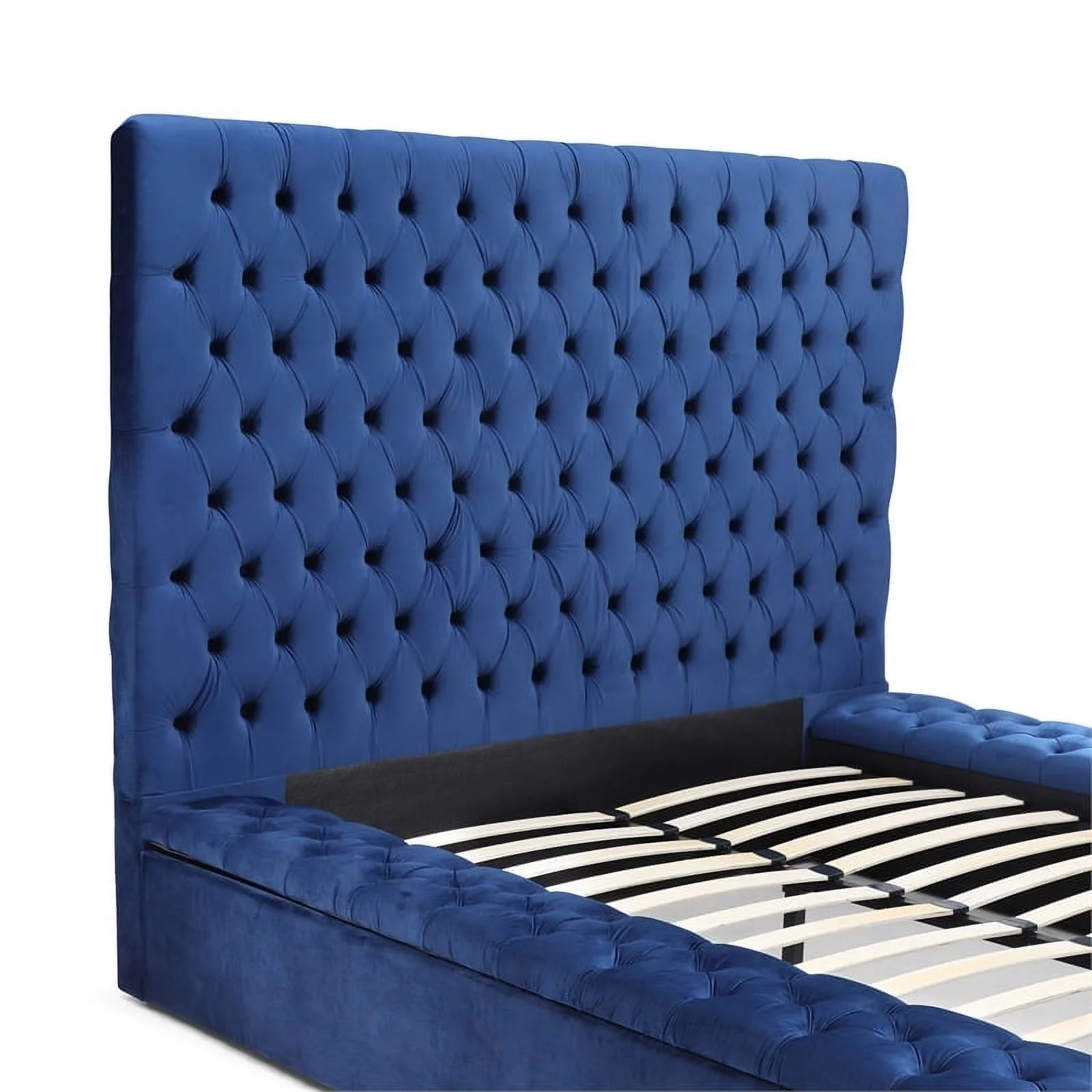 Glamour Home Asali Queen Bed with Button Tufting and Nail Headed Wings in Blue