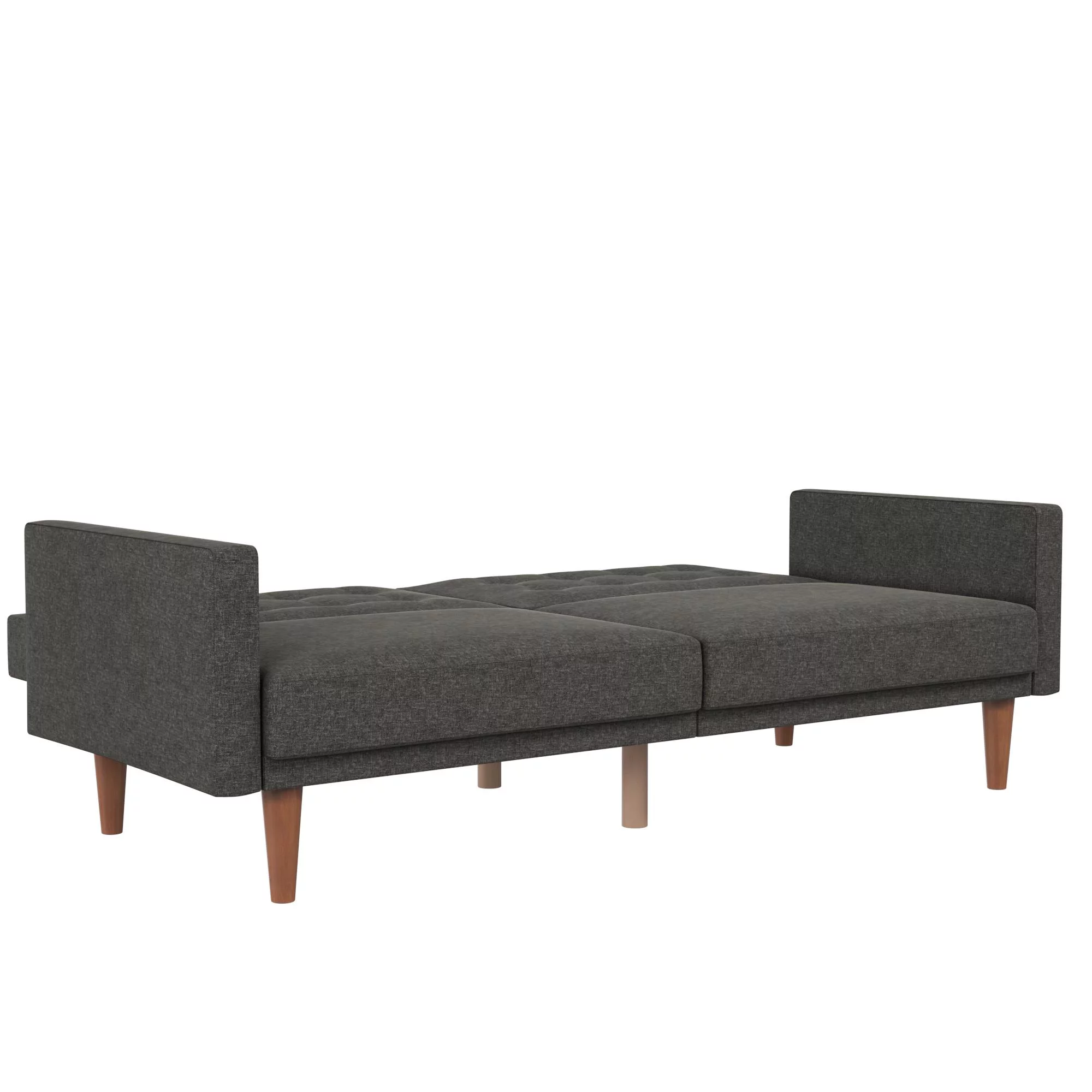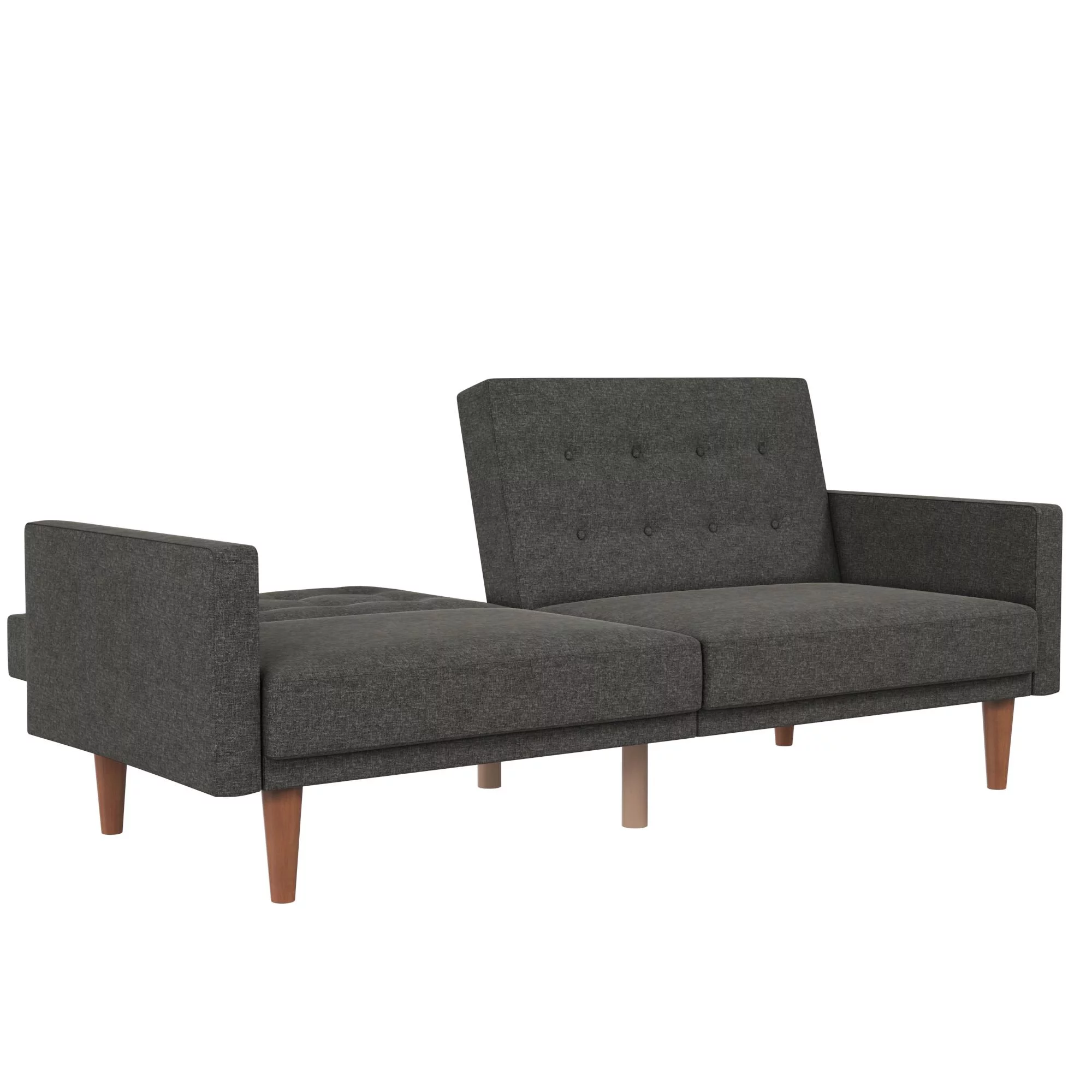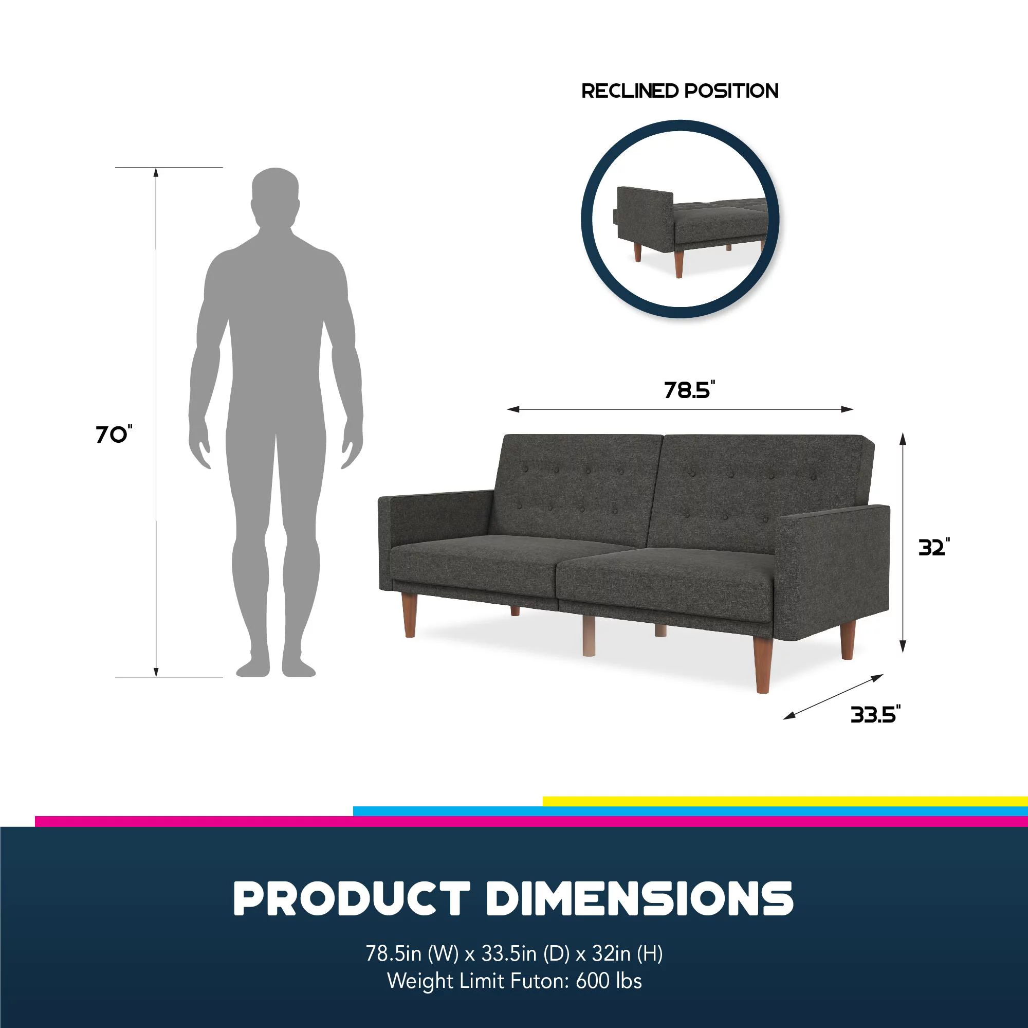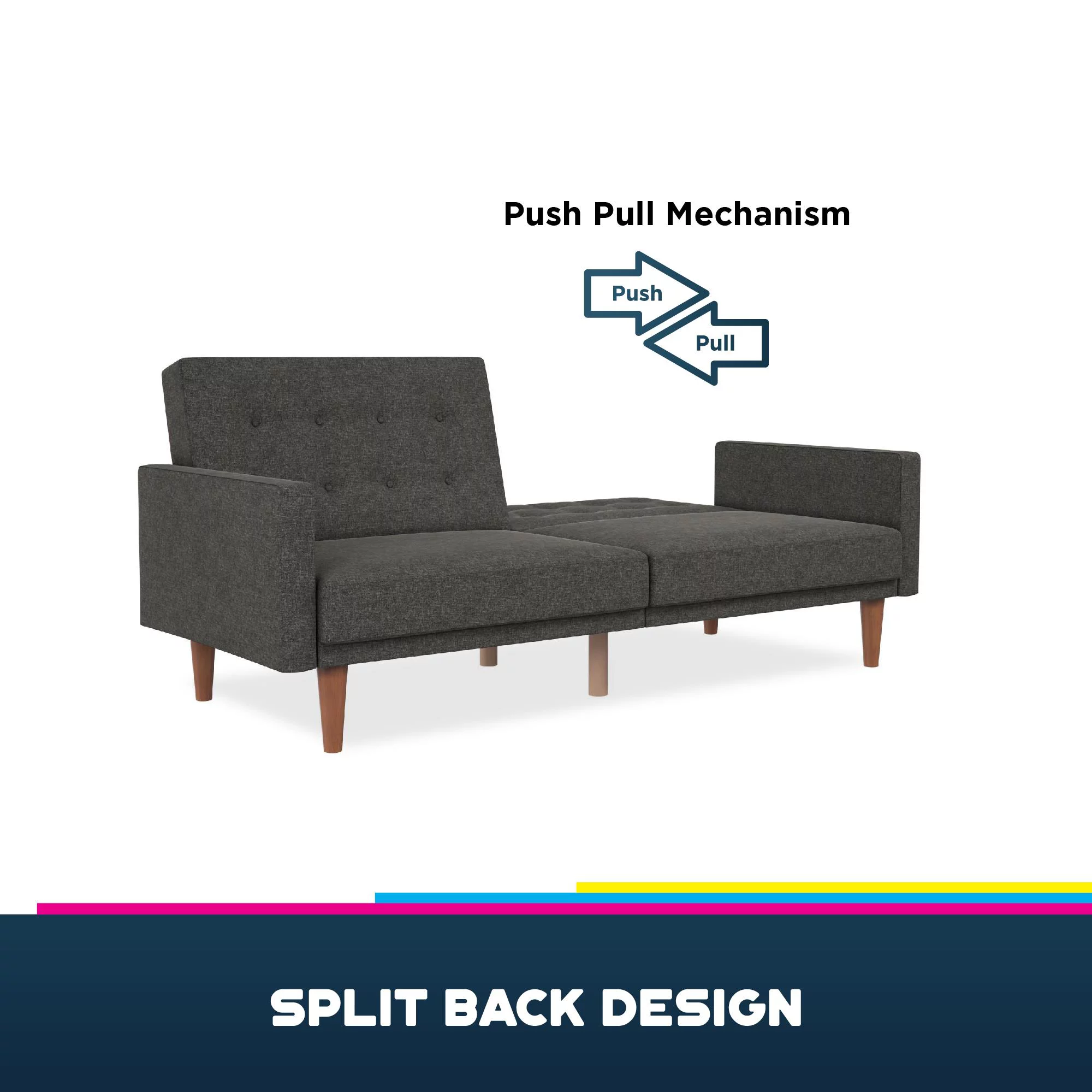 Queer Eye Wimberly Upholstered Futon, Split Back Design, Convertible Sofa, Lounger and Bed, Gray Linen