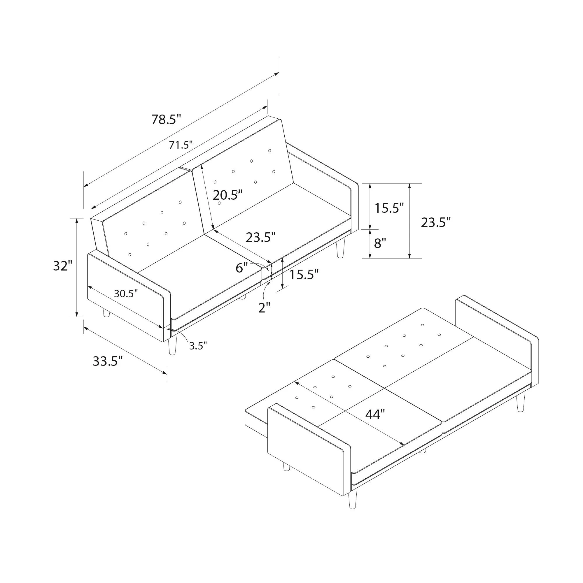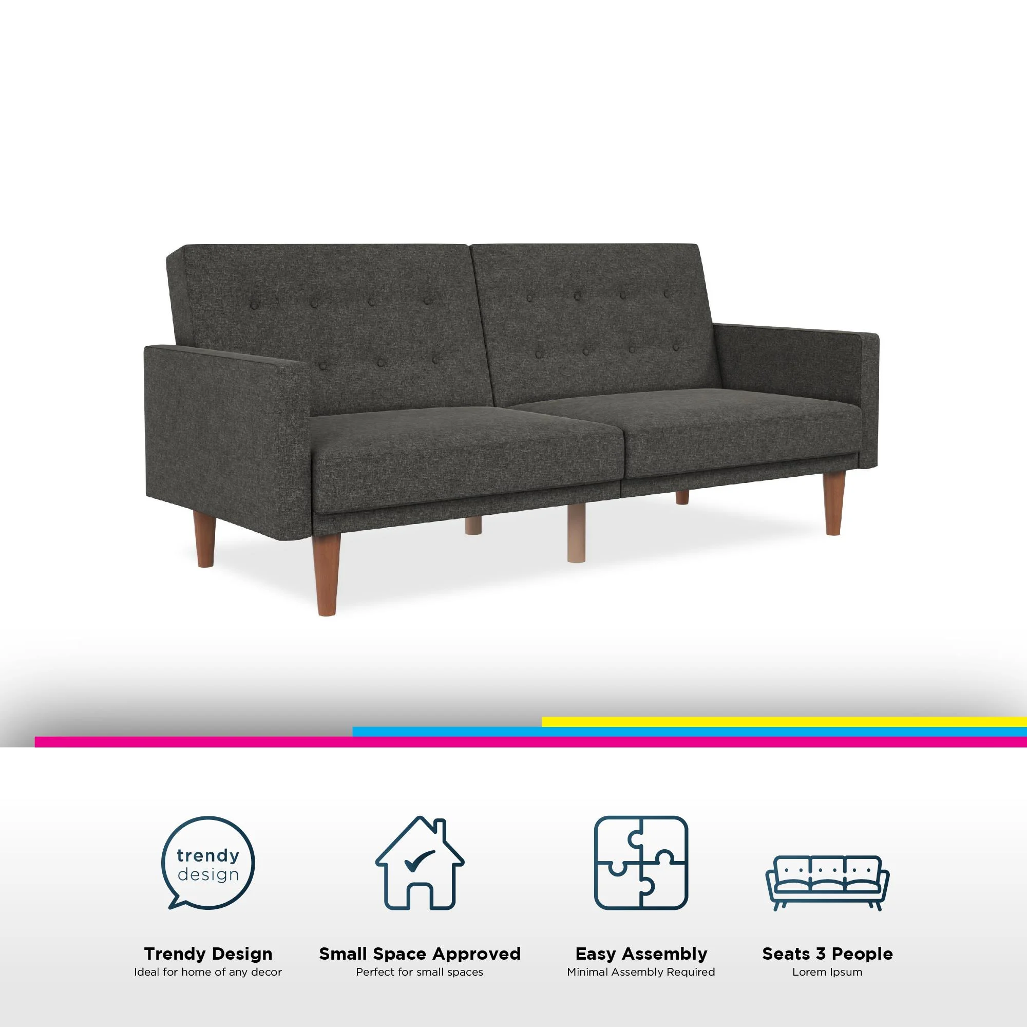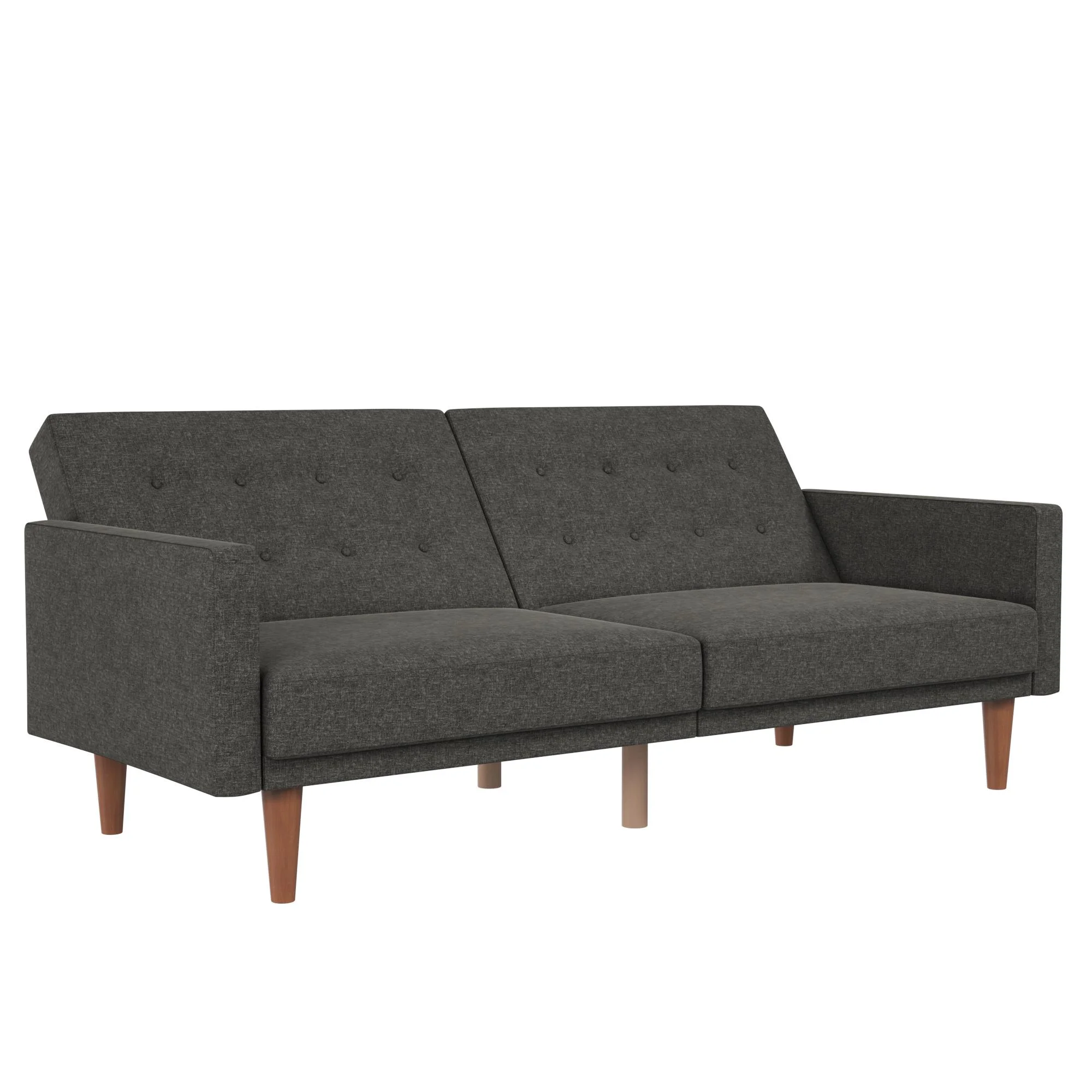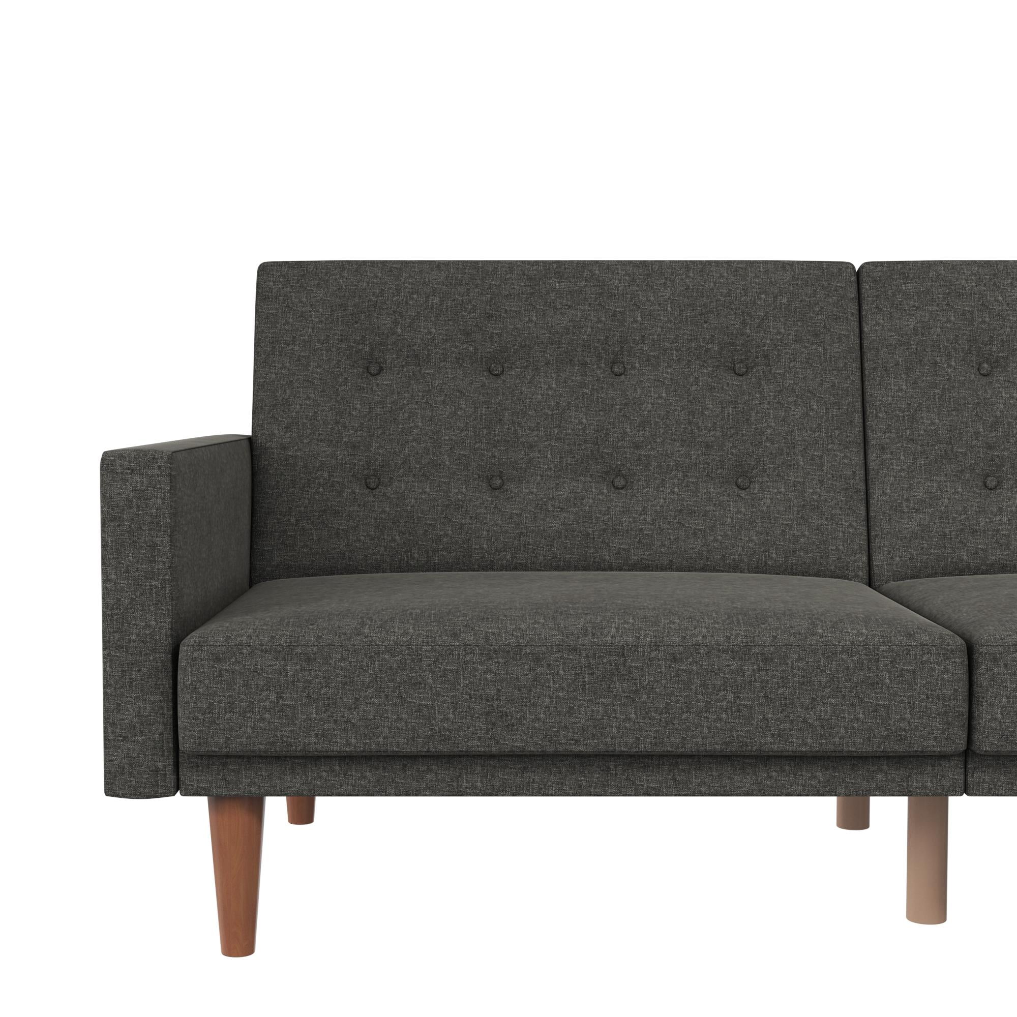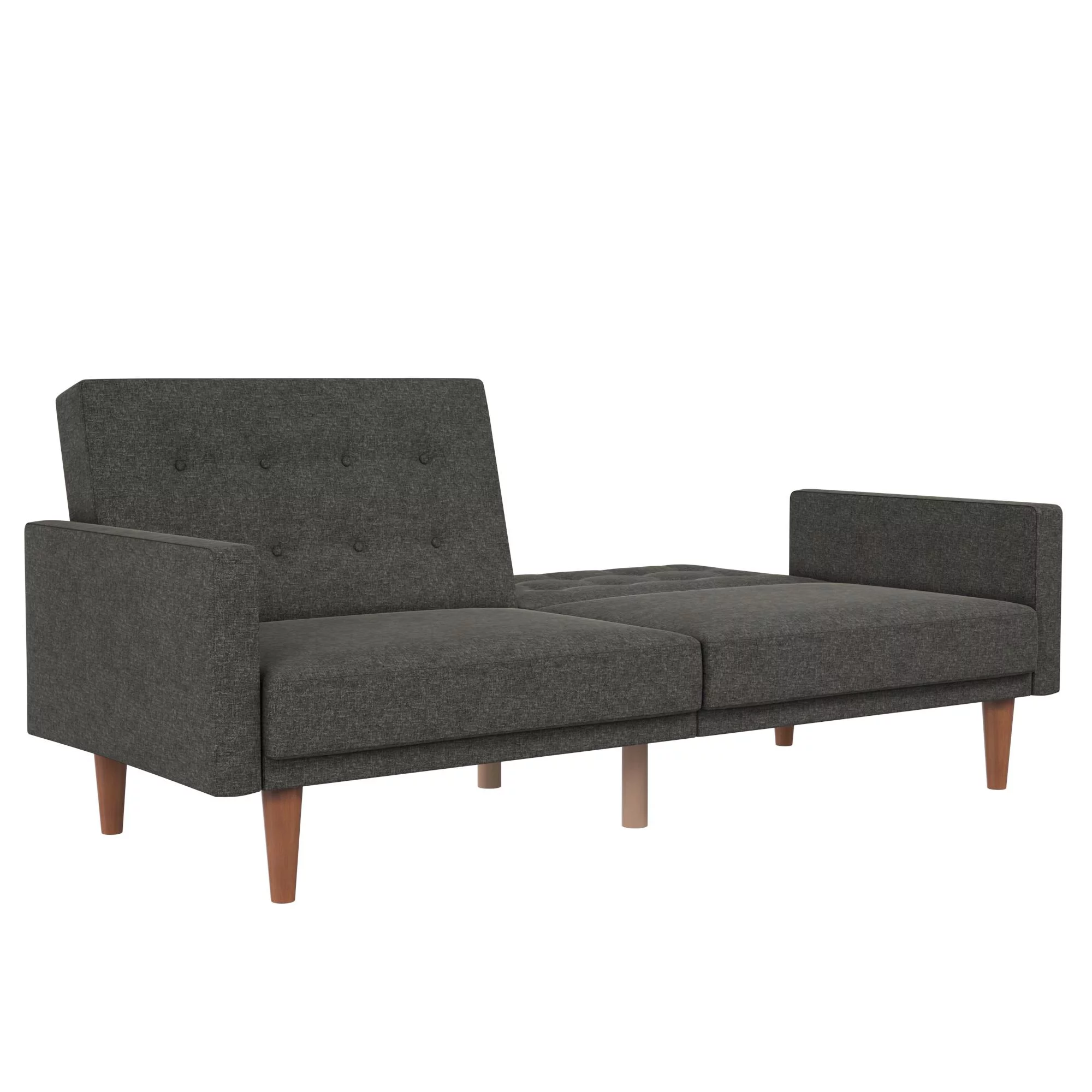 Queer Eye Wimberly Upholstered Futon, Split Back Design, Convertible Sofa, Lounger and Bed, Gray Linen