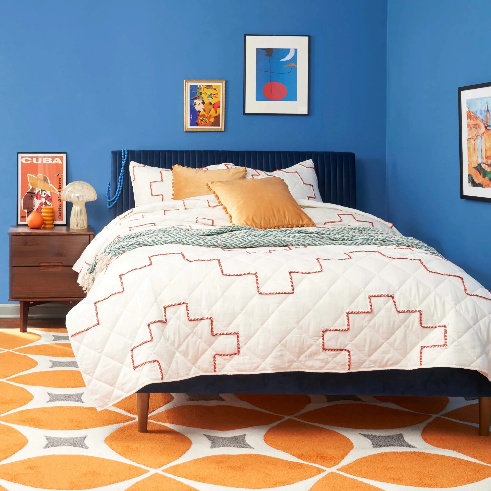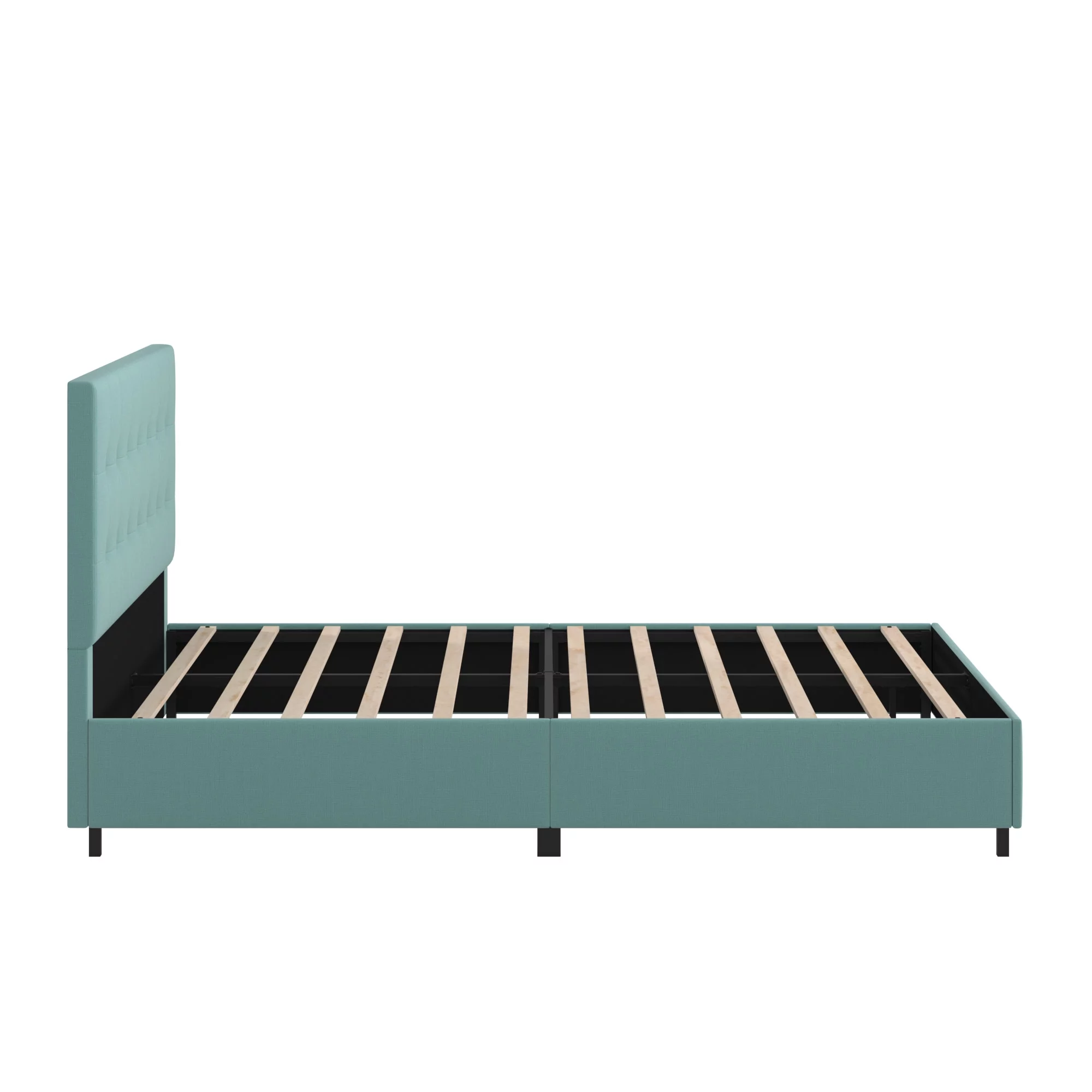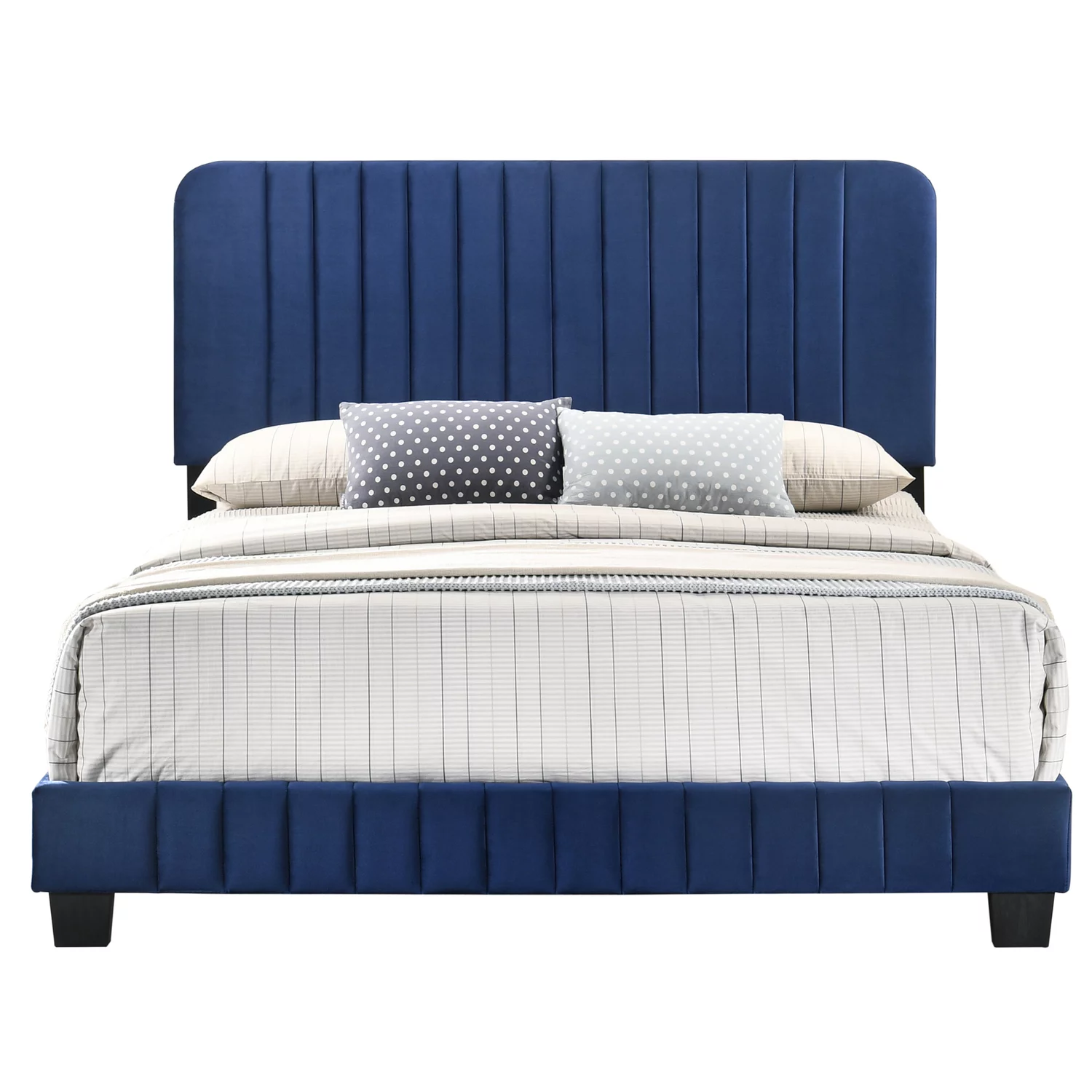Glamour Home Arty Fabric Queen Bed with Line Stitching Tufting in Blue