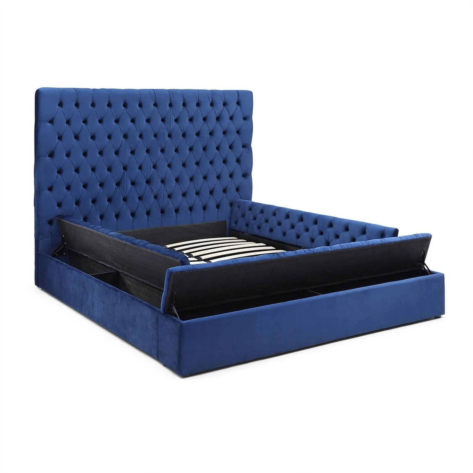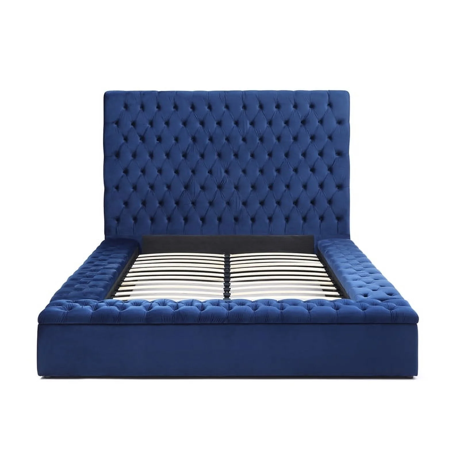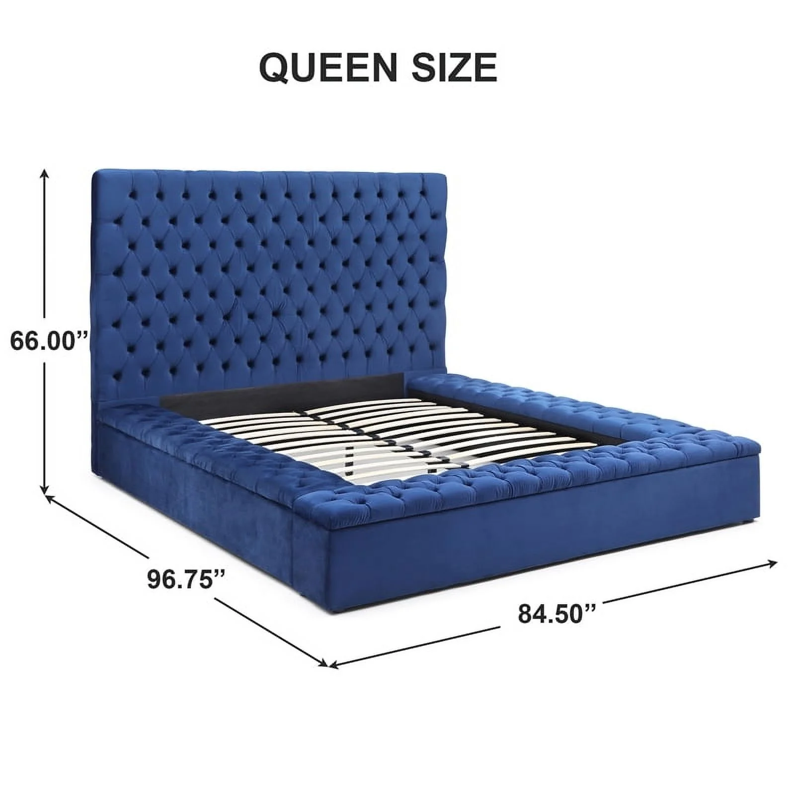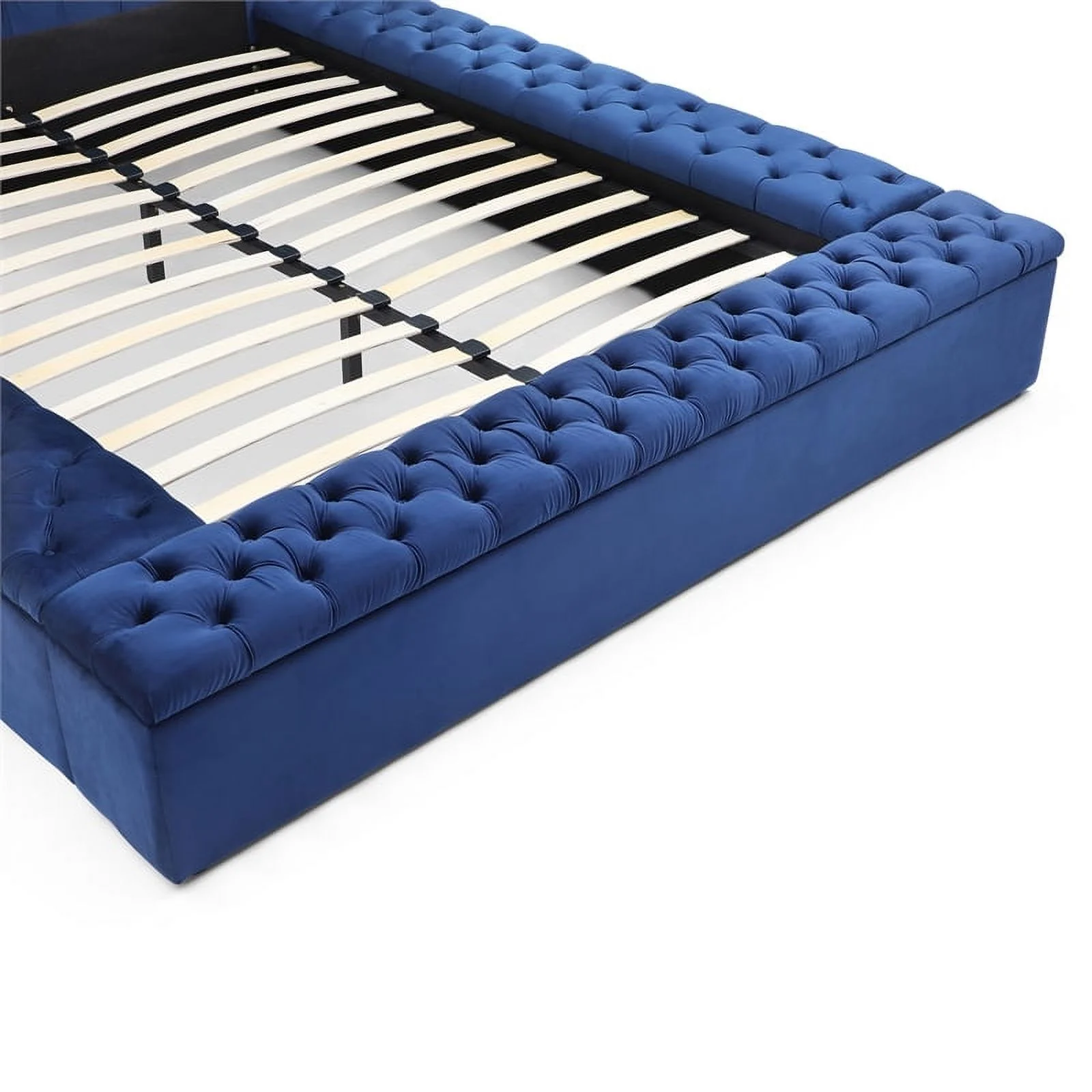 Better Home Products Cleopatra Crystal Tufted Velvet Platform Queen Bed in Blue