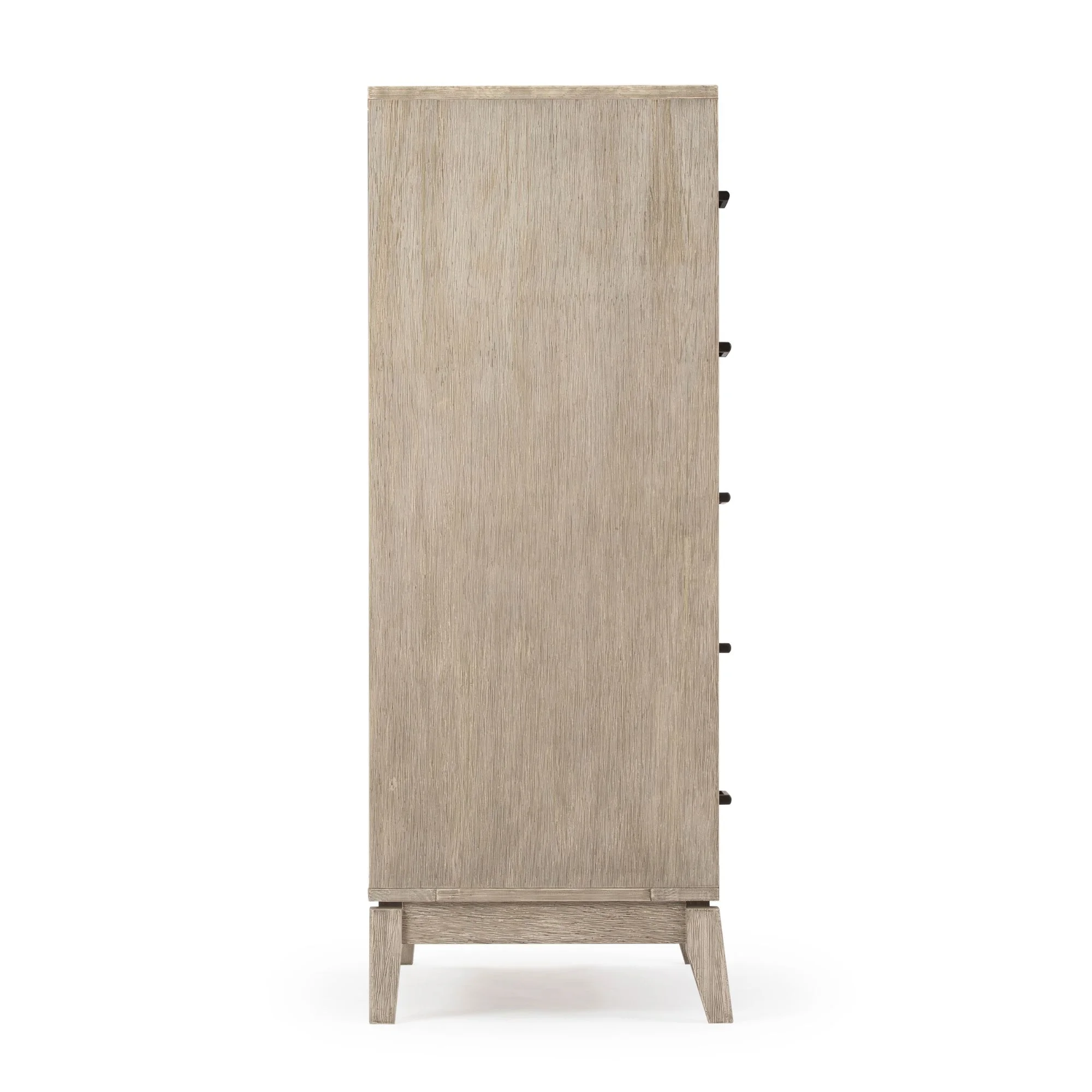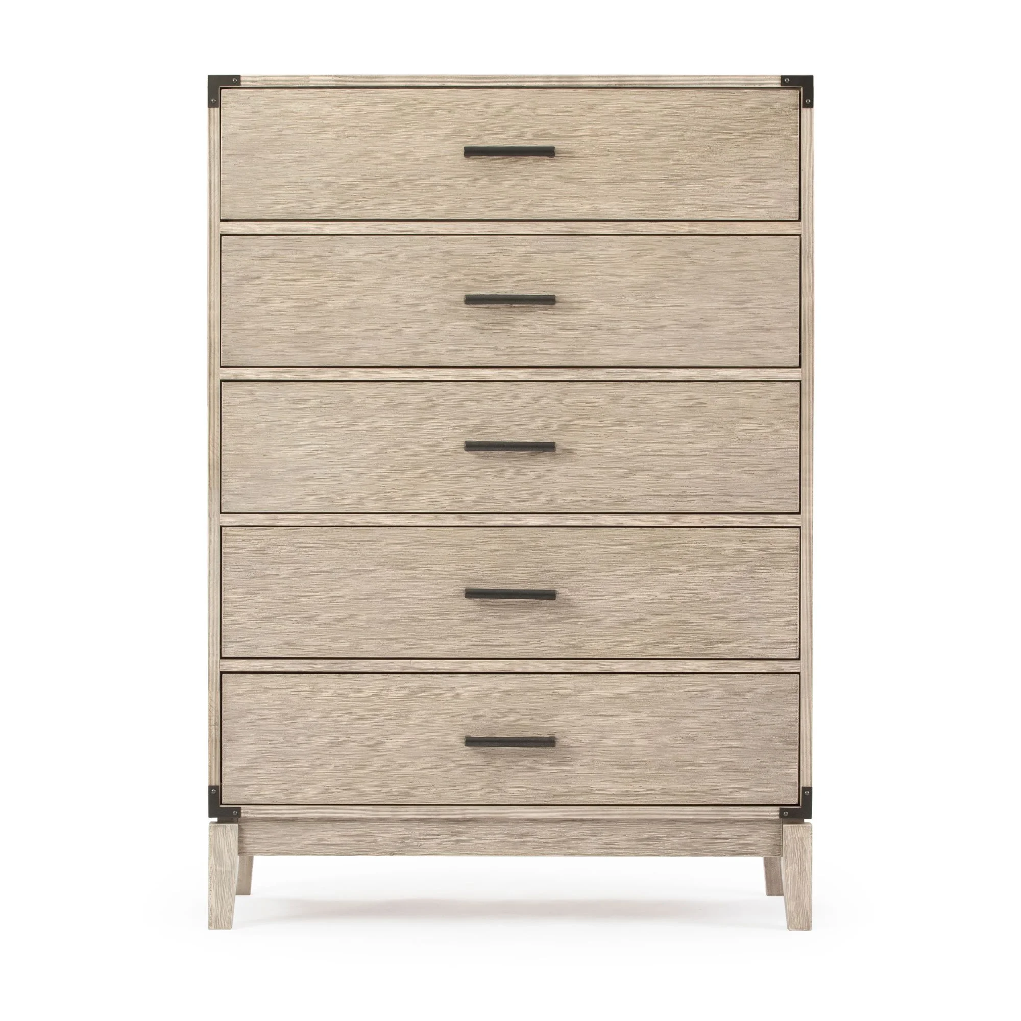 Plank+Beam 5 Drawer Dresser, Farmhouse Chest of Storage Drawers, Solid Wood Dressers for Adults Bedroom, Seashell Wirebrush