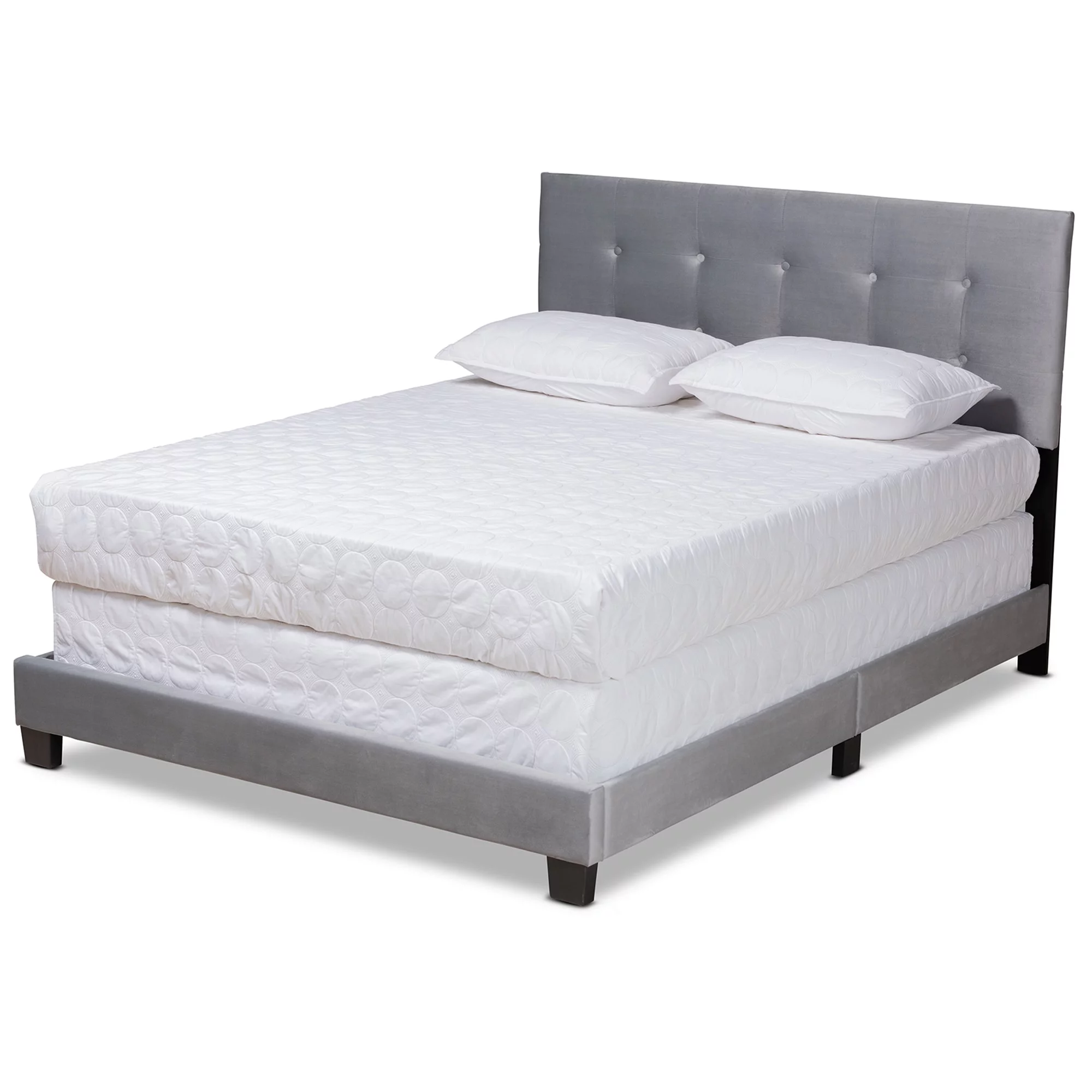 Baxton Studio Samantha Modern and Contemporary Navy Blue Velvet Fabric Upholstered Queen Size Button Tufted Bed