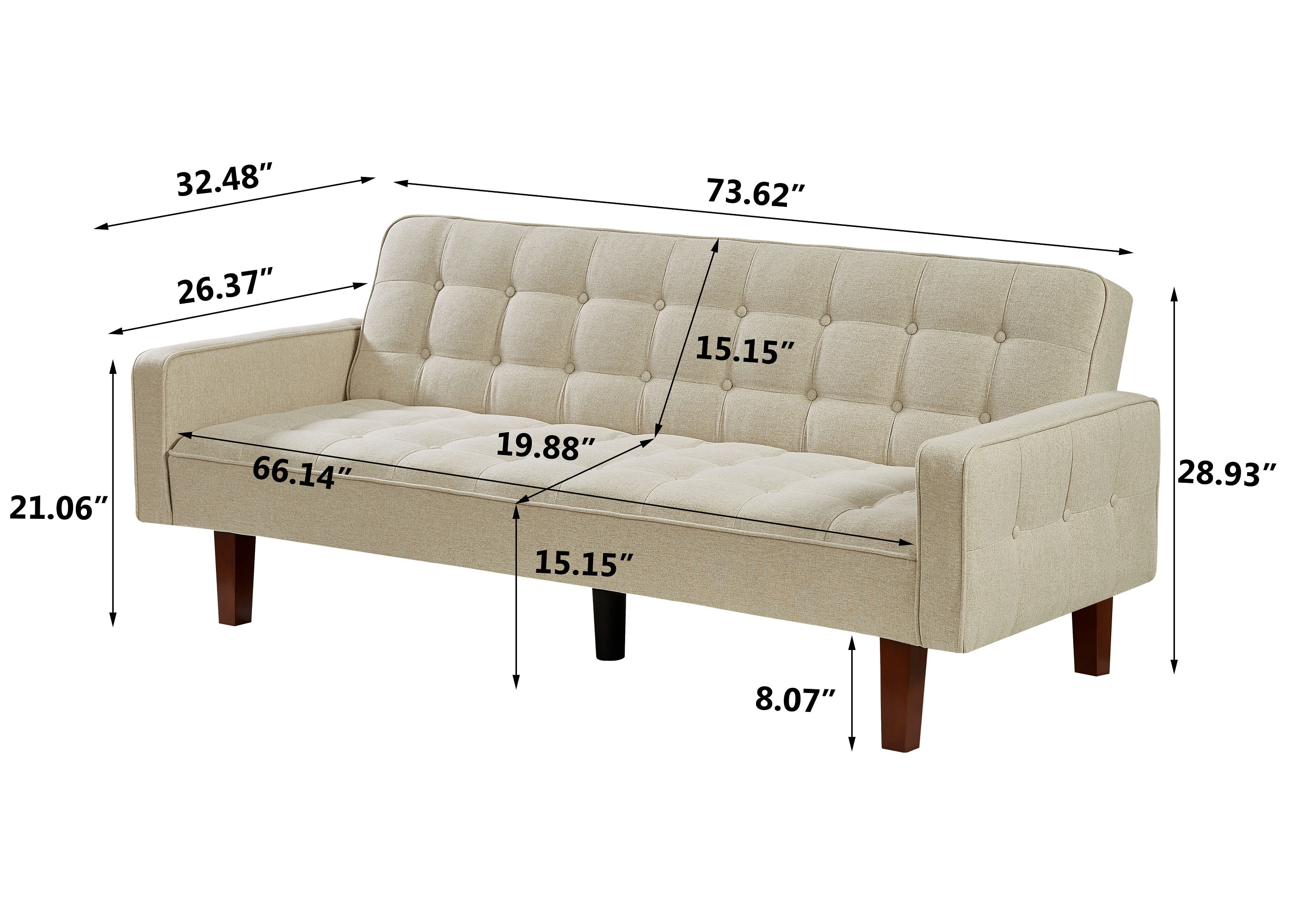 HUTWIFE 73inch Linen Futon Sleeper Sofa Couch, Upholstered Convertible Sofa Bed,Tufted 3 Seater SleeperSofa (Beige)