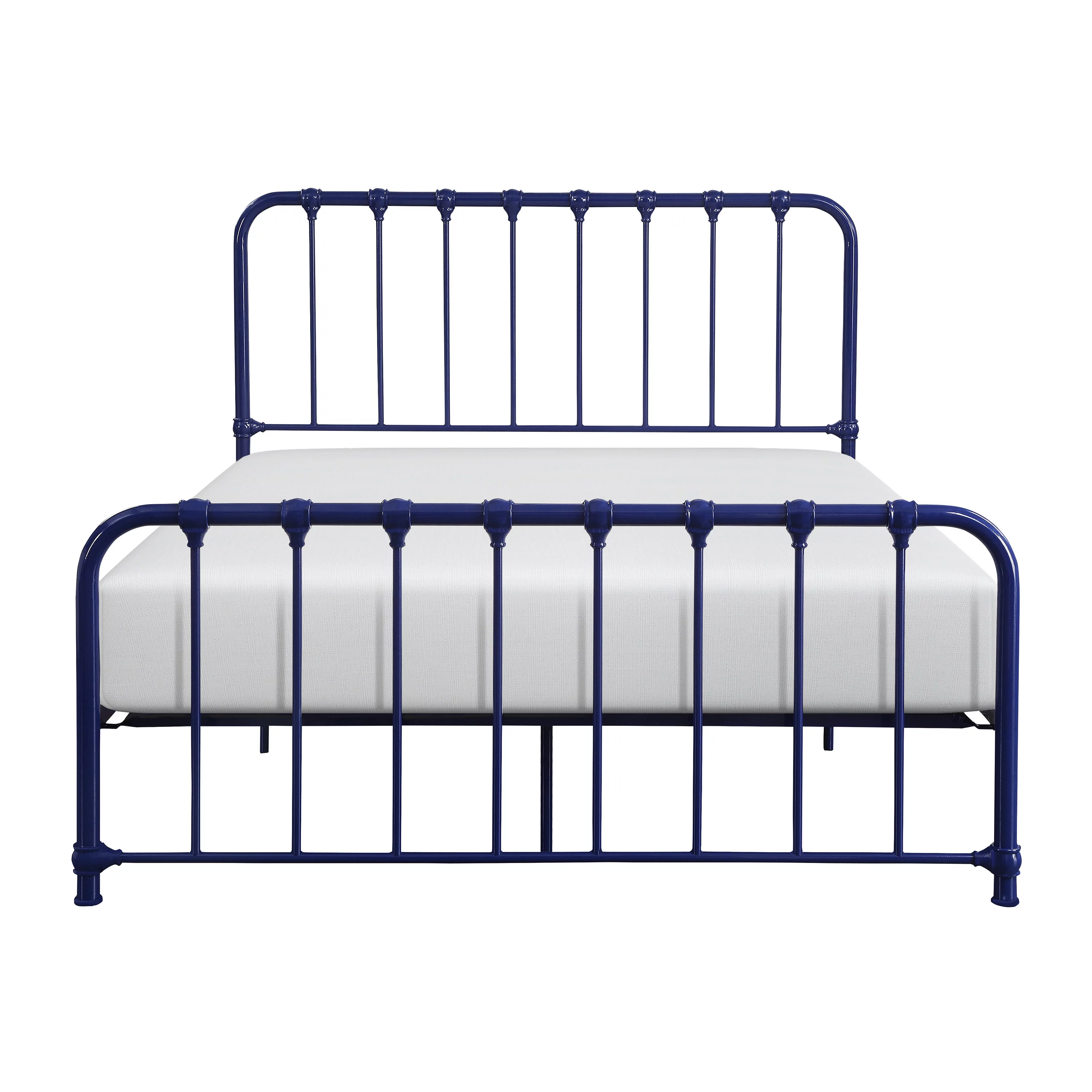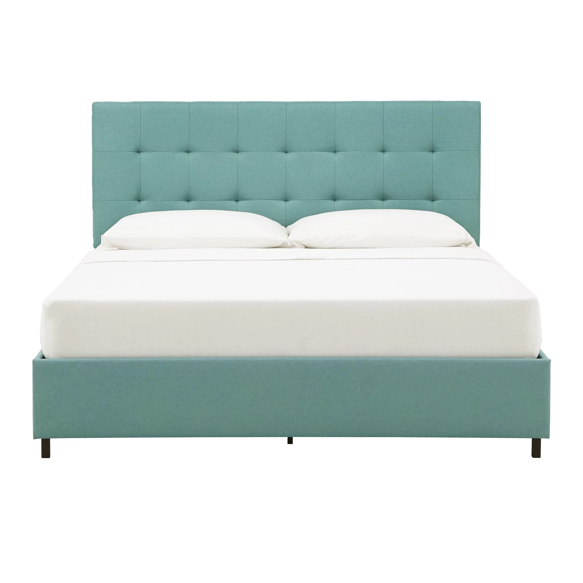 Glamour Home Arlo Fabric Queen Bed with Wings and Button Tufting in Blue