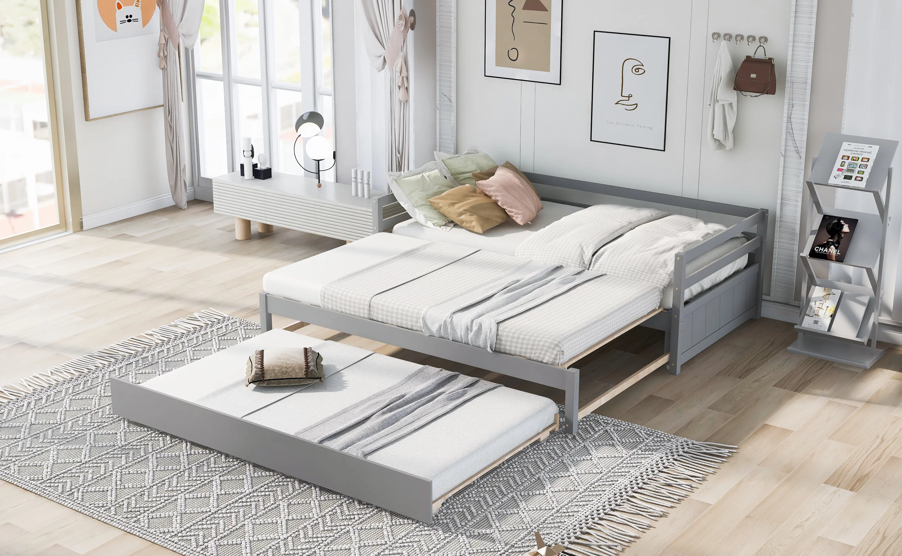 CoSoTower Upholstered Double Twin Size Daybed with Trundle and Drawer, Gray
