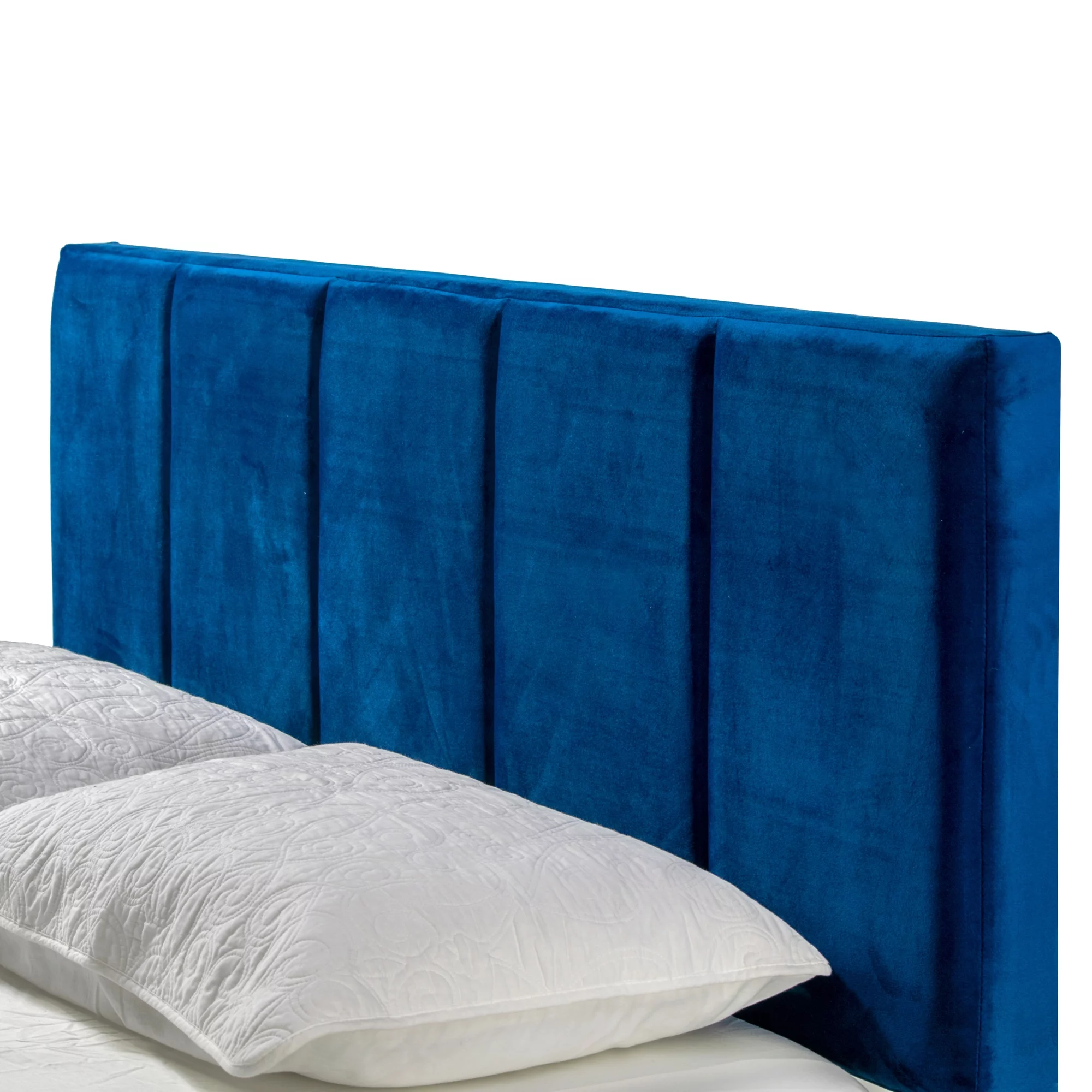 Pemberly Row Contemporary Velvet Upholstered Platform Queen Bed in Blue