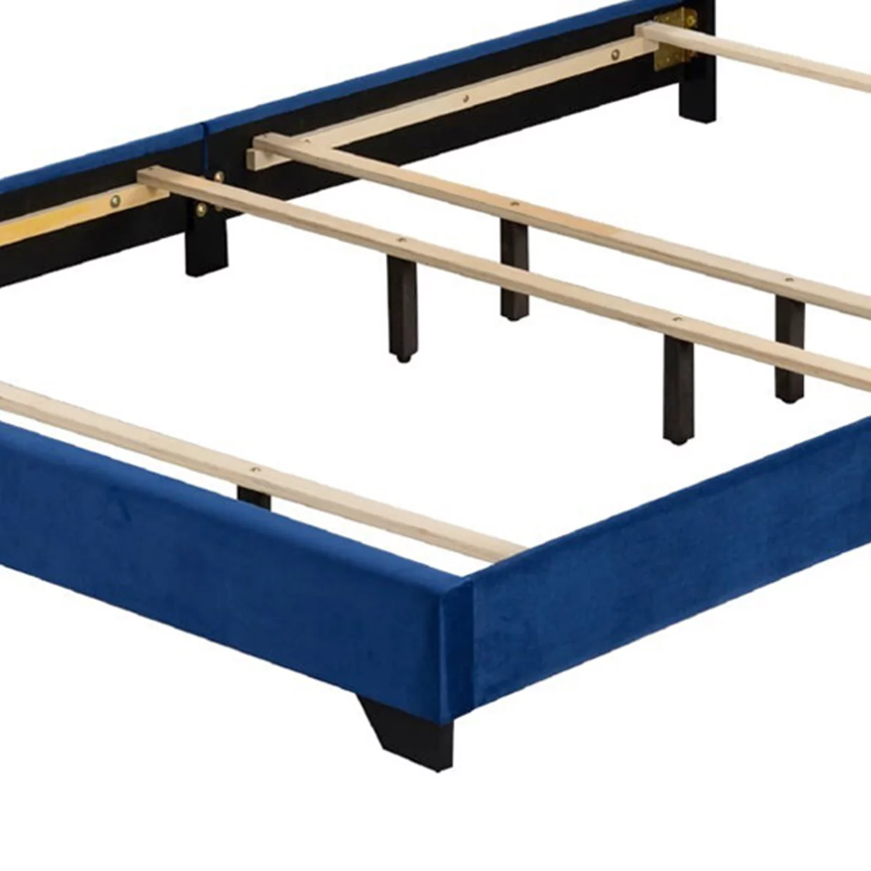 Modern 1Pc Queen Size Unique Bed w Wingback Velvet HB Master Bedroom Furniture Blue Velvet Upholstery