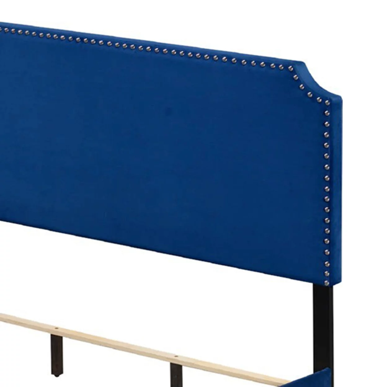 Queen Bed with Platform Style and Nailhead Trim, Blue- Saltoro Sherpi